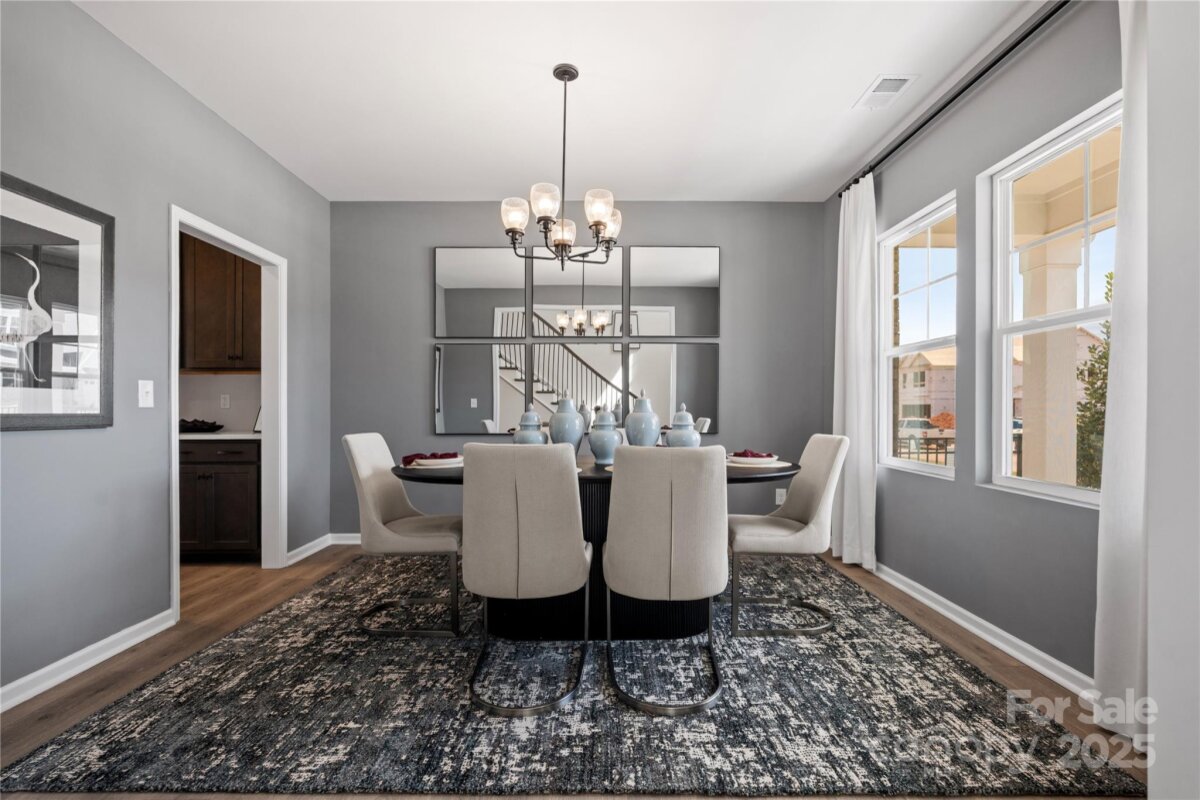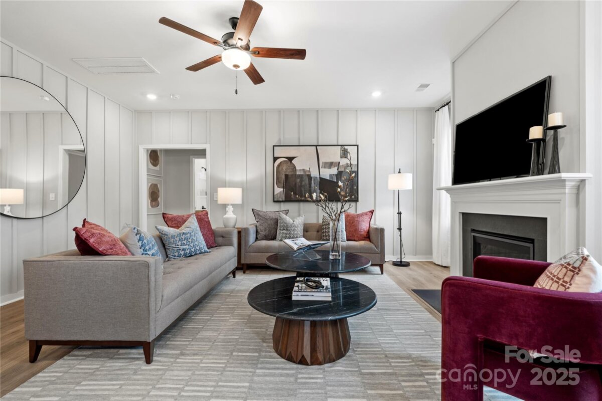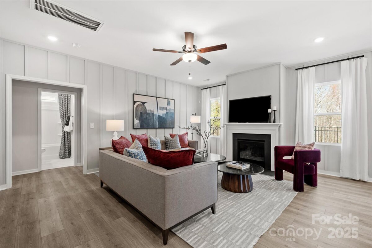 The Morganton welcomes you with a soaring two-story foyer that leads to a versatile office/flex room and a formal dining area. The open-concept living space is perfect for gathering and entertaining. The gourmet kitchen is both beautiful and functional, featuring quartz countertops, a wall oven and microwave, a sleek hood vent, a large island, and a gas cooktop. Upstairs, you’ll find three spacious secondary bedrooms and a large hall bath. The luxurious primary suite offers a tray ceiling, double vanities with quartz countertops, a tiled shower, and an expansive walk-in closet. A versatile loft and conveniently located laundry room complete the second floor. With easy access to the nearby towns of Matthews, Mint Hill, Concord, and Ballantyne, you can enjoy the tranquility of nature while staying connected to town amenities. Find your perfect blend of nature, convenience, and community at Moore Farms.
