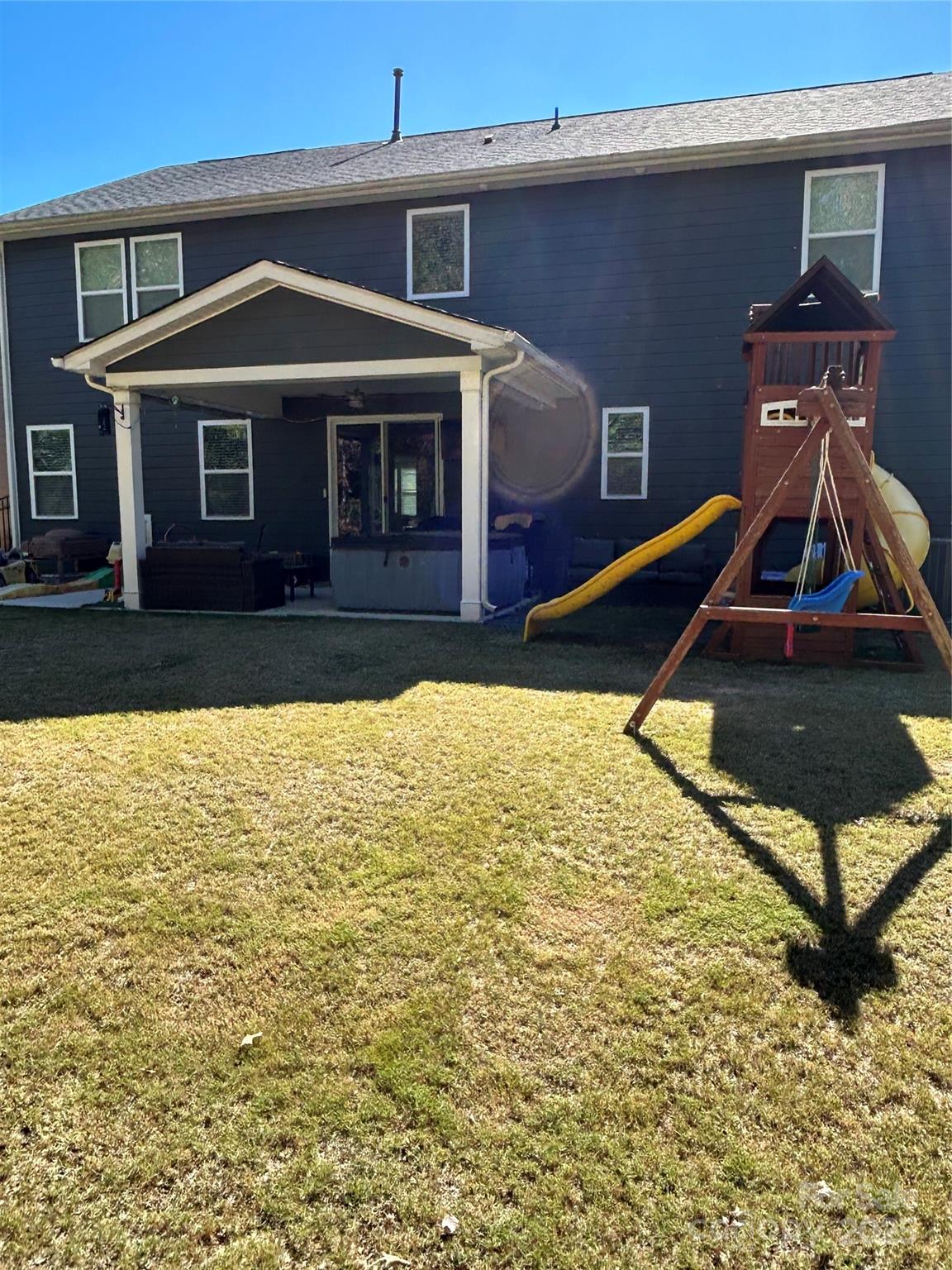 Welcome home! Tucked away w/ privacy on a cul-de-sac street & access to nature trails. Fenced in backyard backs up to woods w/ hot tub spa under large rear covered porch w/ extended patio. Open floor plan provides gorgeous gourmet kitchen w/ huge island breakfast bar granite countertops & smart appliances overlooking family room w/ cozy gas fireplace. Mudroom w/ drop zone & oversized pantry. Huge loft area & in-law suite perfect for guests/multigenerational living. Spacious primary suite w/ tray ceiling chandelier oversized walk-in closets. Crown molding throughout & large secondary bedrooms. Large laundry room with ample storage. Modern light fixtures & updated flooring throughout w/ whole home air purification system. Community features neighborhood pool clubhouse playground & area for sports & planned activities! Zoned for highly sought after school district. Minutes to Bypass & I-485, Uptown Charlotte, Airport & everything you need close by! Schedule your showing today!