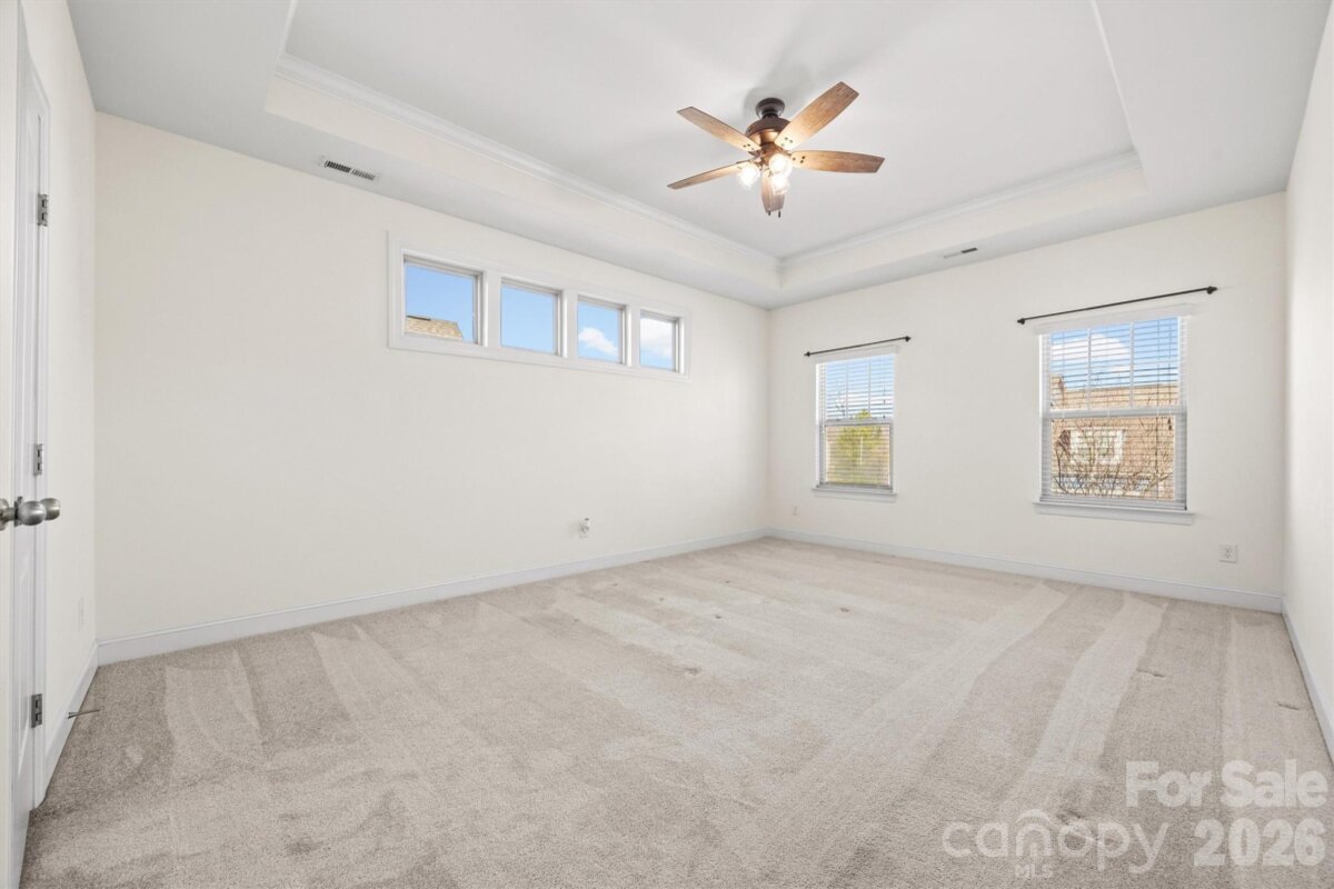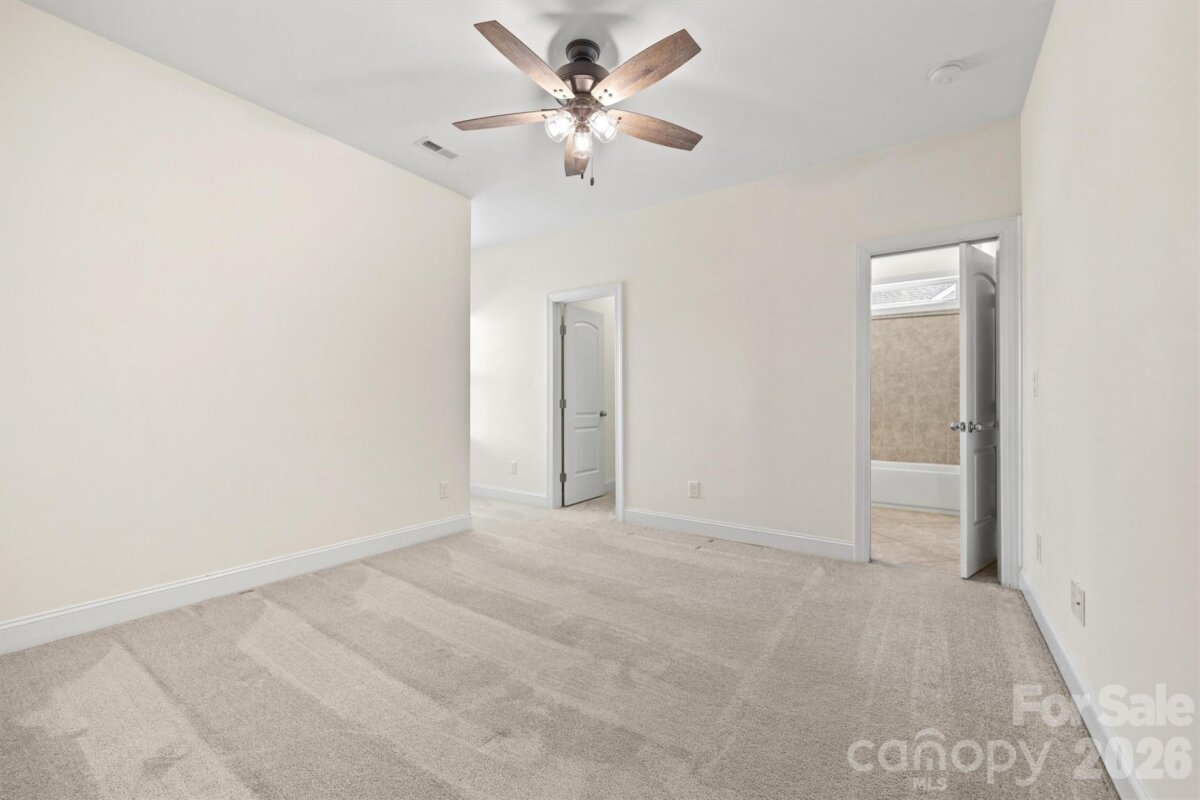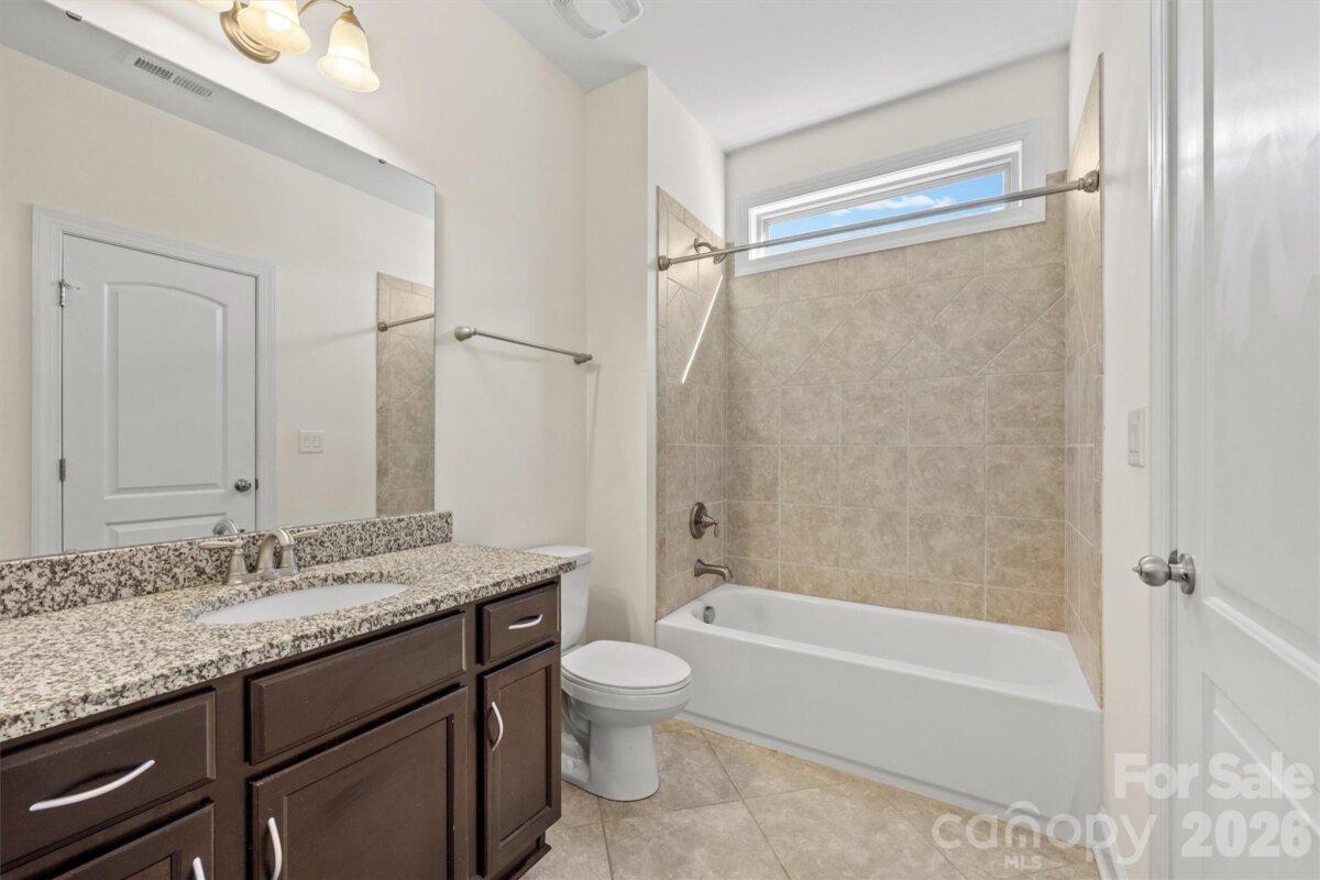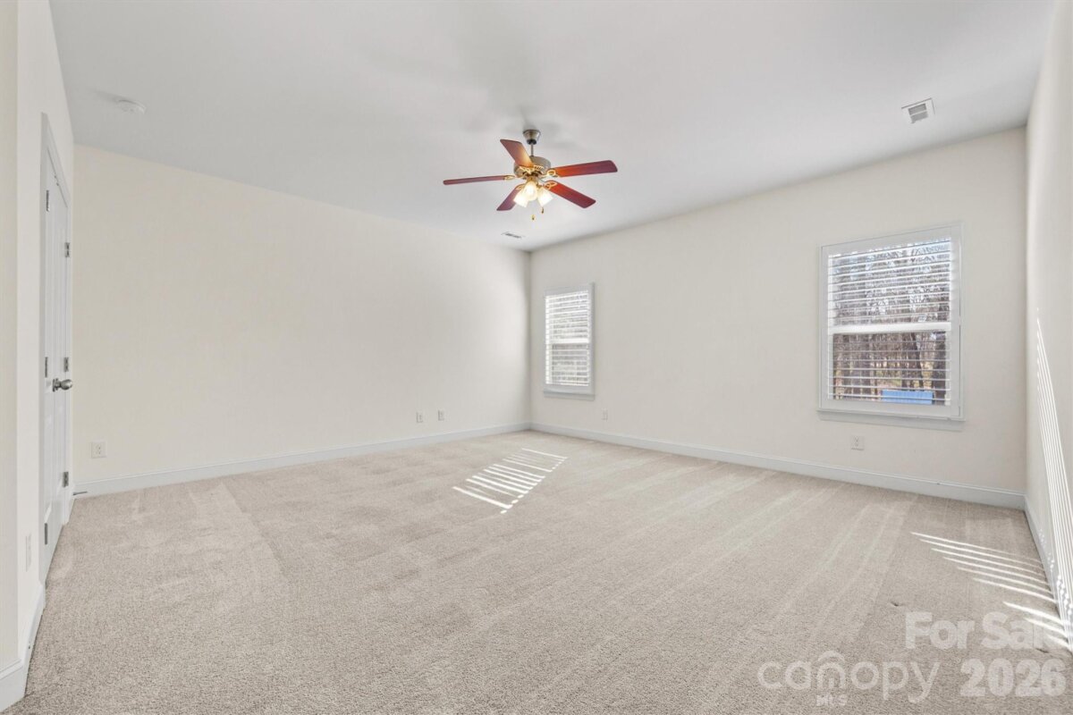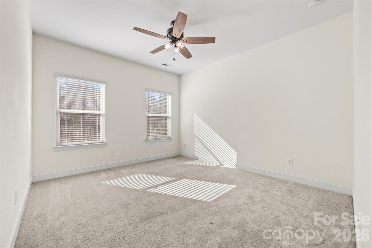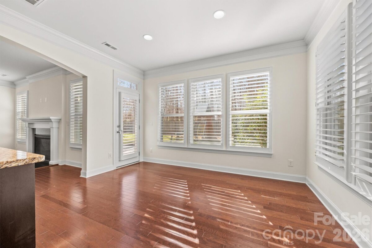 Beautiful, Move in Ready 5 Bedroom 3 Bath home located in The Enclaves at Crismark! This Craftsman-style residence welcomes you wit charming curb appeal and a spacious front porch. Inside, the home features a hardwood floored foyer, formal dining room, butler's bar, pantry, leading into an open-concept living room/kitchen perfect for everyday living and entertainment. The Kitchen is well appointed with dark wood cabinetry, granite countertops, stainless steel appliances, gas range, wall mounted oven, and a center island. The adjoining breakfast area, accented by plantation shutters, overlooks the fenced backyard with a peaceful wooded backdrop. Outdoor living is enhanced by a paver patio and trellis, creating an ideal space to relax and entertain. A main-level bedroom and full bath provide flexibility for guests or those seeking a stair free living option. Upstairs, the primary suite features including a tray celing and a en-suite bathroom with dual vaniites, private water closet, Shower, soaking tub, and large walk in closet. The neighborhood provides several amenties including pool and club house. Conviently located near the I-485 beltloop, travel around Charlotte is easy. We welcome you to come take a look at this beautiful home!