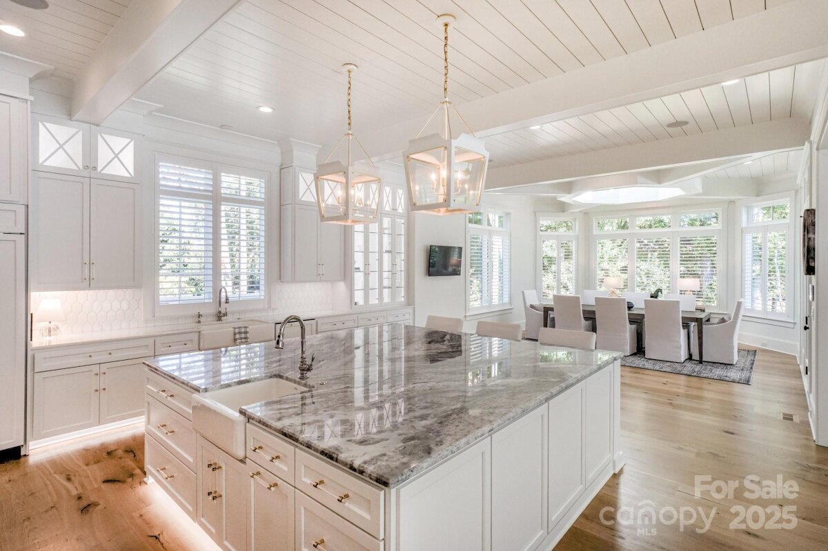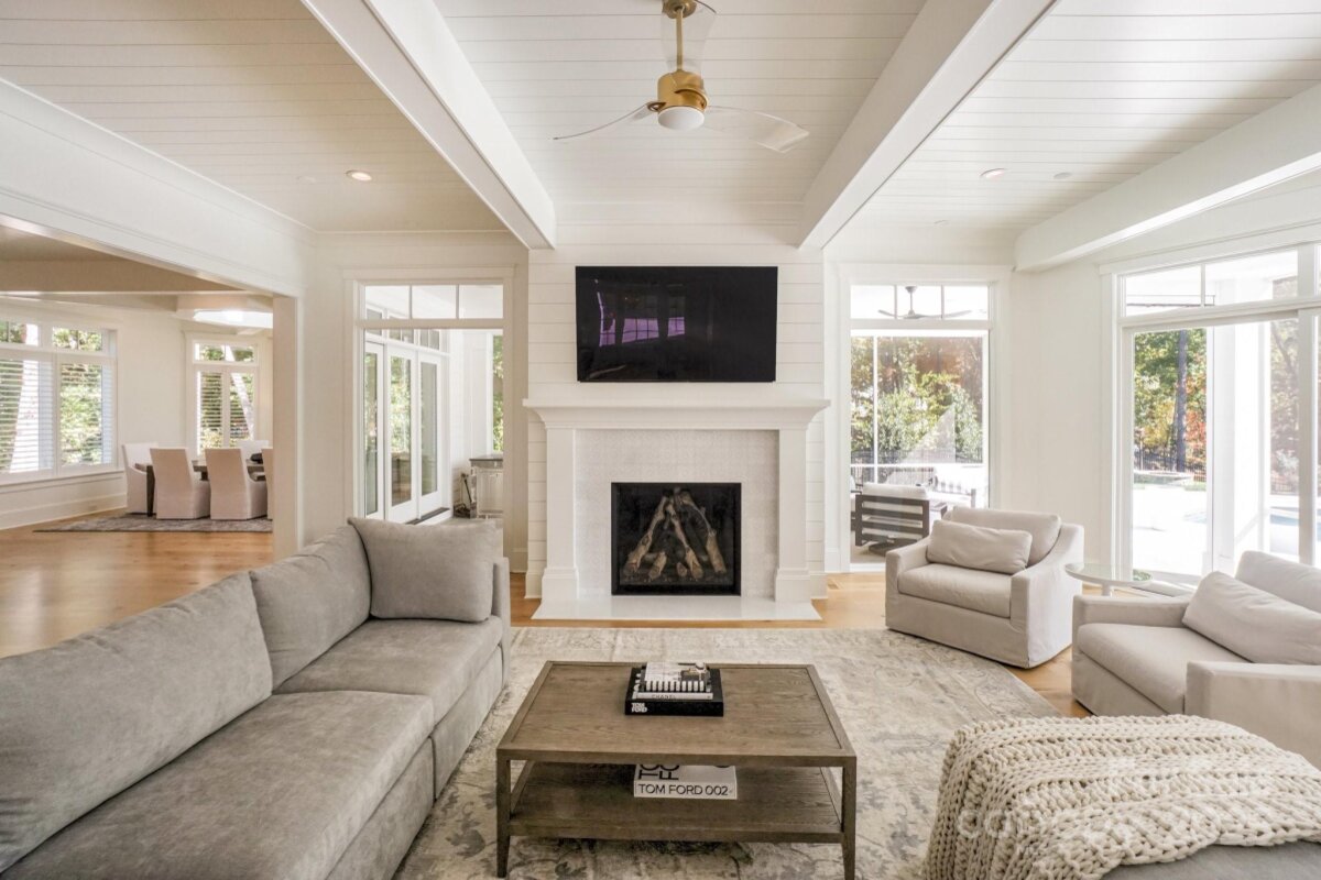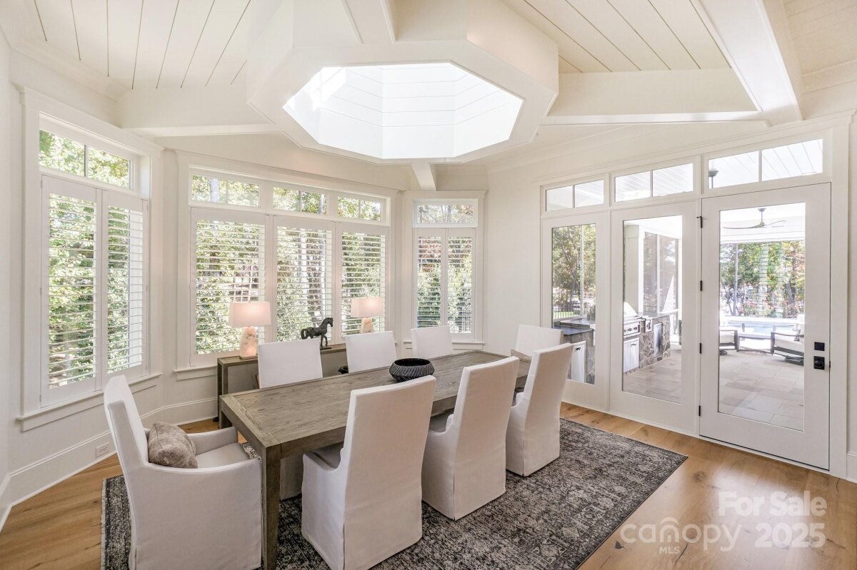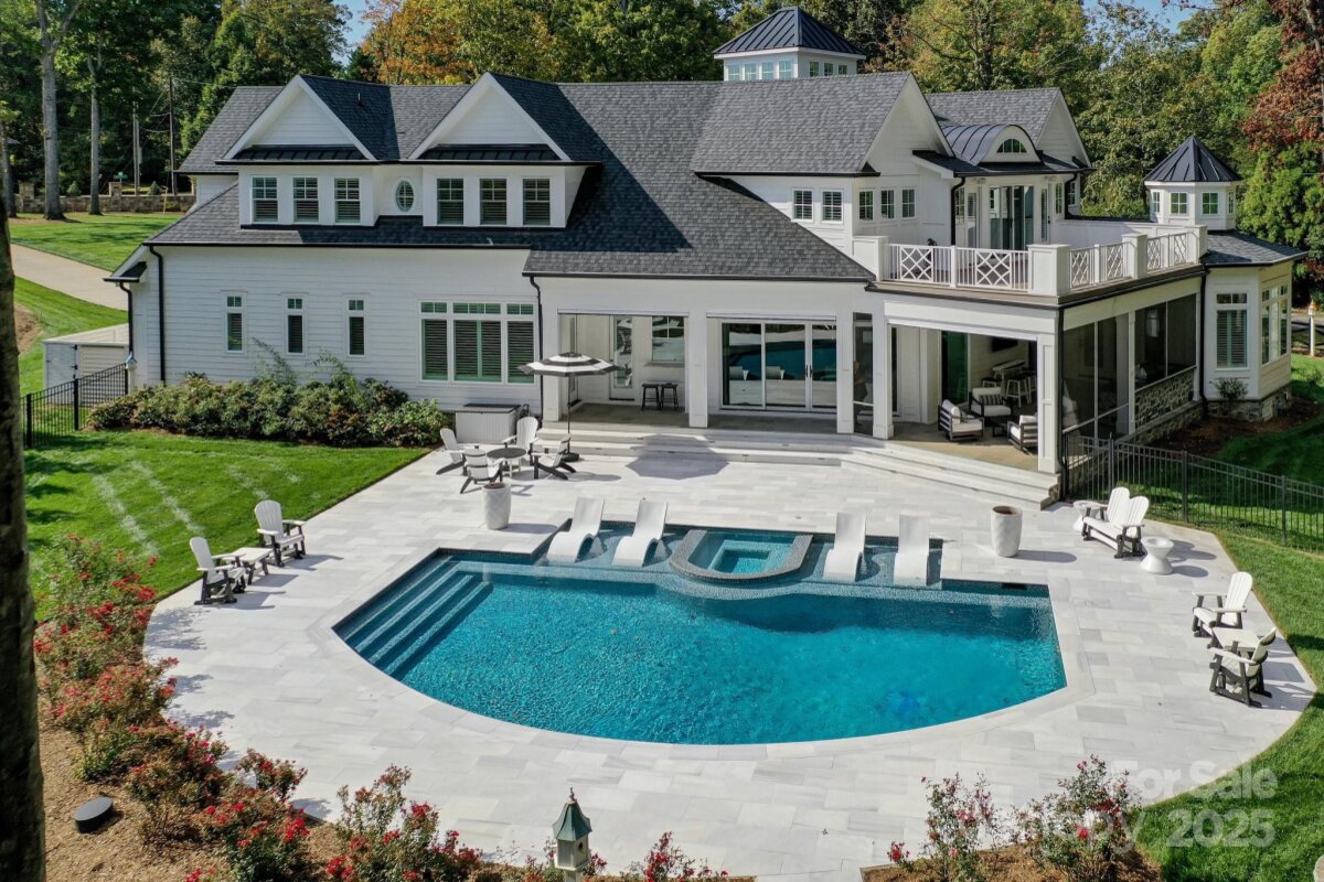 Experience timeless architecture and refined craftsmanship in this custom-built Cape Cod–inspired waterfront home in Saylor’s Watch, one of Lake Norman’s most exclusive enclaves! Built by Patrick Joseph Distinctive Homes, this residence blends relaxed coastal charm with meticulous detail, offering a lifestyle defined by beauty, comfort, and connection to the water! Spanning over 6,300 square feet, the home opens through a glass-paneled entry door into a soaring two-story foyer wrapped in shiplap and natural light. Every finish has been carefully curated—from wide-plank white oak floors to handcrafted millwork, designer lighting, and layered textures that create a sense of calm sophistication throughout! The heart of the home is the chef’s kitchen, with marble countertops and an expansive island! Premium Wolf, Sub-Zero, and JennAir appliances, custom cabinetry, and a fully equipped scullery make this kitchen both elegant and efficient. The adjoining dining area, with its cupola skylight and access to the grilling patio, flows seamlessly into the great room—where a beautiful white birch fireplace, coffered ceiling, and lake views set the tone for gatherings large and small! The main-level owner’s suite is a private retreat, complete with heated marble floors, freestanding tub, Toto toilet and custom closet with center island for added storage! Upstairs, two additional bedrooms, each with en-suite baths and an additional bonus room/office enjoy access to the upper level lakeside terrace. Additional spaces include a home theater and yet another bedroom for added space or home office. Designed for effortless living, this home includes two laundry rooms, both upstairs and down, & two 2-car garage spaces with epoxy floors, Control4 automation, whole-house water softener, Generac generator, and a sealed, climate-controlled crawl space. Every bedroom is pre-wired for television and audio, and four Trane HVAC units maintain zoned comfort. Outdoor living is nothing short of extraordinary! A heated saltwater pool and spa feature stone decking, LED color lighting, and mosaic tile details, while a built-in bar area with Thermador refrigeration and U-Line ice maker serves both the great room and the pool terrace. The covered porch, complete with retractable Phantom screens, bluestone flooring, and a full Lynx outdoor kitchen, invites dining and relaxation year-round. The upper lakefront terrace captures sunrise views over the water—an inspiring start to each day!! A shared dock with power and water sits just behind the home, offering easy access for boating and lake enjoyment. Located minutes from Trump National Golf Club Charlotte and The Point’s premier amenities, this property offers luxurious lakeside living in a prime Lake Norman setting! From its Cape Cod elegance to its exceptional craftsmanship and thoughtful layout, 103 Saylor’s Watch Lane delivers the perfect blend of sophistication and lakeside living!