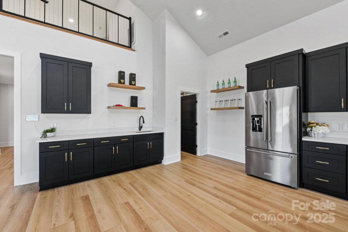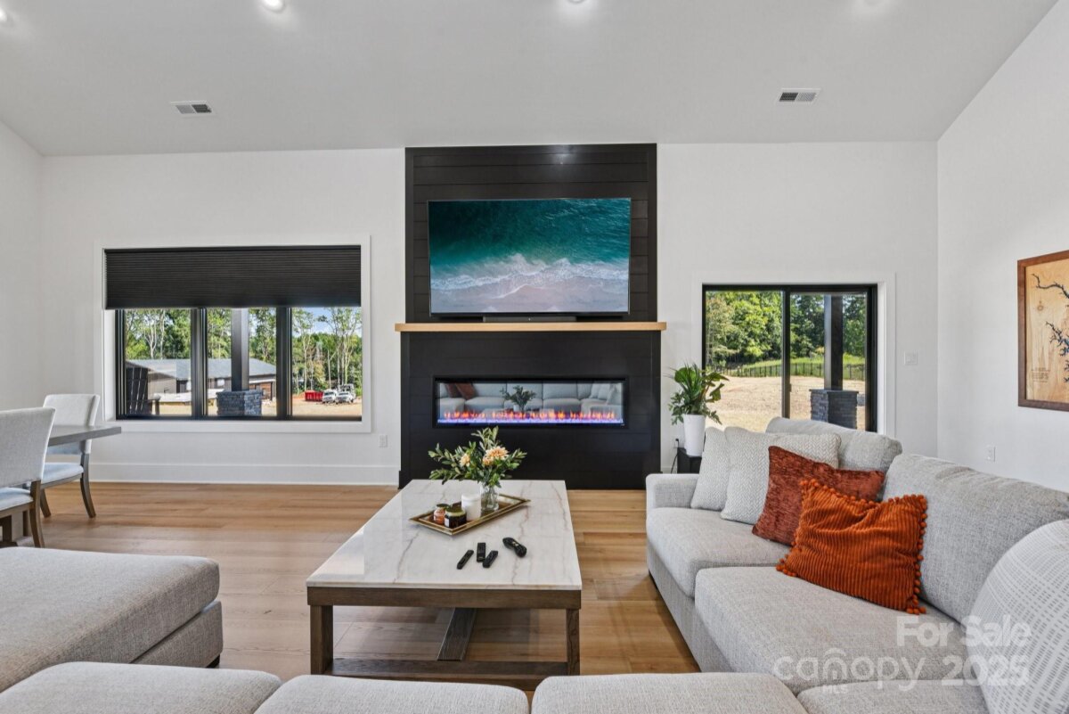 Welcome to Honeyman Estates, an exclusive gated enclave featuring just five luxury barndominiums, a rare opportunity to own one of the most innovative and desirable styles of homes in today’s market. More than just a residence, this property represents a new way of living: blending modern luxury with true practicality, designed for those whose lifestyle is as expansive as their vision. The garage is a masterpiece of its own, designed for more than just storage. With climate-controlled comfort, soaring 16 to 18-foot ceiling heights, epoxy-coated floors, and a powerful 400-amp service panel, this space is fully prepared to house your car collection, provide room for RVs and boats or even your very own indoor pickleball court! Spray foam insulation ensures year-round efficiency, while the impressive volume of the space allows for nearly limitless possibilities. This property offers not only the space but also the freedom to fully embrace your passions. From family living to hobby space, it redefines what home can mean. Step inside to find a stunning great room crowned by soaring vaulted ceilings that draw the eye upward and create an immediate sense of openness and grandeur. Vertical modern cable railing adds a sleek architectural touch, blending contemporary design with the rustic elegance of the barndominium aesthetic. The chef’s kitchen is a true centerpiece, featuring 42†shaker cabinets, quartz countertops, floating shelves, and premium appliances, crafted for both everyday meals and grand entertaining. Luxury vinyl plank flooring flows seamlessly throughout the home, leading to a striking 72†linear fireplace that anchors the living space with warmth and modern sophistication. Outside, the home’s timeless board-and-batten fiber cement siding pairs perfectly with architectural roofing, accented by standing seam metal for the covered porches, to create an aesthetic that is both classic and forward-thinking. Every detail has been considered, from the materials to the craftsmanship, resulting in a property that delivers enduring value and style. This barndominium is not just a home, it is a statement. A practical yet luxurious way of life that merges passion, functionality, and elegance under one roof. Honeyman Estates offers something incredibly rare: exclusivity, sophistication, and space to live life without compromise.