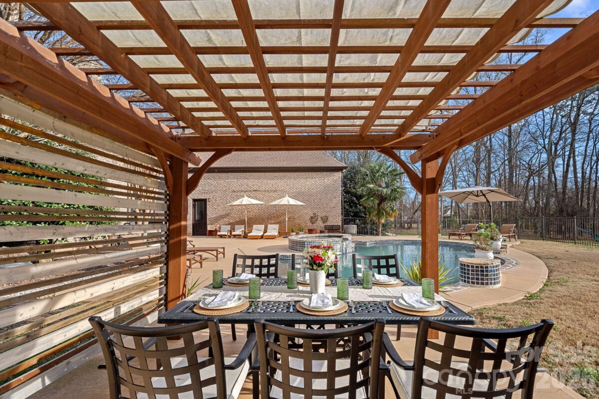 Welcome to 123 Cape Cod Way, a timeless all-brick custom residence ideally situated in the prestigious community of The Point. Set on a beautifully flat and meticulously manicured 1.48-acre homesite, this Simonini-built home offers exceptional privacy, quality craftsmanship, and enduring appeal. The four-bedroom, four-and-a-half-bath floor plan is defined by coffered and tray ceilings, refined architectural detailing, and expansive windows that flood the interiors with natural light. An open, airy layout provides effortless flow for both everyday living and entertaining. Outdoor living is seamlessly integrated with a screened rear patio overlooking the pool and fully fenced backyard, offering privacy, functionality, and space to enjoy the expansive lawn. A three-car garage with its own dedicated heating and cooling system adds versatility and comfort. Major updates include upper and lower HVAC systems replaced in 2022 and a new roof in 2022. Completing this exceptional offering is a dedicated boat slip (Pier Z #46), providing convenient access to Lake Norman and the coveted lake lifestyle.