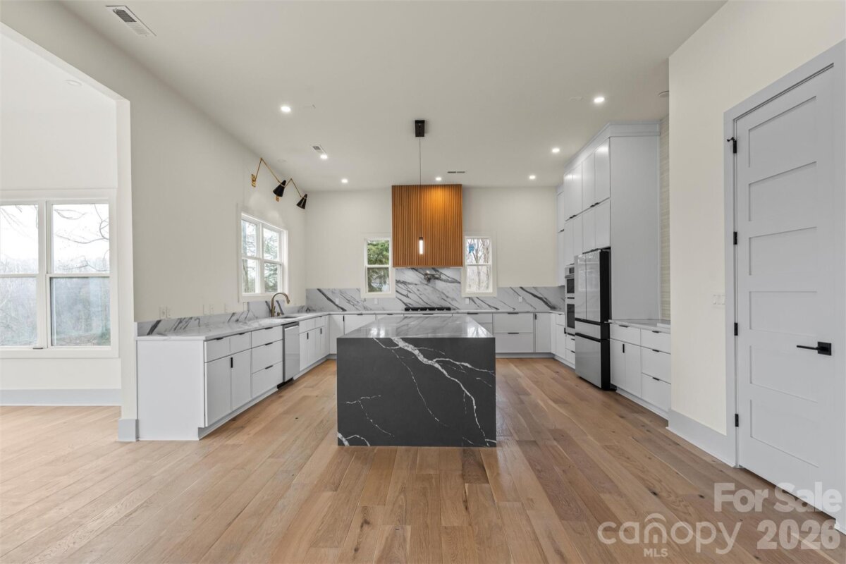 Designed for those who value privacy, presence, and the freedom of waterfront living, this custom Lake Norman residence delivers a rare combination of architectural scale, refined design, and lifestyle flexibility across three finished levels. Set on approximately 1.19 acres with expansive open-water views, the home offers a confident expression of modern lake living where entertaining, relaxation, and everyday comfort coexist effortlessly. The main level is defined by soaring 12-foot ceilings and an open, light-filled layout that draws the lake into the home. At its center is an ultra-luxury chef’s kitchen created for both visual impact and function, featuring massive countertop space, a dual waterfall quartz island, quartz backsplash, custom cabinetry, and high-end appliances. The kitchen flows seamlessly into the great room, where a gas fireplace, expansive windows, and sliding glass doors frame uninterrupted water views and open to an oversized deck, perfect for additional entertaining. This level also includes a guest suite with en-suite bath, a private office or flex room, and a powder room, offering versatility without sacrificing design continuity. The upper level is anchored by the primary suite, positioned as a private retreat designed for restoration and escape. The spa-inspired en-suite bath is defined by refined luxury, featuring dual vanities, a freestanding soaking tub set beside a dramatic floor-to-ceiling window, and an expansive glass-enclosed shower with dual rain heads. The result is a space that blends natural light, privacy, and elevated design into a true owner’s sanctuary. Additional bonus and flex rooms on this level offer adaptable space for guest accommodations, offices, or creative use, while a pre-designed, soundproofed media or theater room completes the floor with a dedicated entertainment experience rarely found in waterfront homes. The fully finished walk-out lower level dramatically expands the home’s livability. A second full kitchen, additional living areas, laundry, and multiple bonus and flex rooms create opportunities for multi-generational living, extended guest stays, or independent quarters. With direct exterior access, this level transitions naturally to the outdoors and enhances the home’s flexibility as both a primary residence and an elevated second home. The home is permitted for a three-bedroom septic system and includes multiple additional bonus and flex rooms across the upper and lower levels, allowing buyers to tailor the layout to their specific needs and lifestyle preferences. Outside, the lake experience becomes the centerpiece. The pier and covered floating dock invite mornings on the water, afternoons in the sun, and evenings spent watching the lake unwind. With no HOA limitations, ownership here offers rare autonomy and flexibility, including the potential for short-term rental use as a means to offset ownership while preserving lifestyle freedom. This is a waterfront residence that reveals its full impact in person. Private showings are strongly encouraged to experience the scale, flow, and setting firsthand.