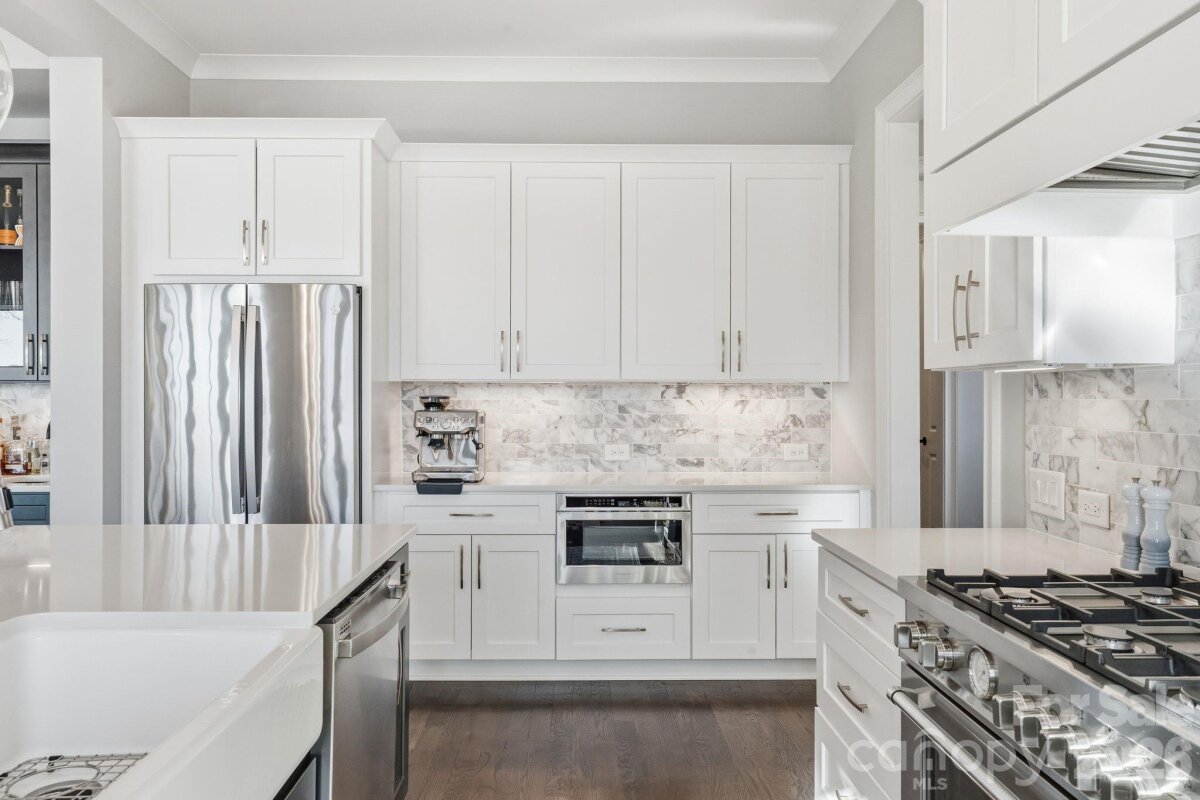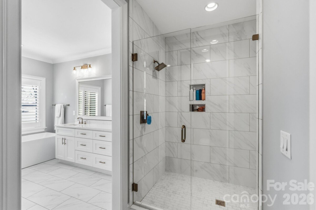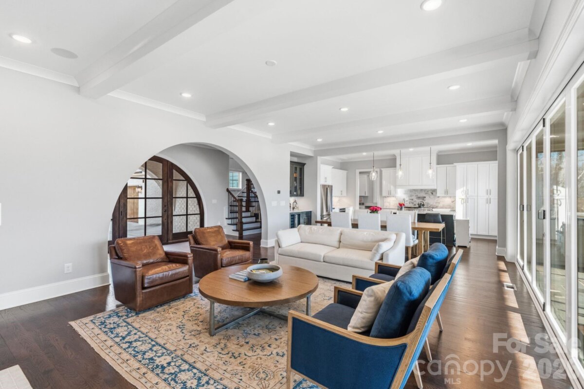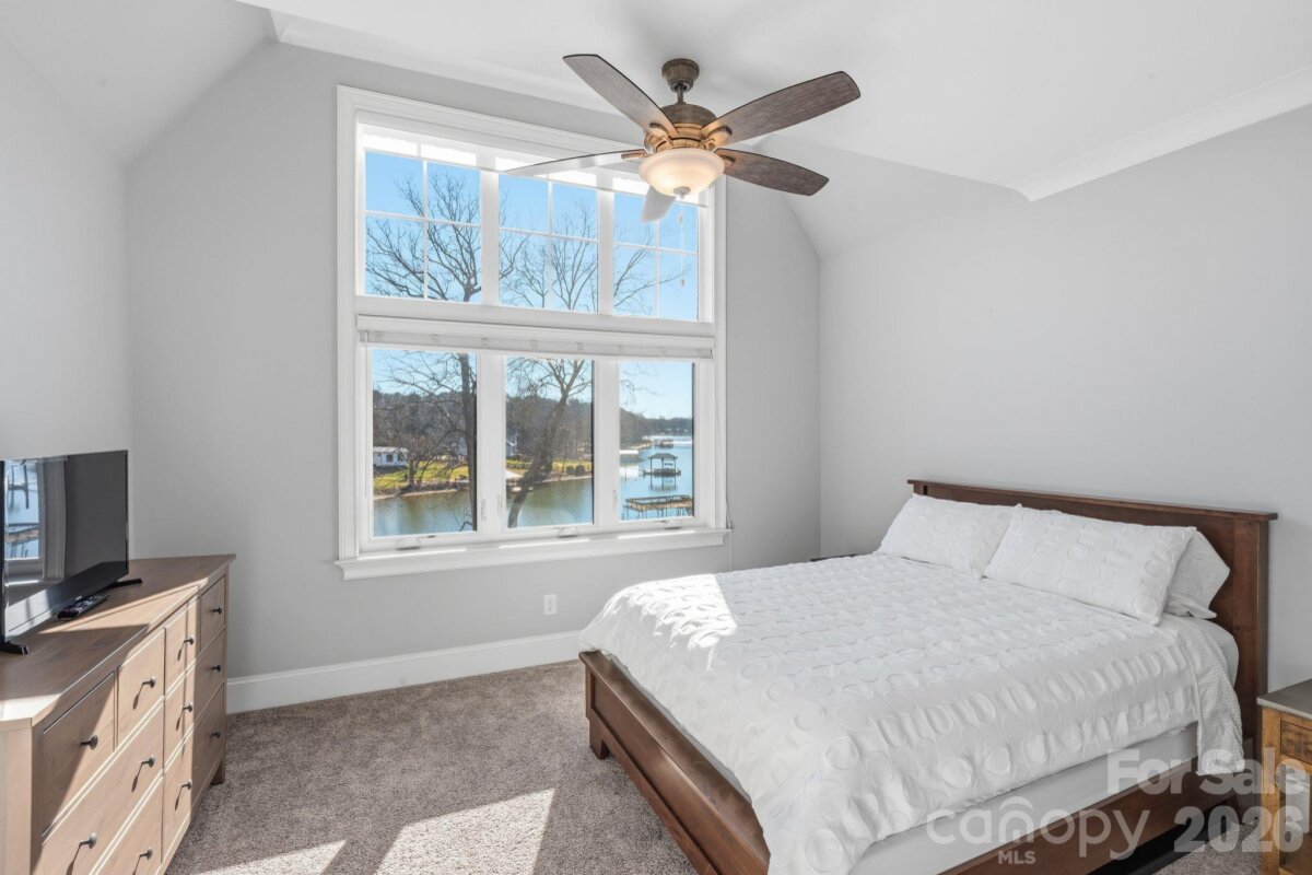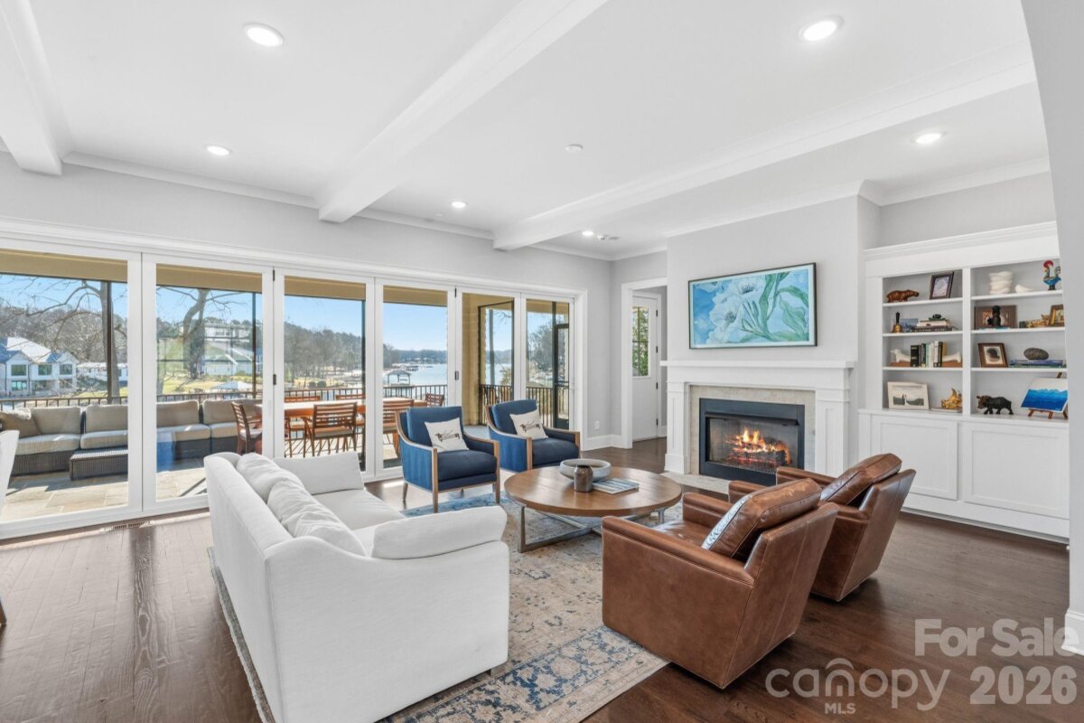 Welcome to an extraordinary waterfront retreat where refined modern design meets timeless sophistication on Lake Norman. This stunning 4,282 sq. ft. custom residence built in 2020 by Nest Homes has been meticulously maintained. Offering 4 bedrooms, 4.5 baths, a private guest suite on the main level and luxurious living spaces that seamlessly embrace the lake lifestyle. Step inside the dramatic arched doorway and be greeted by an open-concept main level bathed in natural light, and windows that frame sweeping lake views. Enjoy the comfort of your living room as the gas log fireplace offers warmth and built ins for added storage convenience. The kitchen is a masterpiece with a Bertazzoni gas range, expansive quartz island with seating, sleek cabinetry, a wet bar, and a generous walk-in pantry — perfect for entertaining and everyday living. Expansive accordion glass doors open from the living areas to the covered screened patio, effortlessly combining indoor and outdoor living. The primary suite is a tranquil sanctuary, boasting vaulted ceilings, uninterrupted lake views and a spa-inspired bath. Two additional bedrooms with private bathrooms and a huge versatile bonus room deliver space and flexibility. The dedicated upper laundry room offers built-in storage, a sink and tile flooring. Step outside to your private outdoor haven featuring a covered patio with a gas log fireplace, ideal for year-round gatherings, and a sprawling yard with space for a future pool. A peaceful stone pathway leads down to your waterfront with a covered dock including a hydro hoist boat lift plus a secondary cable lift ready for lake adventures. With a 3-car attached garage and no HOA, this residence blends luxury, convenience and recreation effortlessly. Stunning water views, premium finishes and thoughtful architectural details. Located minutes from premier dining, shopping, marinas, golf, parks and top-rated schools, this Lake Norman gem defines elevated waterfront living.