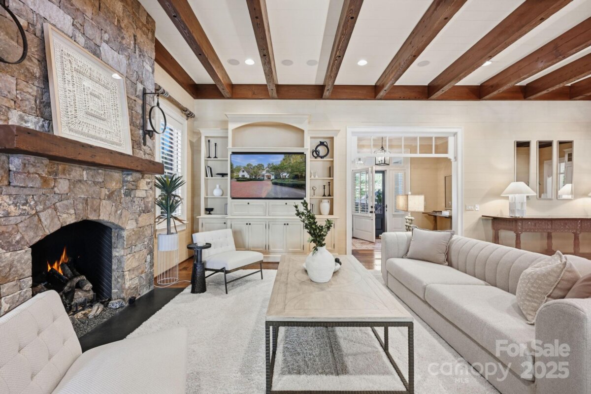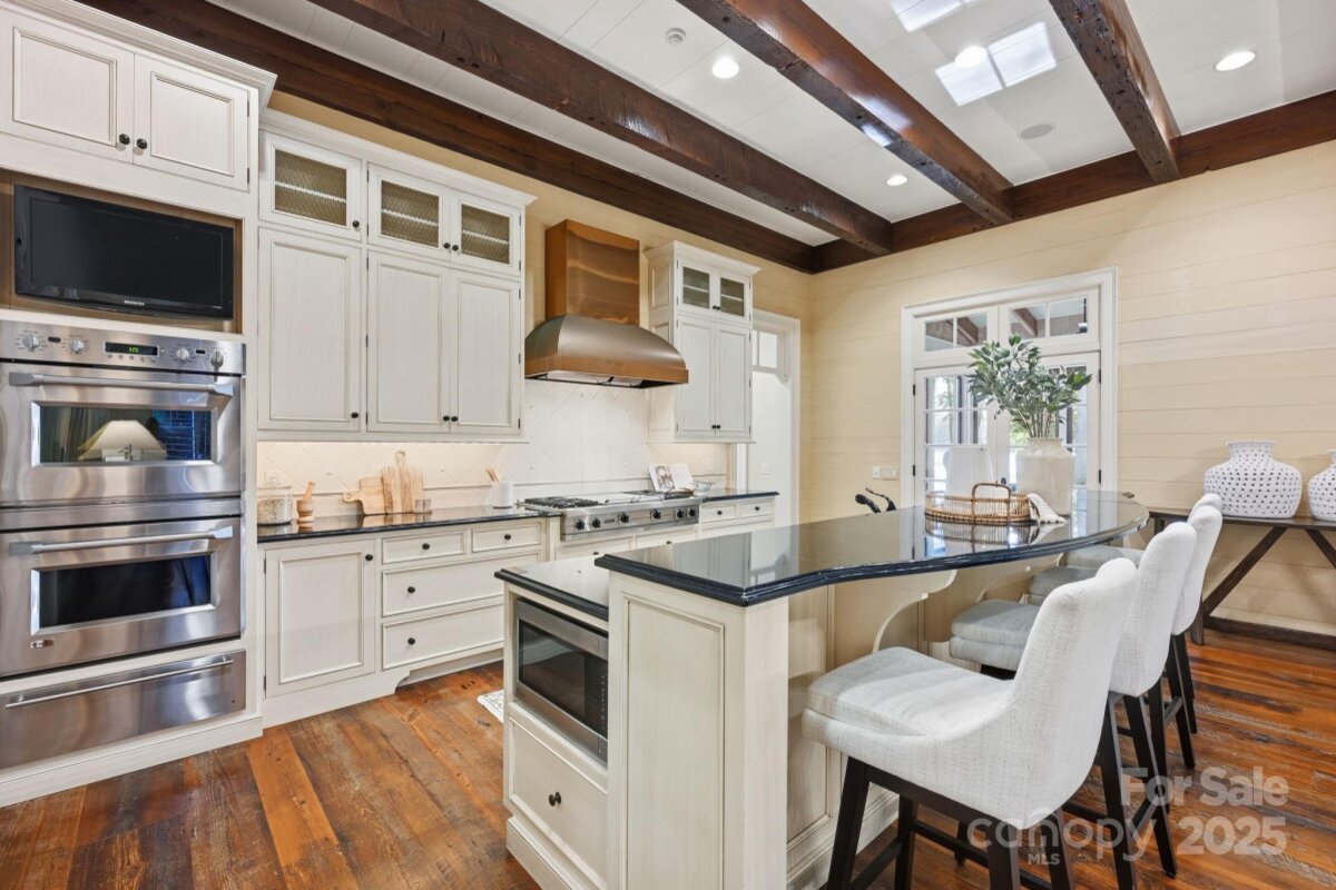 Experience Lake Norman living at its finest in this custom waterfront retreat on a private, gated peninsula. Designed by Don Duffy Architecture and built by renowned custom home builder Philip R. Thomas, this home blends timeless architecture, refined craftsmanship, and relaxed luxury. The open main level features heart-of-pine floors, expansive lake views, and seamless indoor-outdoor flow for effortless entertaining. A gourmet kitchen, inviting great room with stone fireplace, and lakeside screened porch set the stage for everyday living and memorable gatherings. Three main-level bedroom suites, including the serene primary retreat, offer comfort and privacy. Upstairs, a spacious bedroom suite and flex spaces provide room for guests or recreation. Outdoor living shines with over 300 feet of shoreline, double dock with boat lift, outdoor shower, and sweeping main channel views. Set on a private one-acre lot at the tip of Iron Gate, this property offers tranquility, sophistication, and the ultimate Lake Norman lifestyle—just across the water from Davidson College’s Lake Campus, minutes to Mooresville conveniences, and an easy drive to Charlotte.