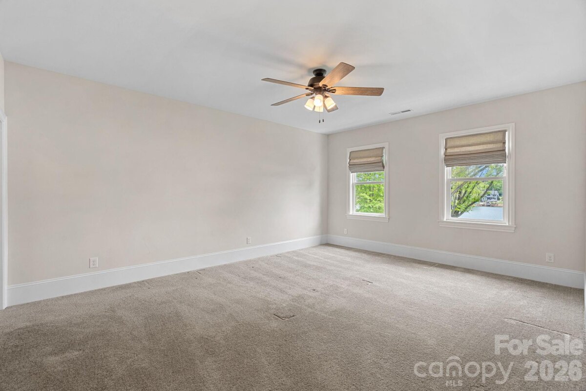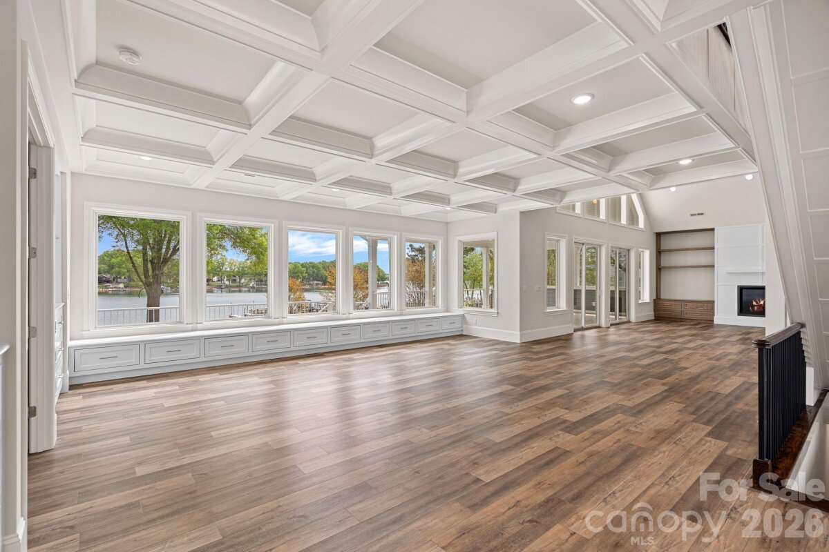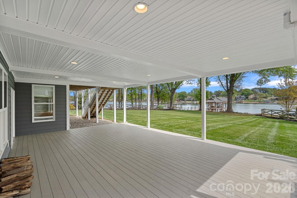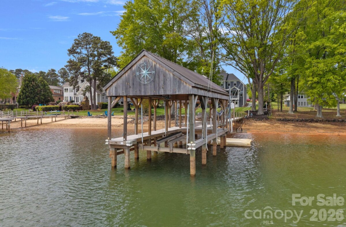 This custom-built waterfront home with a 3-car garage offers a rare blend of refined craftsmanship, thoughtful design, and effortless lakefront living, all meticulously maintained and presenting like new. Ideally positioned along the shores of Lake Norman, the property showcases an exceptional connection to the water, highlighted by an impressive covered dock built in 2020 with a seating area, 10,000 lb boat lift, and two jet ski lifts, all set beside a rare sandy beach. Inside, the open-concept main living area is designed to maximize both comfort and views, featuring vaulted and coffered ceilings, abundant natural light, and panoramic lake vistas from nearly every room. High-end finishes, fixtures, and appliances are complemented by extensive custom-built-ins, including window seats perfectly positioned to take in the scenery and an impressive 86 custom drawers providing exceptional storage. The two-story home with lake-level basement includes a main-level primary suite with a private lake-view balcony, a vaulted great room with gas fireplace, and a beautifully appointed vaulted kitchen with a large island and breakfast bar, two new dishwashers, 6-burner gas range, beverage refrigerator, stainless refrigerator, walk-in pantry, and vaulted dining area, all designed to capture the water views. Upstairs, an inviting loft with a built-in reading nook is joined by three secondary bedrooms with lake views and a full bath. The walk-out basement expands the living space with a second kitchen, family room with woodstove, large bonus room with custom closet, one and a half baths, and generous storage. A massive workshop with its own driveway adds exceptional flexibility. Outdoor living is equally impressive, with a covered front porch finished in Pennsylvania bluestone, a spacious covered patio, and a covered deck with soaring vaulted ceiling and durable Wolf decking overlooking the lush lawn and lake, giving you fantastic water views from sunrise to sunset. The back and side yard feature lake-fed irrigation. There is also potential to create a private backyard retreat with a pool, spa, and sundeck, with documentation available. Enjoy the freedom of no HOA dues while remaining close to several clubs with additional lifestyle amenities, including Trump National Golf Club Charlotte, Lake Norman Golf Club, Lake Norman Racquet & Social Club, and Lake Norman Pickleball Club. Just a short drive to shopping, dining, and entertainment. With quick boat access to the main channel, this property offers an exceptional Lake Norman lifestyle where comfort and time on the water come together.