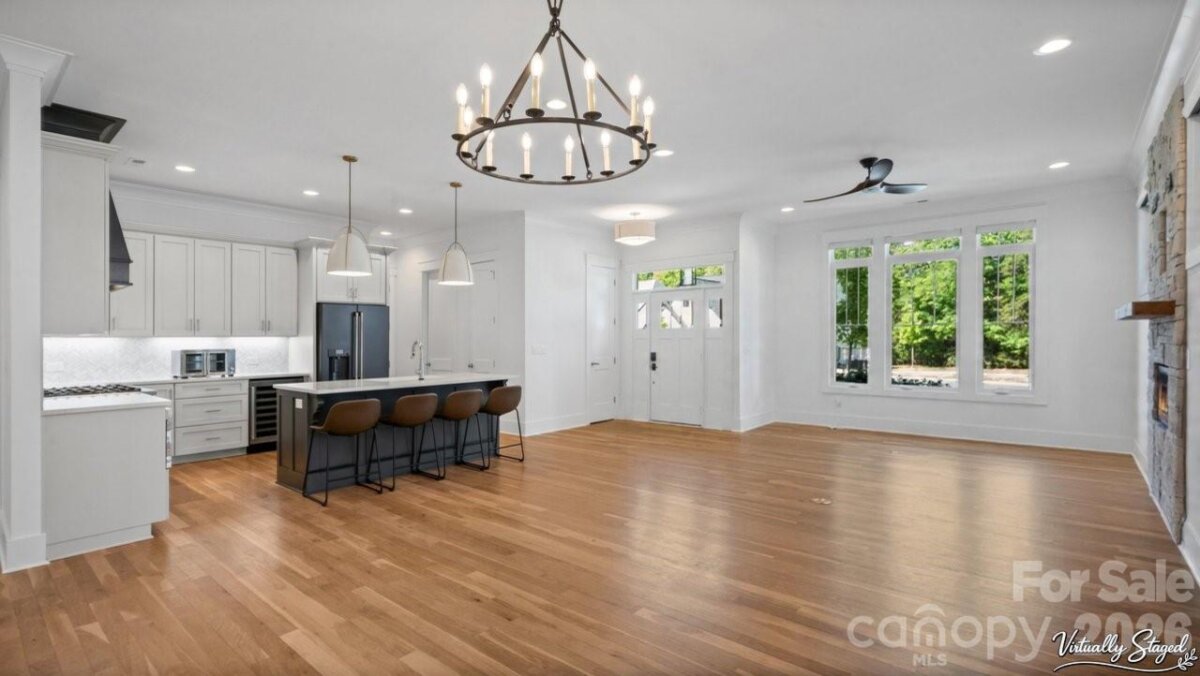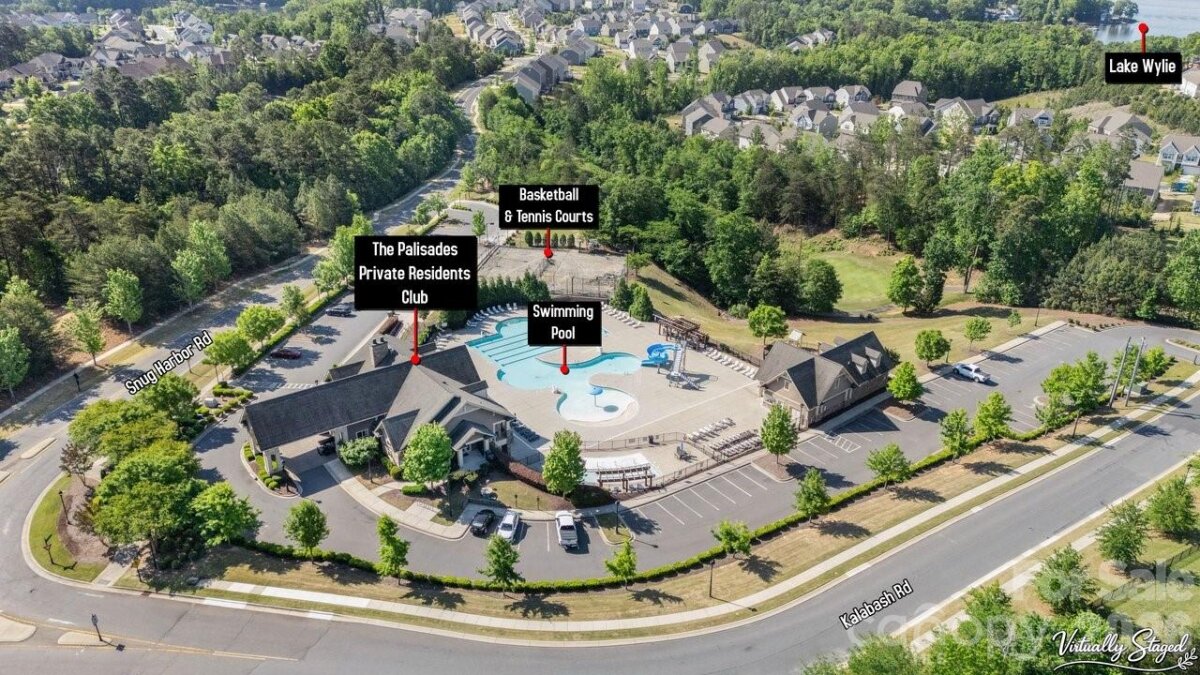Elegant home offering a true lifestyle experience in the highly desirable Palisades community. Enjoy walkable access to top-tier amenities, including a resort-style pool, fitness center, tennis and pickleball courts, clubhouse, and scenic walking trails, all just steps from your door. Low-maintenance living is made easy with HOA-included lawn care, plus a social membership to Palisades Country Club, featuring premier dining, swimming, fitness, and a vibrant social calendar. Inside, the home showcases a light-filled open floor plan with hardwood floors and refined architectural details. The gourmet kitchen features gray cabinetry, quartz countertops, stainless steel appliances, a gas range with vented hood, and a large prep island. The great room with fireplace flows seamlessly into the dining area and spacious screened porch is perfect for indoor-outdoor living. The main-level primary suite is a private retreat with a spa-like bath and custom closet. A secondary bedroom and full bath on the main level add flexibility. Upstairs, a versatile loft and two additional bedrooms complete the space. Custom shades and closets add a polished, designer finish throughout. This home delivers comfort, convenience, and resort-style living in one of Charlotte’s most sought-after communities.
