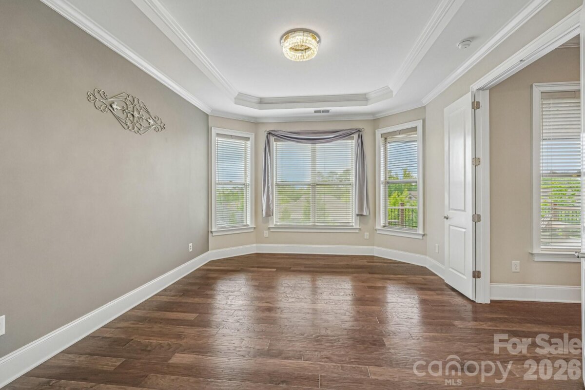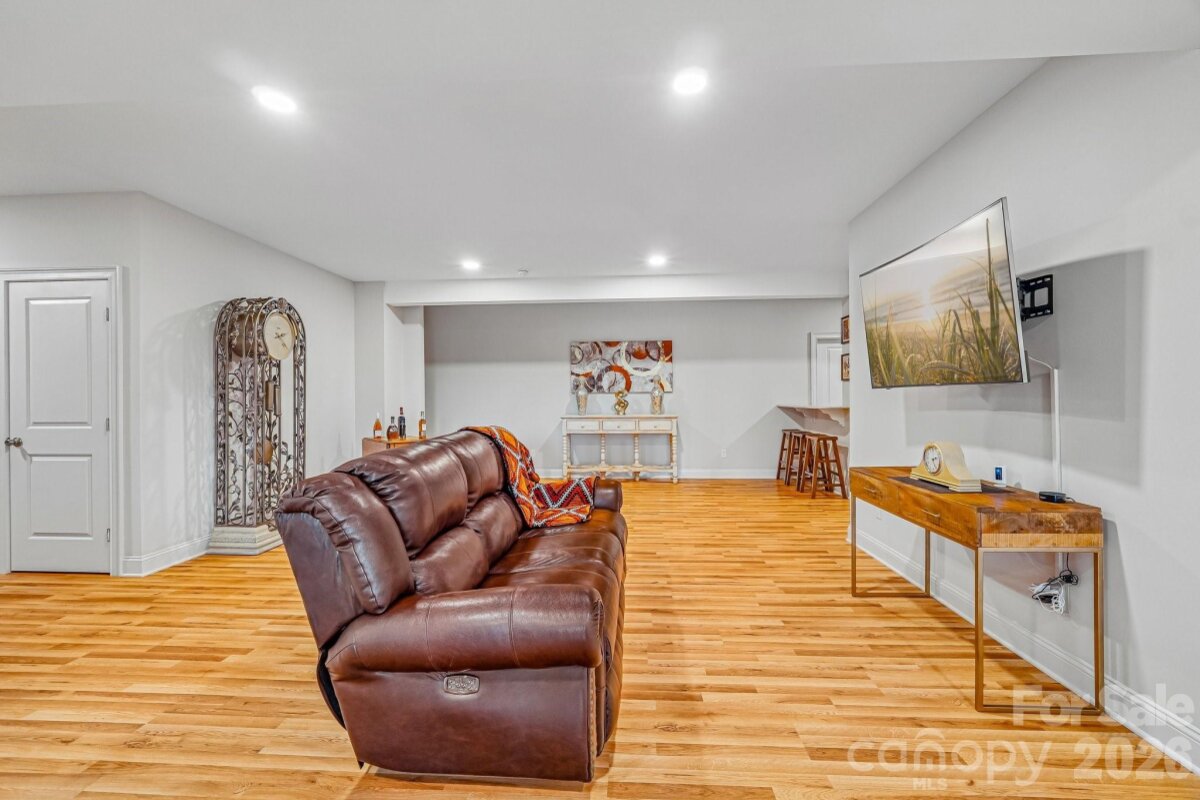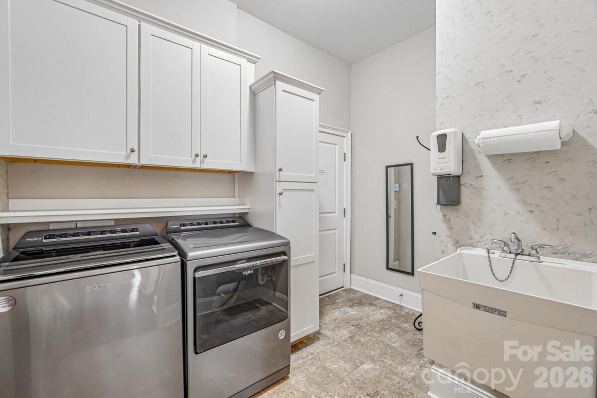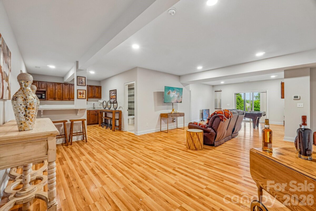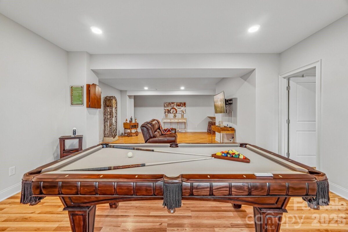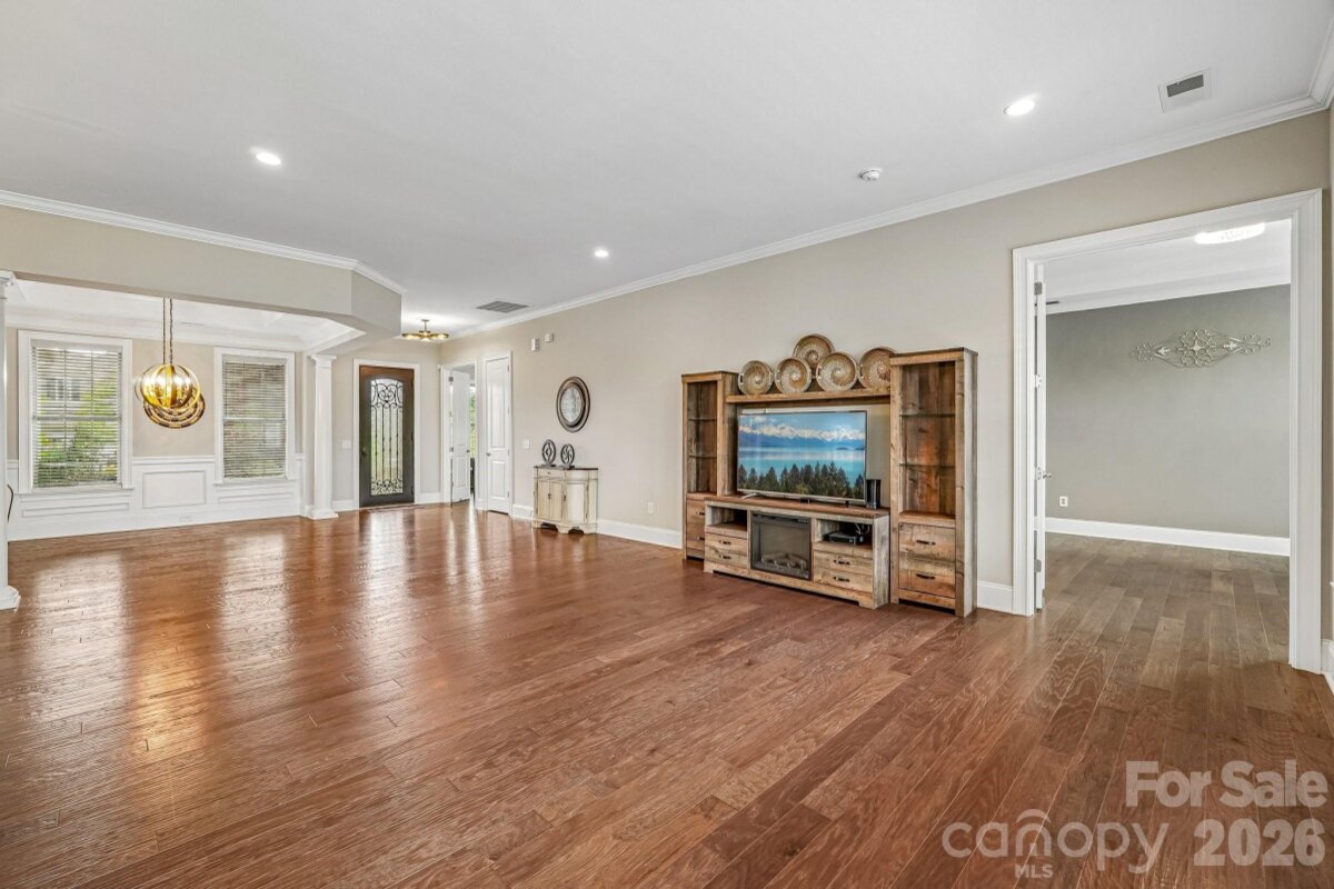 From the moment you enter through the custom-crafted front door, this exceptional cul-de-sac residence sets a tone of refined elegance. Rich hardwood floors, stately columns, intricate crown molding and wainscoting, custom wood blinds, and tray ceilings showcase the home’s impeccable attention to detail and timeless design. At the heart of the home, the gourmet kitchen is designed to impress, anchored by a stunning 12-foot granite island and complemented by abundant custom cabinetry. High-end appliances include a Bosch gas range with hood and a KitchenAid refrigerator. These pair beautifully with a classic subway tile backsplash and a farmhouse sink, creating a space that is as functional as it is sophisticated. The expansive primary suite offers a private retreat, featuring dual vanities, an oversized walk-in shower, a luxurious soaking tub, and a generously sized walk-in closet. The walkout lower level elevates the home’s versatility, offering 9-foot ceilings and a thoughtfully designed layout that can easily function as a second living quarters, ideal for multigenerational living, or as an exceptional space for guests, a private office, and entertainment. A well-appointed kitchenette with quartz countertops, custom cabinetry, sink, and built-in beverage cooler enhances the space, alongside a 2nd primary/guest bedroom with a full bath. A cedar walk-in closet with motion-activated lighting adds a distinctive touch of luxury. Designed for both wellness and leisure, the home includes a fully equipped gym with mirrored walls and durable rubber flooring. Outdoor living is equally inviting, with upper and lower Trex decks featuring built-in seating and overlooking a beautifully landscaped, serene backyard. Completing the property is a pristine two-car garage with epoxy flooring and substantial overhead storage. Generous storage solutions can be found throughout the home, ensuring both beauty and functionality at every turn.