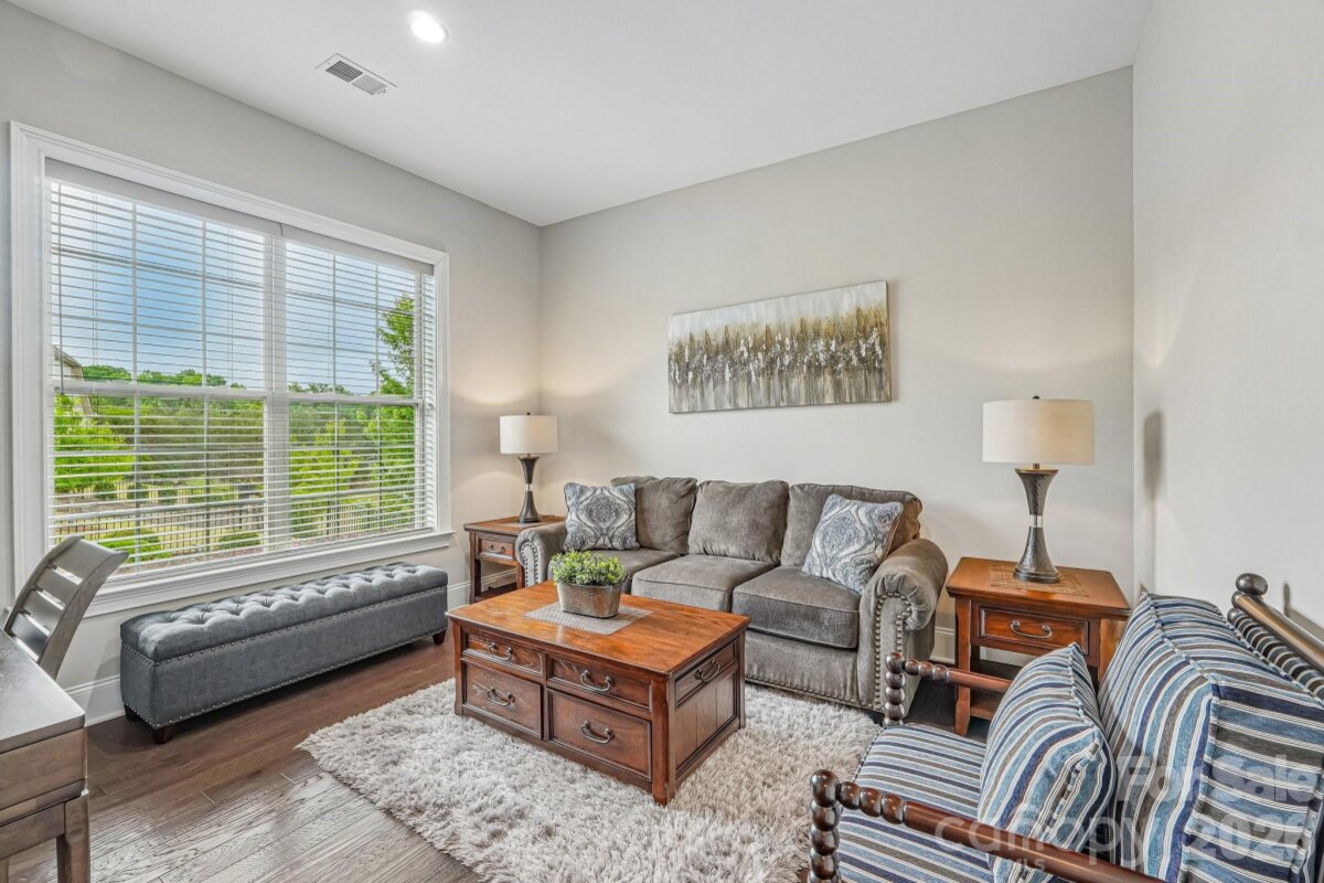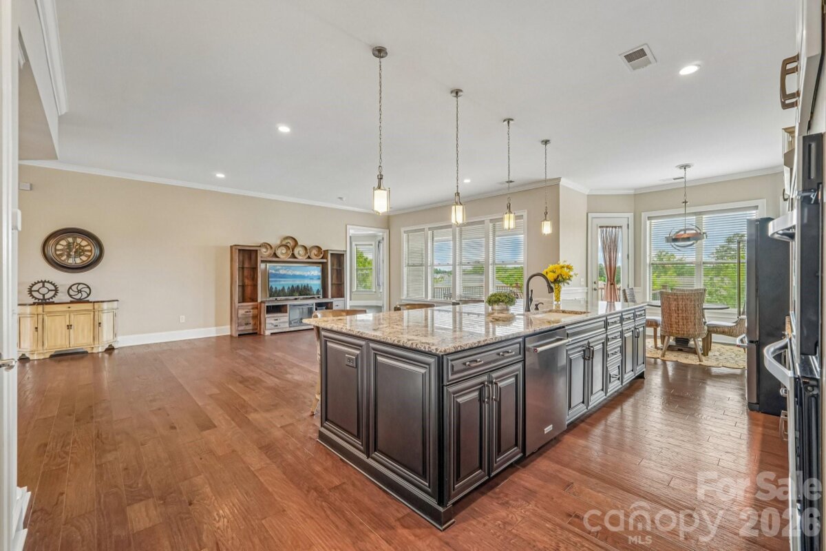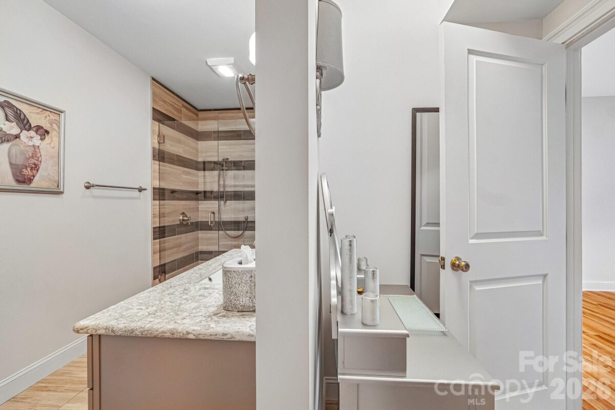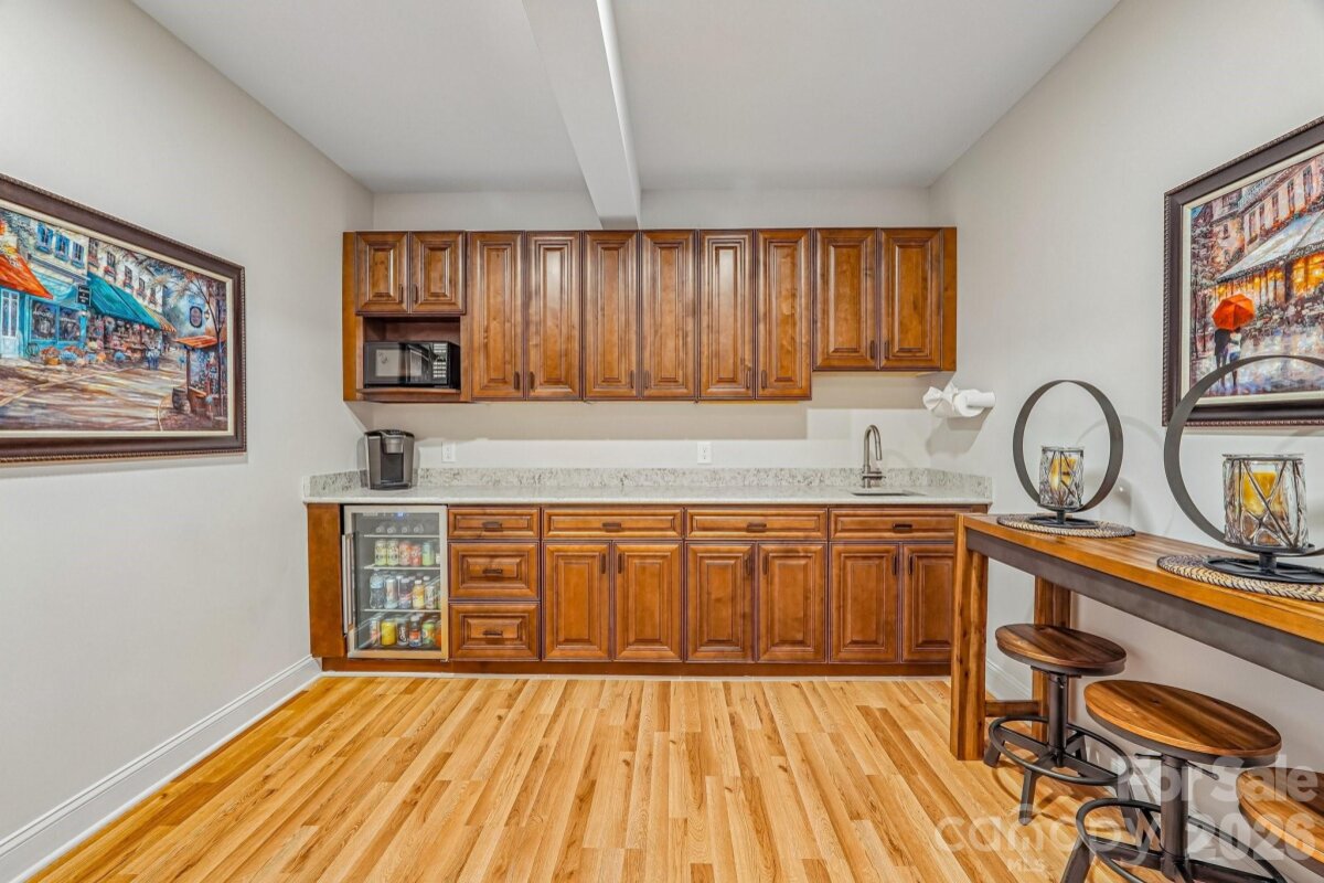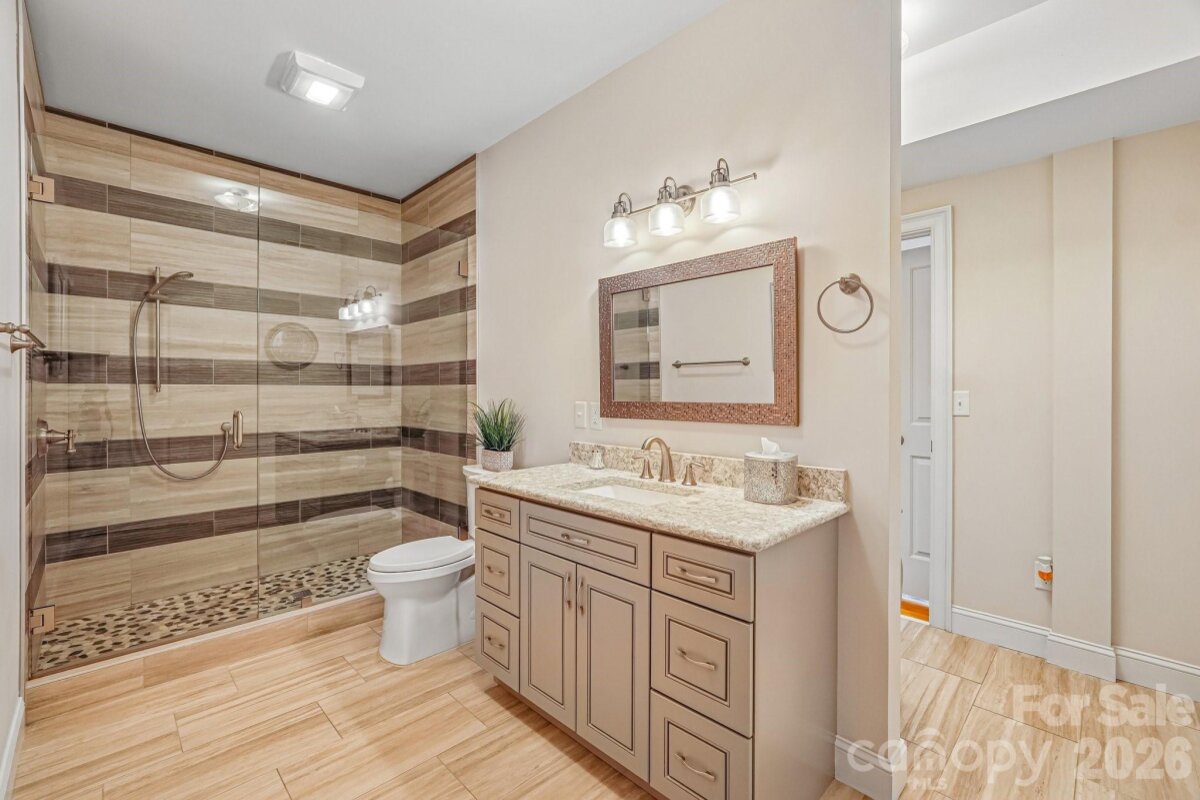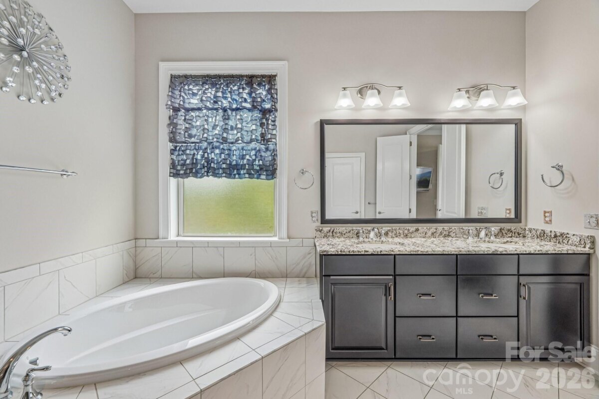 From the moment you enter through the custom-crafted front door, this exceptional cul-de-sac residence sets a tone of refined elegance. Rich hardwood floors, stately columns, intricate crown molding and wainscoting, custom wood blinds, and tray ceilings showcase the home’s impeccable attention to detail and timeless design. At the heart of the home, the gourmet kitchen is designed to impress, anchored by a stunning 12-foot granite island and complemented by abundant custom cabinetry. High-end appliances include a Bosch gas range with hood and a KitchenAid refrigerator. These pair beautifully with a classic subway tile backsplash and a farmhouse sink, creating a space that is as functional as it is sophisticated. The expansive primary suite offers a private retreat, featuring dual vanities, an oversized walk-in shower, a luxurious soaking tub, and a generously sized walk-in closet. The walkout lower level elevates the home’s versatility, offering 9-foot ceilings and a thoughtfully designed layout that can easily function as a second living quarters, ideal for multigenerational living, or as an exceptional space for guests, a private office, and entertainment. A well-appointed kitchenette with quartz countertops, custom cabinetry, sink, and built-in beverage cooler enhances the space, alongside a 2nd primary/guest bedroom with a full bath. A cedar walk-in closet with motion-activated lighting adds a distinctive touch of luxury. Designed for both wellness and leisure, the home includes a fully equipped gym with mirrored walls and durable rubber flooring. Outdoor living is equally inviting, with upper and lower Trex decks featuring built-in seating and overlooking a beautifully landscaped, serene backyard. Completing the property is a pristine two-car garage with epoxy flooring and substantial overhead storage. Generous storage solutions can be found throughout the home, ensuring both beauty and functionality at every turn.