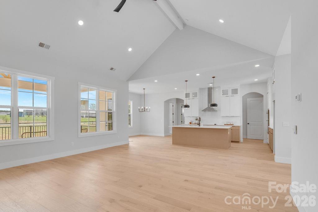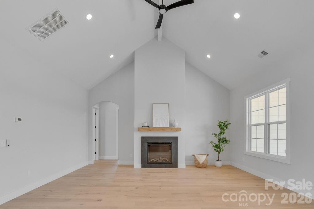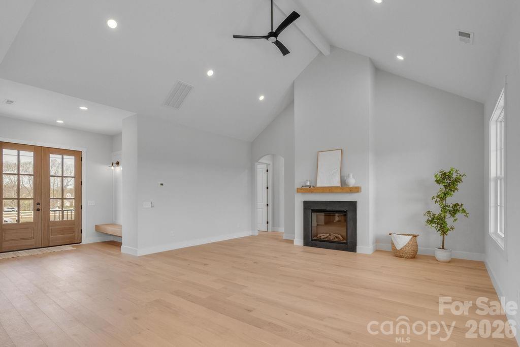 Beautiful modern farmhouse situated on over 5 private acres! This thoughtfully designed one-story home offers approximately 2,461 heated sq ft with 4 bedrooms, 2.5 baths, and open-concept living areas. The spacious family room features vaulted ceilings and a fireplace, flowing into a large kitchen with center island and walk-in pantry. The private master suite includes a spa-like bath with freestanding tub, walk-in shower, and generous closet space. Enjoy peaceful outdoor living with huge vaulted rear porch overlooking the expansive property. Additional features include a 2-car garage, mudroom, and dedicated laundry room. Plenty of space for a pool, workshop, or outdoor recreation.