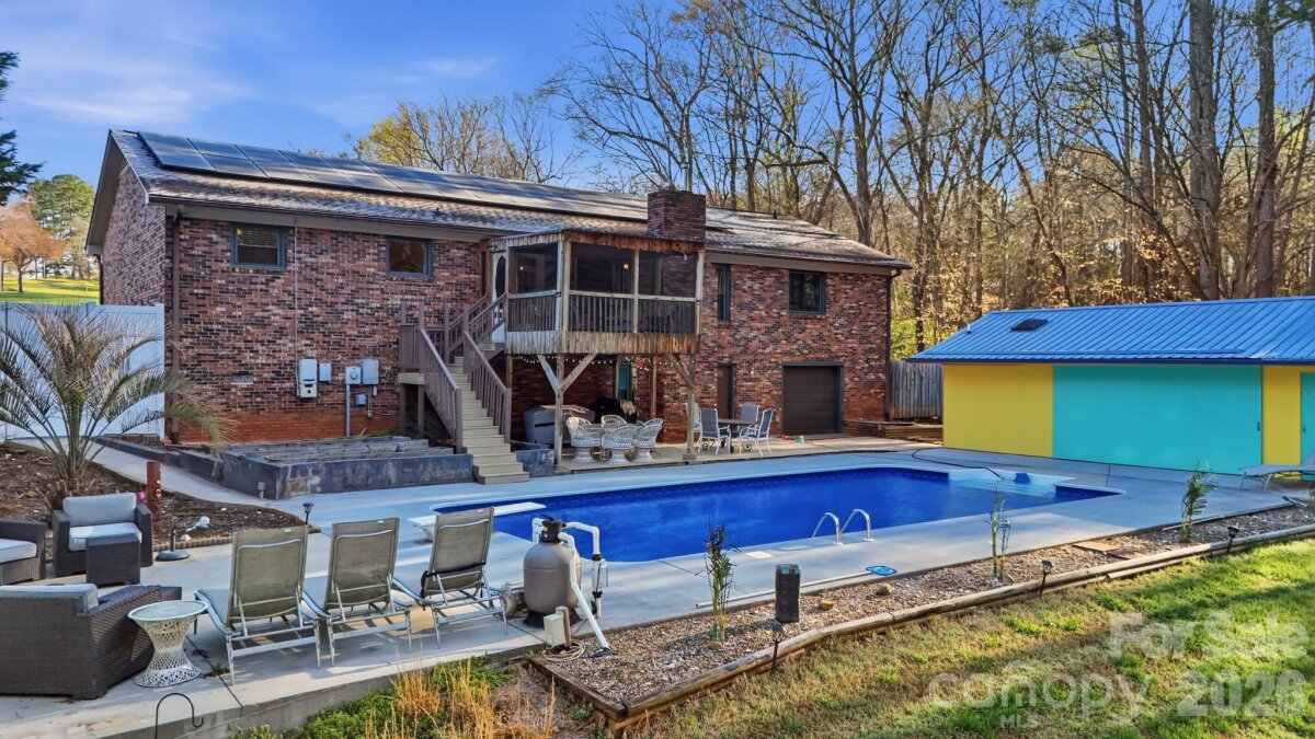 Full Brick house with partial basement & in-ground pool with a large pool house with a kitchen & full bath and storage room. 3 bedrooms 2 full baths on main floor, large open living room with brick fireplace, nice size Dining area that leads to a cozy screened in porch. Nice, updated kitchen with a nice size pantry. Large laundry room with storage space. A wonderful private office, all this on the main floor. Basement has a cozy den that has a brick fireplace and half bath. Storage room with a roll up garage door. Pool area is fantastic with plenty of patio/concrete area for entertaining. The pool house has a kitchenette with a full bath and storage room. Please don't miss out on this one.