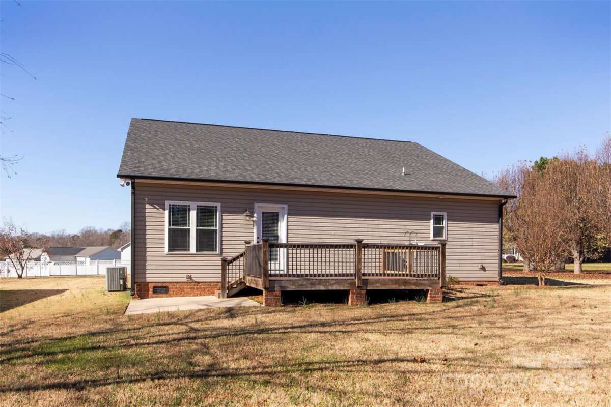 Want country living with access to downtown Lincolnton in less than 5 mins? This home is the perfect single story brick ranch with a split floorplan and everything you could want for easy living. It sits on over .05 acres and this neighborhood has no HOA. You also get the benefit of NO city taxes. You enter the home to beautiful hardwoods where you will find two bedrooms with their own bathroom. Then follow the corridor to an open, generous, family room with a stunning stone fireplace that continues to the beautiful kitchen with tons of cabinets, a large island with granite countertops. The dining area is spacious and can hold your largest table easily. Off the kitchen area you'll find an oversized laundry room with a utility sink and the washer and dryer stays as well as the fridge! The primary bedroom is nice with it's own ensuite and a large walk in closet. The two car garage is oversized as well and offers 528 sq ft which should fit any car or truck you have. Outside you'll find a large 16 x 12 composite deck offering a low maintenance solution for outside enjoyment. There is an additional concrete patio as well. The backyard is private and looks out onto an open farm. You will love this quiet , well established neighborhood, just mins to local shopping, restaurants, any easy access to anything you might need.