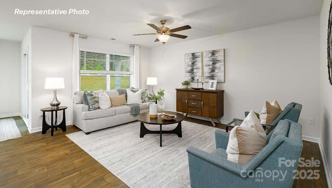 The Aria is one of our ranch plans featured at Clark Creek Landing in Lincolnton, NC. The Aria is a spacious and modern single-story home designed with open-concept living carefully considered throughout. This home features three bedrooms, two bathrooms, and a two-car garage. This open plan features a family room, dining room, and kitchen designed with the home cook in mind. The kitchen is equipped with a pantry, stainless steel appliances, and a large island with a breakfast bar, making it perfect for both dining and casual entertaining. The Aria also features a luxurious primary suite, complete with a large walk-in closet, primary bathroom with dual vanities and a spacious shower. The additional two bedrooms and secondary bathroom are located at the opposite end of the home, providing optimal privacy for both you and your guests. In the rear of the home is a covered porch that is perfect for outdoor entertaining. Amenities include a community pool, cabana, and playground!