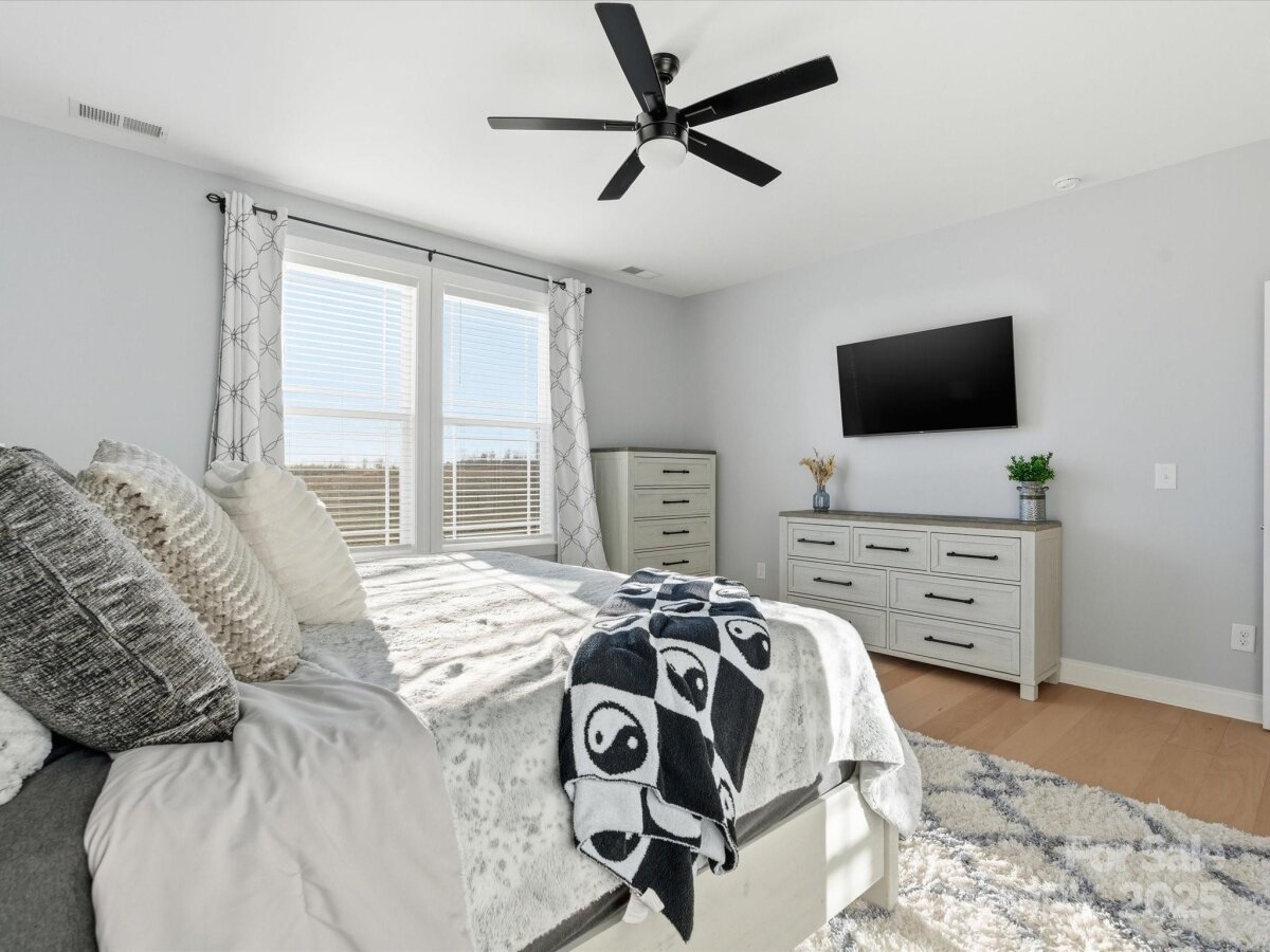 Discover the ideal single-level residence nestled on an expansive nearly 2-acre lot, this home features a semi-private backyard, a generously sized covered front porch, and a screened-in back porch that provides stunning views of the property. Inside, you'll find a beautifully designed modern farmhouse aesthetic, complete with engineered hardwood flooring throughout the main living areas and bedrooms. The kitchen designed to perfection, featuring a spacious island, perfect for both cooking and entertaining. The primary suite is a true sanctuary, meticulously designed for comfort and elegance. The primary suite also offers a large walk-in-closet! Additionally, the property is fully fenced, ensuring privacy and security. This home is a must-see for those seeking a harmonious blend of space, style, and functionality.