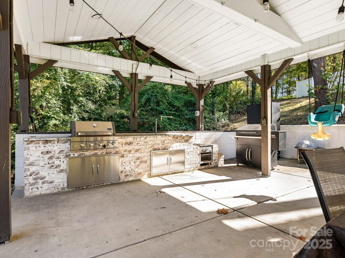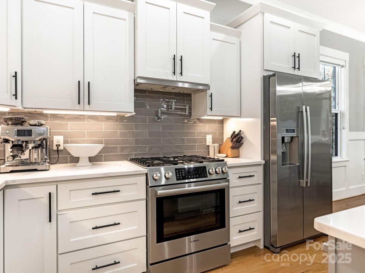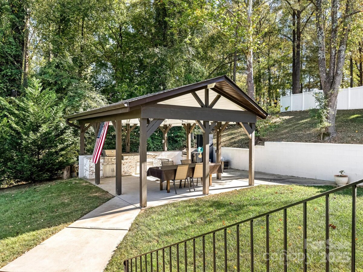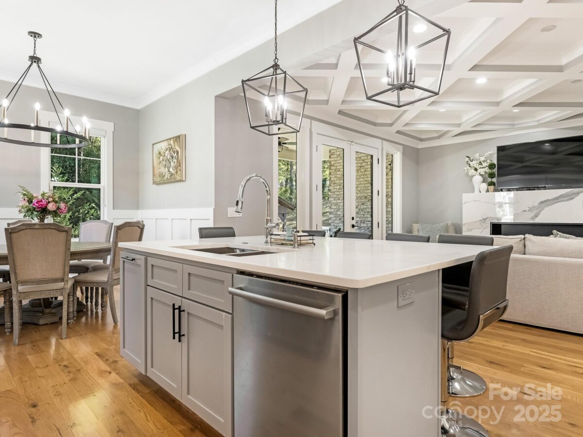 Traditional two-story light brick home combines classic architecture with modern open living spaces, enhancing natural light and creating an inviting atmosphere perfect for daily life and entertaining. The great room features a coffered ceiling, a Gas fuel fireplace with a marble-like porcelain surround, and access to the covered back porch overlooking the private backyard. The bright, open kitchen boasts an oversized seated quartz island with pendant lighting, under-cabinet lighting, Bosch stainless steel appliances, GE microwave, a dual-fuel range (gas cooktop and electric oven), a stainless pot-filler, quartz countertops, a light gray subway tile backsplash, and white cabinets with ample storage. The home includes two primary bedrooms plus two additional bedrooms and a bonus/bedroom. It has 4.5 bathrooms. White oak hardwood flooring runs throughout, complemented by modern lighting, quartz countertops and vanities, and marble tiles in the bathrooms. The rear of the home features two covered porches with ceiling fans and a gazebo with a brick-built-in gas grill and Bunsen burner, stainless steel built-in storage cabinets, and plenty of space for outdoor seating and dining furniture. The private backyard, with mature landscaping, is a great place to entertain or watch the deer and other wildlife. Tankless Water Heater, Gas furnace, Central Air, Trane Smart thermostat, Sealed crawlspace.