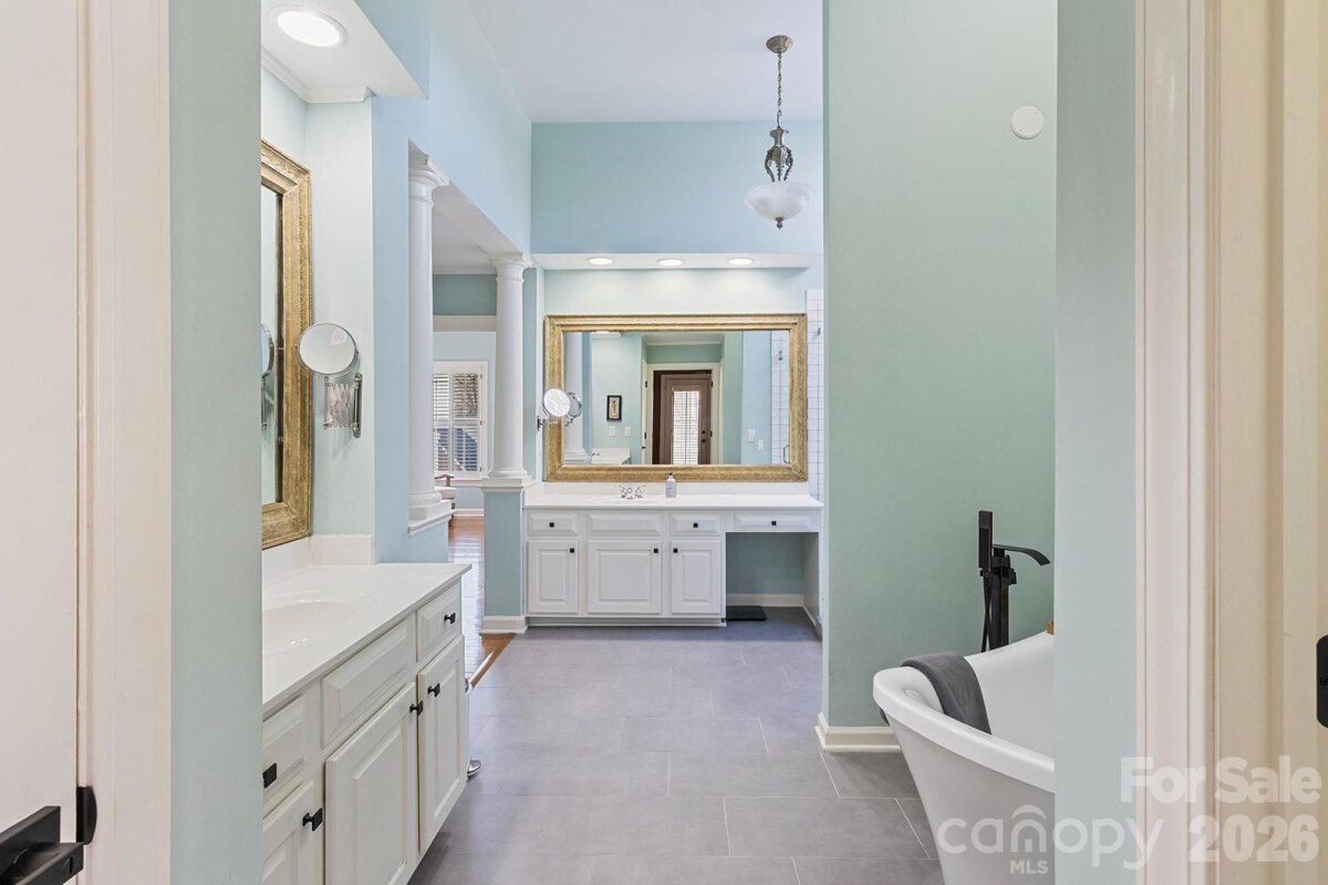 Located in the sought-after Deerfield Creek neighborhood, this stately three-story Wieland full-brick home offers a bright, open floor plan ideal for both entertaining and everyday family living. The beautiful white kitchen features new double ovens and a dishwasher and opens seamlessly to the two-story great room. Flooded with natural light from a wall of windows, the family room connects to a side screened porch and an EZ-Breeze patio with heaters, plus a paver patio and fenced backyard—perfect for year-round outdoor living. A formal dining room and living room provide flexible spaces to fit a variety of lifestyles. The spacious primary suite includes a recently renovated bathroom with dual vanities and multiple closets. Tucked just beyond the primary suite is a private office with its own balcony overlooking the backyard—an ideal work-from-home retreat. Three additional bedrooms—one with an en suite—plus two Jack-and-Jill bathrooms and a convenient second-floor laundry room complete the second level. The third-floor bonus room, featuring all-new carpet, provides the perfect hangout space along with abundant additional storage. Located in a top-rated school district and just minutes from shopping and dining at Waverly and Rea Farms, with easy access to I-485, this home truly has it all. Enjoy outstanding neighborhood amenities including a pool and cabana, tennis courts, soccer and basketball fields, a playground, and scenic walking trails.