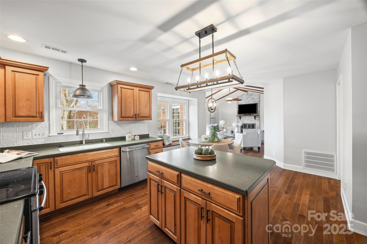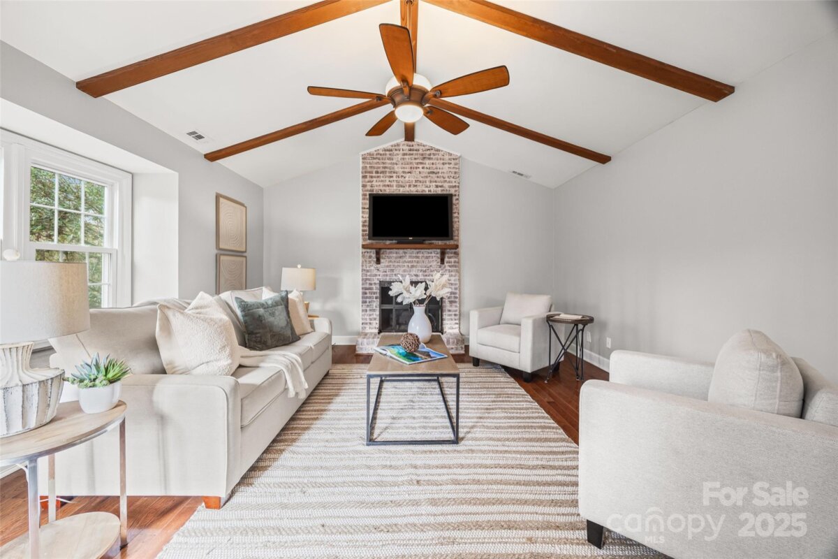 From the moment you arrive, this charming full-brick home feels welcoming & timeless. Located on over a 1/4 acre in one of Matthews’ most established & sought-after neighborhoods, it’s the kind of place where neighbors know each other & people love to stay. Hardwood floors flow thru-out the main level, connecting dining room, two comfortable living spaces designed for both everyday living and easy entertaining. The vaulted great room, highlighted by exposed beams, floor to ceiling brick fireplace and natural light, adds warmth & character and opens seamlessly to the kitchen—making gatherings feel effortless and inviting. The kitchen is the heart of the home, featuring beautiful maple cabinets, a center island, a cozy window seat, and a large picture window overlooking the private, fenced backyard. It’s easy to imagine slow mornings with coffee, homework at the island, or hosting friends and family. All four bedrooms are conveniently located upstairs. The renovated primary suite is a true retreat with a vaulted ceiling, wood-look floors, and an updated spa bath complete with a soaking tub, oversized walk-in shower, and double furniture-style vanity—perfect for unwinding at the end of the day. The spacious fourth bedroom also works beautifully as a bonus room, offering vaulted ceilings and a large walk-in closet, ideal for a playroom, home office, or guest space. Fresh, crisp white paint and new carpet throughout make the home feel bright, clean, and move-in ready. Additional baths have also been tastefully updated. Outside, the deck provides the perfect spot for grilling, relaxing, or enjoying the privacy of the generous backyard—plenty of room for pets, play, and outdoor living. Don't miss the storage shed outback that provides plenty of space for your stuff so your garage can be used for vehicles. This home blends charm, space, and location in a way that’s hard to find and even harder to leave. Location is SO convenient just minutes to I-485 (with new exit opening), Squirrel lake park/Greenway, and all that Matthews has to offer - restaurants, quaint shops, pubs, breweries, library, festivals, and farmers market. Great news - Home has been inspected and repairs including structural repairs to crawl space are complete along with permits and structural engineer report.
