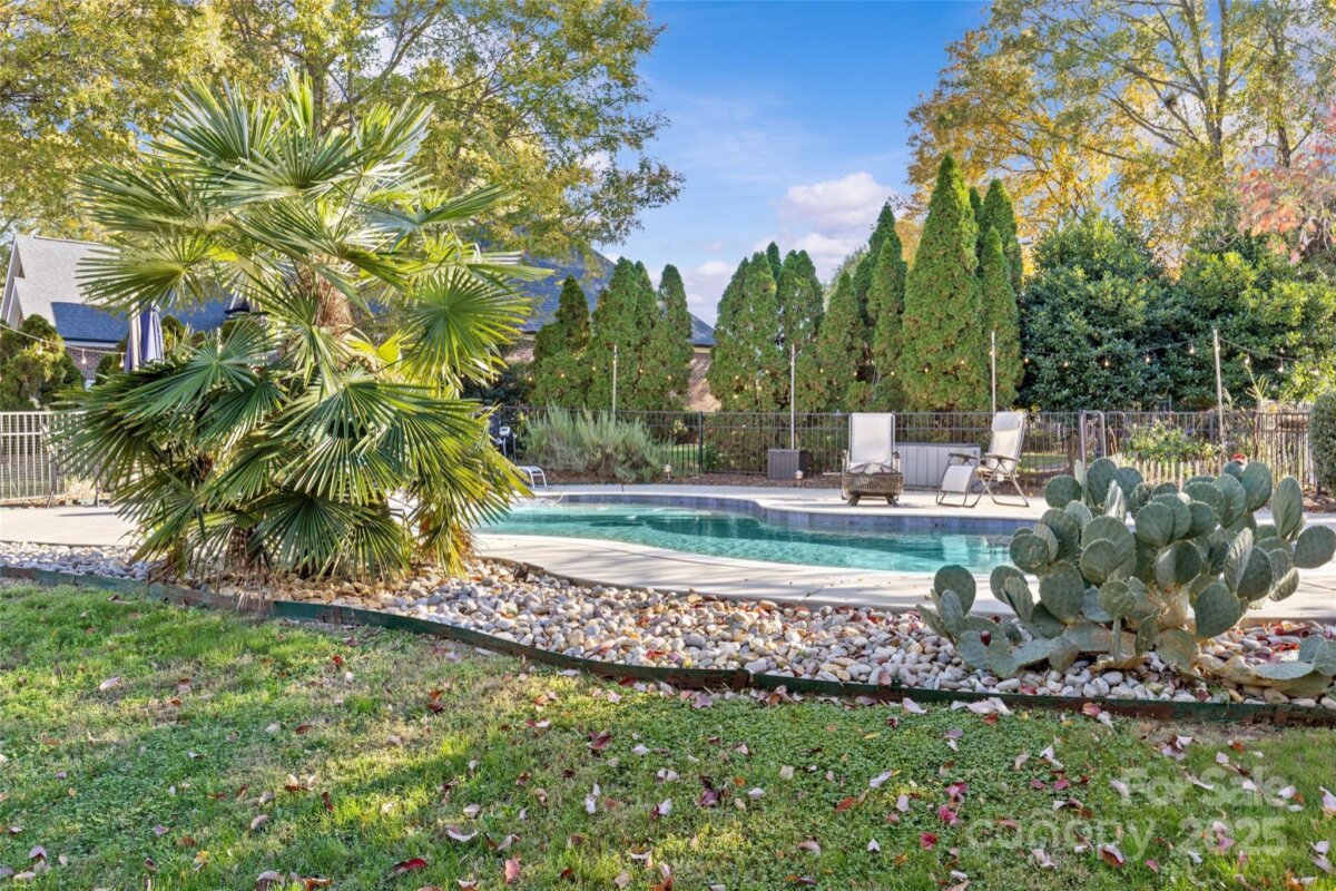 Stunning full-brick 5 BR / 5 BA home in desirable Emerald Lake Golf Community! One of the few homes in the neighborhood with a private pool, this property offers flexible living, timeless design, and resort-style outdoor space. The foyer opens to a spacious two-story living room featuring soaring ceilings and a grand open staircase that creates a dramatic first impression. A secondary staircase near the service area adds convenient access between floors. The main level includes a private study, guest suite with private bath, and a powder room for guests. The open layout connects formal dining, kitchen, and family areas—ideal for entertaining. Upstairs, a bedroom, bath, and bonus room have been transformed into a complete in-law suite / second living area with kitchenette—perfect for multi-generational living or extended stays. The primary suite includes two walk-in closets, a sitting area, and a luxurious bath with dual vanities and soaking tub. Two additional bedrooms share a full hall bath. Outdoors, enjoy your private pool (2019), surrounded by a large deck, covered porch, and lush landscaping with accent lighting. Major improvements include roof (2021), two HVAC units (2018), and new sod and landscaping (2022). Located minutes from Matthews, Mint Hill, and Stallings, this home offers easy access to I-485, with shopping and dining nearby at Union Commons, Sycamore Commons, and Sun Valley. Close to Crooked Creek and Beatty Parks, and part of the peaceful Emerald Lake Golf neighborhood—this home delivers the best in space, setting, and style!