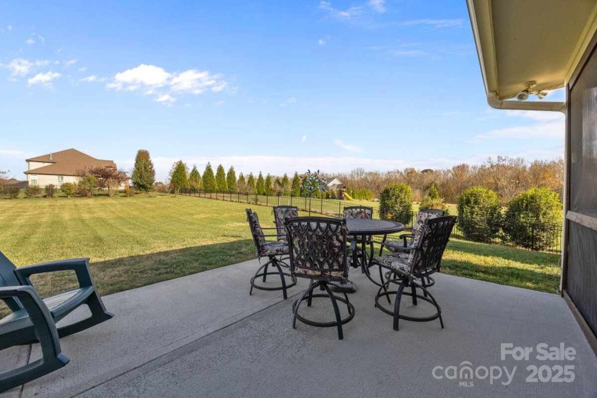 Welcome to this beautifully maintained, energy-efficient Meritage home nestled in the highly desirable Village of Wesley Chapel, an area known for its top-rated schools and peaceful, established community feel. Sitting on a generous 0.92-acre lot, this 4-bedroom, 3-bath home offers over 3,000 sq ft of comfortable living space all on one-level, a thoughtful split bedroom floorplan, and inviting indoor and outdoor areas perfect for everyday living and entertaining. Step inside to find fresh, neutral paint, newly installed carpet (2025), and abundant natural light throughout. The spacious primary suite features a double-tray ceiling, a large walk-in closet, and an ensuite with separate vanities, a garden tub, and a walk-in shower. A second bedroom sits near a full hall bath with a tub/shower combo - ideal for guests or a home office. Two additional bedrooms on the other side of the home share a bath with wider doorways and a zero-entry shower for comfortable accessibility. You’ll love the flexibility of the formal dining room, a separate living/flex room, and an open great room overlooking the backyard. The bright kitchen offers granite countertops, stainless steel appliances, an induction cooktop, double oven, large center island, and an eat-in breakfast area. Outdoor living shines here! Relax on the screened porch, enjoy gatherings on the extended patio, or take advantage of the fully fenced back yard complete with a storage shed. The entire yard is supported by in-ground irrigation in both the front and back. The home also features a freshly painted hardboard exterior and front door, and a large two-car garage with heavy duty shelving. Major system updates offer added peace of mind: HVAC installed 4/8/2022 (10-year warranty), Water heater installed 11/12/2023 (6-year warranty), and a whole-house water filtration system installed in 2023 (lifetime warranty). Refrigerator, washer, dryer, and window blinds convey, making this truly move-in ready. If you’re looking for space, comfort, thoughtful upgrades, and a beautiful setting - this is the one. Schedule your showing today and discover all the charm this Wesley Chapel gem has to offer!