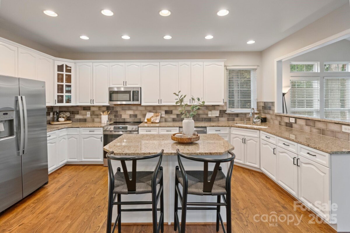 Welcome to 3213 Strawberry Road — an exceptional home offering the perfect blend of space, style, and location! Featuring five spacious bedrooms and two inviting sunrooms, this beautifully maintained property provides an abundance of natural light and flexible living options for modern lifestyles. The updated kitchen shines with white cabinetry, brand-new stainless steel appliances (August 2025), and plenty of counter space for cooking and entertaining. Recent upgrades include two new HVAC systems (installed August 2025) for year-round comfort and peace of mind, plus refinished oak hardwood floors (August 2025), and new light fixtures throughout the main level and primary bathroom (August 2025). Nestled in one of Union County’s most desirable pockets, this home offers the best of both worlds — low Union County taxes while being as close to Charlotte as you can get! Enjoy top-rated schools including Antioch Elementary, Weddington Middle, and Weddington High, all renowned for their academic excellence, athletics and community spirit. The location is unbeatable — across the street Colonel Francis Beatty Park (265+ acres) and just minutes from Downtown Matthews, Waverly, and Rea Farms, offering endless shopping, dining, and entertainment options. Whether you’re relaxing in the sunroom, entertaining in the updated kitchen, or enjoying the peaceful setting, this home delivers unmatched comfort and convenience in a highly sought-after area. Don’t miss this incredible Union County opportunity!