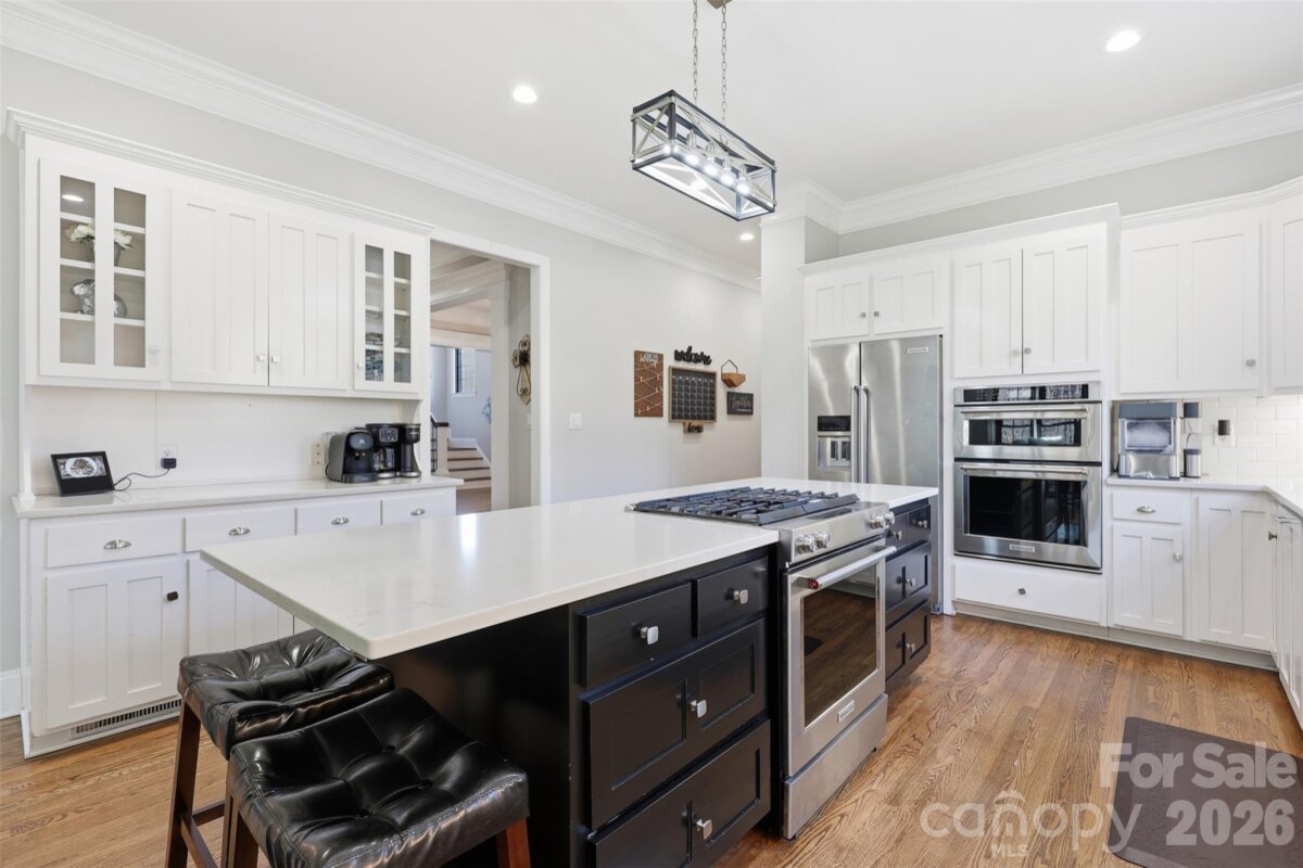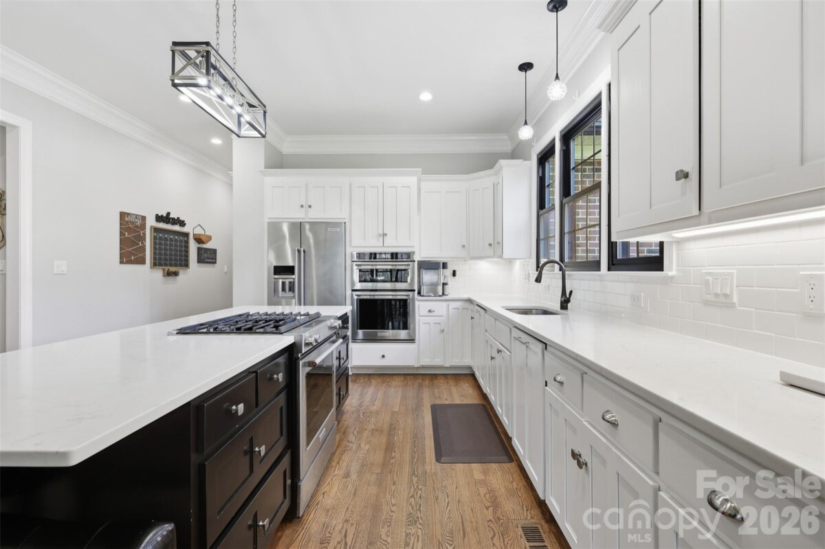 Located in the heart of Weddington, this exceptional home in Weddington Heights sits on a private, flat acre lot backed by mature trees. Just minutes from top-rated Weddington schools and everyday conveniences, this property offers a rare combination of privacy, space, and convenience in a truly premier setting. From the moment you walk through the front door, you’re welcomed by beautifully refinished hardwood floors and a light open entry that sets the tone for the home’s timeless design. The main level features a large formal dining room and two expansive living spaces, ideal for both everyday living and entertaining. One family room offers custom built-ins, while the second sits just off the kitchen and features a fireplace with a shiplap surround — both overlooking the backyard and patio, creating a peaceful, park-like setting. Thoughtful architectural details include a main staircase accented with wrought-iron balusters, along with a discreet secondary staircase providing convenient access directly to the kitchen. The oversized kitchen is truly the heart of the home, featuring quartz countertops, a large island, subway tile backsplash, two dishwashers, multiple ovens, stainless steel appliances, abundant cabinetry, and a huge walk-in pantry. Recessed lighting has been added throughout, enhancing the bright, open feel. The spacious main-level primary suite offers a private retreat with a beautifully remodeled bathroom and an impressive walk-in closet. Upstairs, you’ll find three oversized bedroom suites, each offering generous closet space, along with an exceptionally large bonus room providing endless flexibility for a media room, playroom, or home office. A separate bonus room with a closet offers the option for a true fifth bedroom, making it ideal for guests, a teen suite, or an in-law space. An enormous walk-in storage room adds even more functionality. With just under 5,000 square feet, five bedrooms, and four-and-a-half baths, this home provides exceptional space for both everyday living and entertaining. Outdoor living is equally impressive, featuring a cedar-accented covered screened patio, a custom paver patio, and a fire pit, all overlooking a gorgeous backyard framed by mature trees with plenty of space to add a pool. A full irrigation system, three-car garage, and brand-new windows throughout complete this thoughtfully upgraded home. Conveniently located just 3–4 minutes from Wesley Chapel shopping, dining, and everyday essentials including Target, this property truly offers the best of Weddington living.