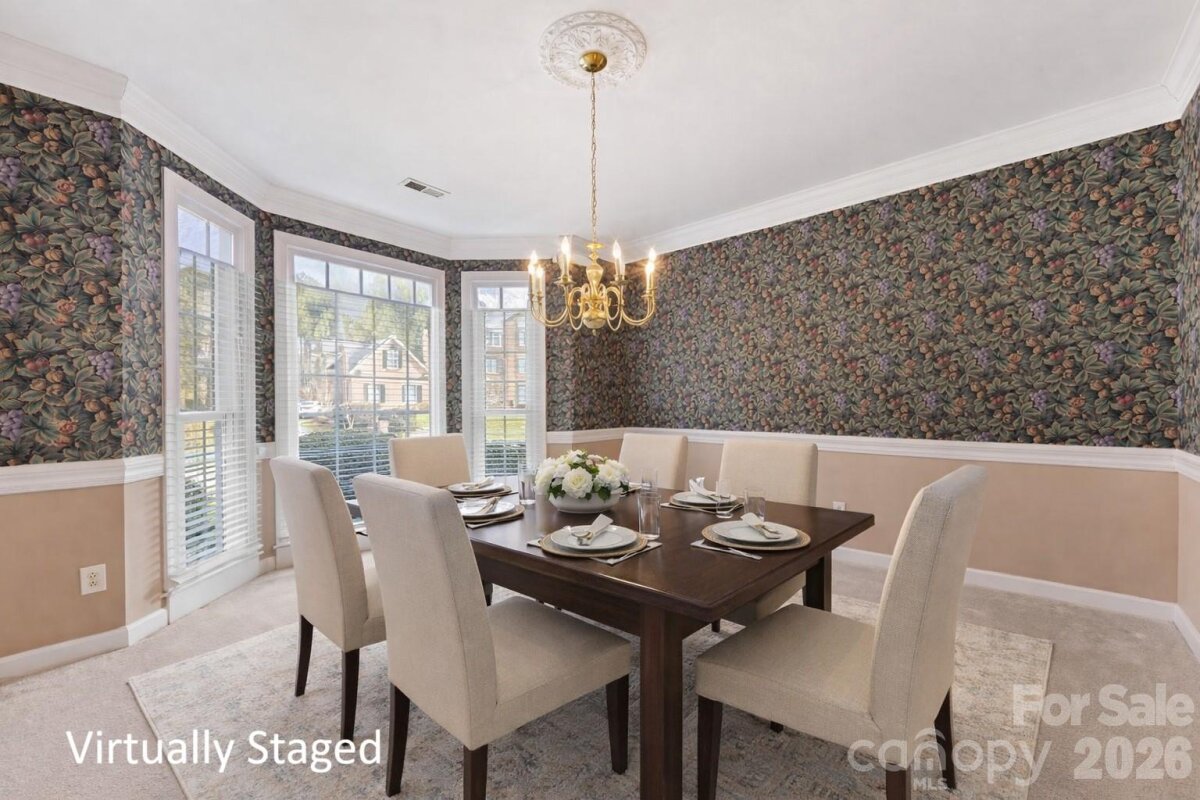 Welcome to 425 Clairview Lane, a stunning brick residence situated on a prime corner lot on a cul de sac in the heart of Matthews! From the moment you step into the soaring two-story foyer, you’ll notice the abundant natural light coming through the brand-new Apex triple-paned windows (2025). The main level is designed for effortless living. A primary suite on the main serves as a private sanctuary, boasting cathedral ceilings and a spa-like bath featuring an oversized shower, quartz counters, and modern finishes. Entertain with ease in the renovated kitchen, equipped with GE stainless steel appliances (2022/2024), granite countertops, and a central island. Whether you’re working in the home office space off the foyer, hosting in the bay-windowed dining room or relaxing in the fireside family room, this home feels both grand and cozy. Upstairs, discover three spacious bedrooms and a massive bonus room, perfect for a home theater, gym, or hobby space. The 2-car garage with insulated doors provides added storage space while both a screened porch and deck overlook the pristine yard. Outside, you can also enjoy the amenities of Sardis Plantation, including walking trails, tennis/pickleball courts, and a playground, all while being minutes from the charm of downtown Matthews and all it offers! This home in an ideal location off Highway 51, zoned for top schools and near many area private schools also has a 2-10 Home Warranty in place!