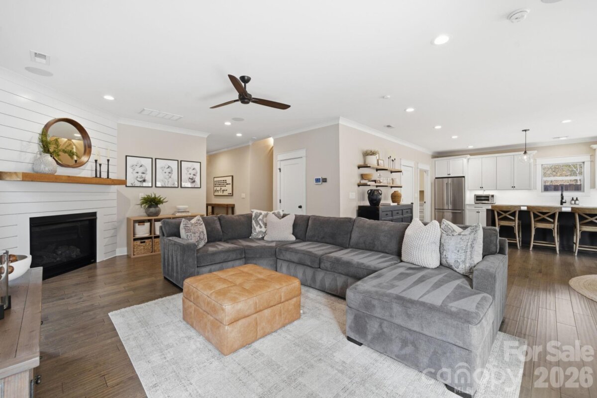 Updated and thoughtfully enhanced modern farmhouse-style home offering 4 bedrooms, 4.5 baths, and approx. 3,021 sq ft with a bright, open layout designed for everyday living and easy entertaining. The main level welcomes you with wide-plank flooring, a private office, and a dining room accented by custom board-and-batten added in 2023, flowing seamlessly into a spacious living room with gas fireplace and custom shelving. The kitchen anchors the home with a large island, walk-in pantry, gas range, stainless appliances, and additional custom shelving added in 2023 for both style and function. Step outside to a covered porch overlooking a fenced backyard where large obstructing trees were removed in 2020, new sod installed, and a paver patio added to create a usable outdoor living space, while the fence was also stained for durability and curb appeal. Upstairs features a generous loft, secondary bedrooms with well-appointed baths, and a serene primary suite with tray ceiling, spa-inspired bath including soaking tub, glass-enclosed shower, dual vanities, and walk-in closet. Exterior improvements include new rock landscaping installed in 2021 replacing mulch, full exterior repaint in 2022, and upgraded front pillars converted to stained exposed beams, enhancing the home’s modern farmhouse character. Additional highlights include main-level laundry, attached two-car garage, surround sound wiring, and added attic insulation in 2025 for improved efficiency, reflecting years of intentional updates that elevate both comfort and style.