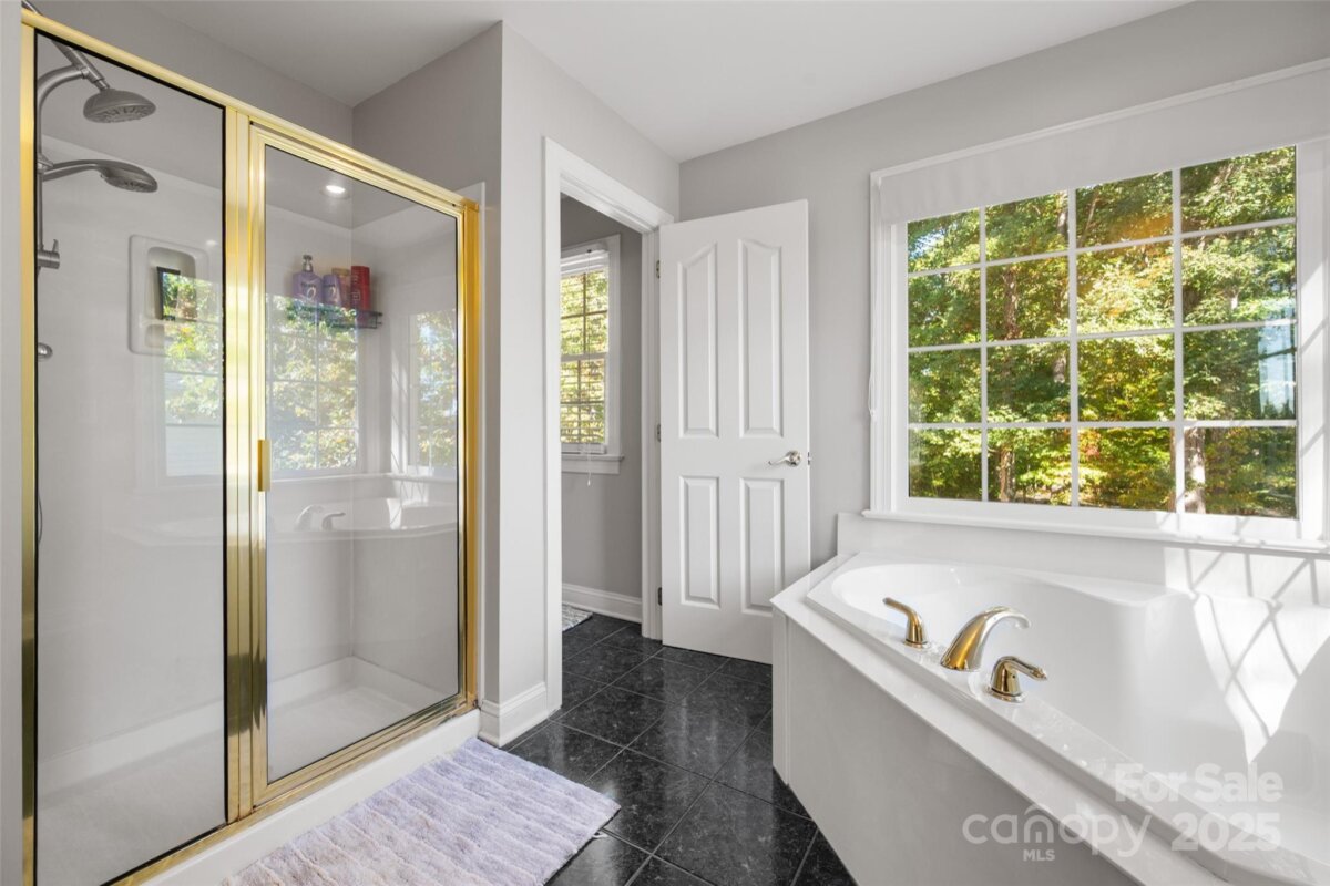 This elegant residence welcomes you with an impressive open floor plan and thoughtful architectural details, blending comfort and sophistication. The heart of the home is bright and spacious, with neutral gray walls and striking hardwood floors featuring a refined inlaid border, infusing character while maintaining a modern aesthetic. Upon entering, a dramatic foyer with soaring ceilings, expansive windows, and decorative alcoves sets the tone for the entire home to be airy. Natural light streams in, highlighting the staircase’s classic design of white balusters and oak rails that sweep gracefully to the upper level. Architectural columns and symmetry in the main living space create a stately, inviting atmosphere. The living room offers a tranquil retreat centered around a beautiful fireplace, flanked by tall windows that frame serene views of the surrounding landscape. White wainscoting and crown molding add distinction, balancing traditional craftsmanship with contemporary appeal. This area seamlessly transitions into both formal and informal dining spaces, making it perfect for entertaining or everyday family gatherings. A chef-inspired kitchen stands as the home’s functional focal point, equipped with ample cabinetry in soft gray tones, expansive granite countertops, and top-of-the-line stainless steel appliances. The central island provides generous workspace and storage, ideal for both culinary creativity and casual seating. Sunlit breakfast and dining areas increase versatility, and glass doors offer easy access to outdoor spaces. Throughout the main level, the transition between rooms is smooth and open, utilizing floor-to-ceiling windows and consistent trim details to achieve a cohesive look. Softer shades keep the entire home light and welcoming, while crisp white woodwork adds subtle elegance to every room. Approximately 500 square feet of unfinished attic space, offering tremendous potential for storage, future expansion, or creative use. The attic is easily accessible and ready for customization—whether as a dedicated studio, playroom, home office, or deluxe storage area. Its unfinished status means you can tailor the space to your specific needs and vision, adding significant value and flexibility to the property.