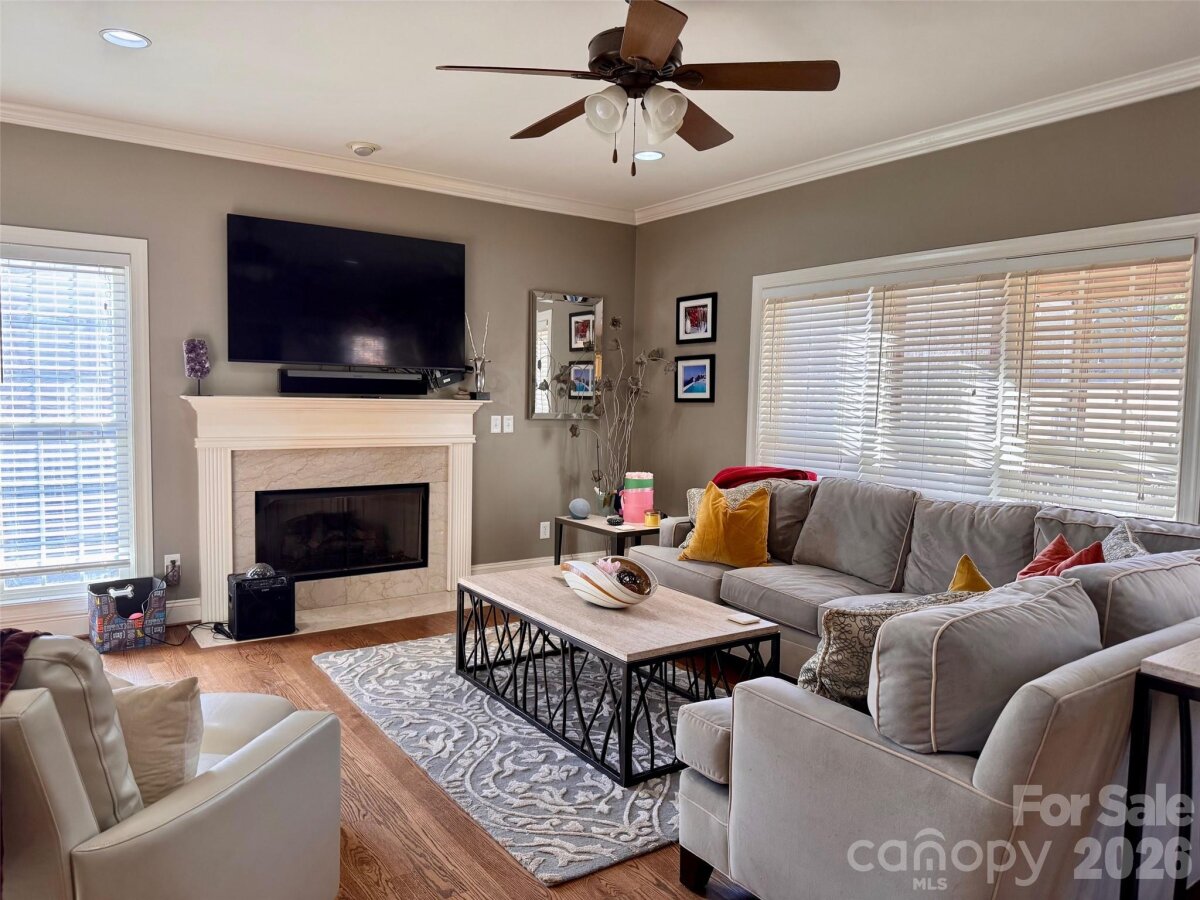 This elegant residence welcomes you with an impressive open floor plan, blending style, comfort and functionality. Upon entering, you will be met with a dramatic foyer with soaring ceilings, expansive windows, and classic architectural details.The heart of the home is bright and spacious, with neutral gray walls and gorgeous red oak hardwood floors throughout the main level, with the exception of the main level bedroom. The chef’s kitchen has granite, SS appliances, custom cabinetry, including a spacious breakfast area with a bay window that overlooks the golf course. The family room is well fenestrated offering lots of natural light, featuring a gas log fireplace. The family room opens to a screened-in porch which leads to a patio for your entertaining in the fenced-in backyard that sits on the golf course. White wainscoting and heavy crown molding add distinction throughout this home, balancing traditional craftsmanship with contemporary appeal. Upstairs you will find 4 bedrooms ensuring everyone has their own space. The generously sized primary suite is complete with a Jacuzzi soaking tub, separate shower & walk-in closet that leads to a spacious storage area. The secondary jack and jill bathroom features dual vanities along with a dual-head shower w/handheld wand. Just in case you need more space, there is a second large storage area for all your items off of BR 5. SMART home with Ring cameras and dual Nest thermostats. In-ground sprinkler system. New Roof 12/2024. 90-days home warranty provided at closing.
