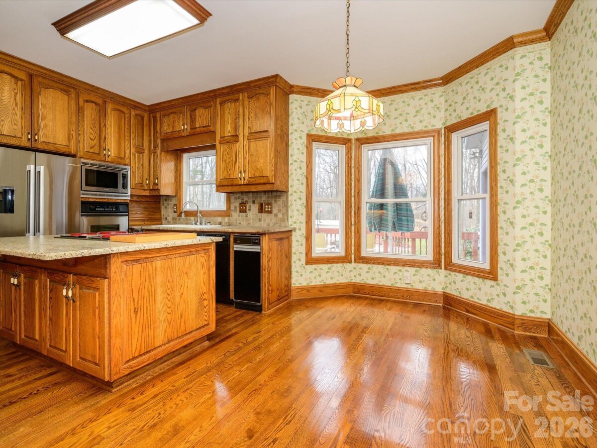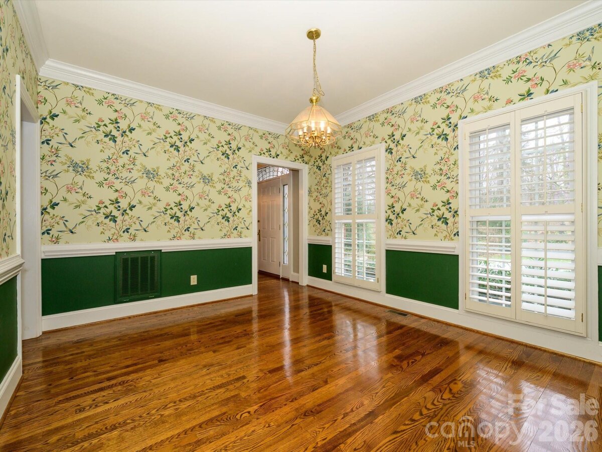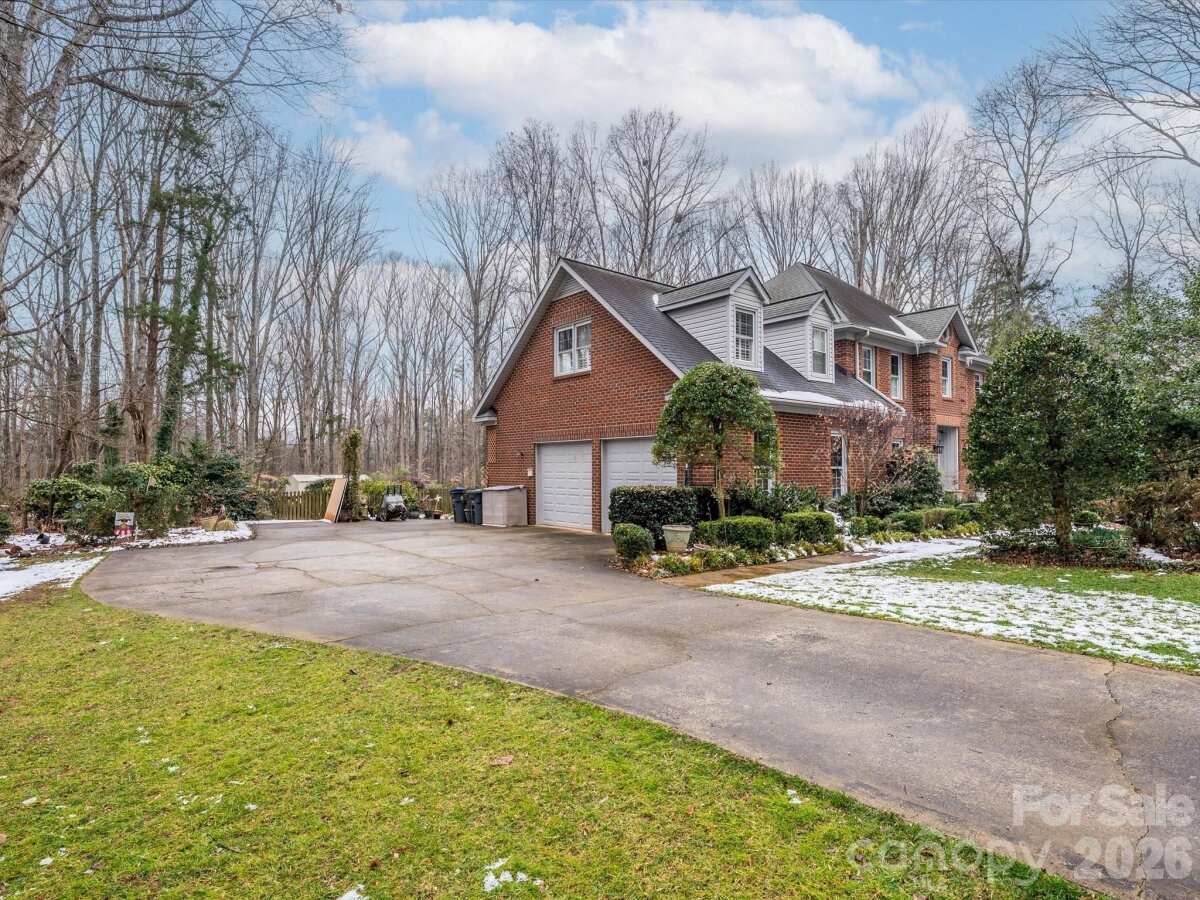 Rare opportunity in Providence Woods South! This classic brick home sits on an expansive 3.75-acre double wooded lot tucked away in a quiet cul-de-sac, offering privacy, space, and endless potential. Priced to sell, this property is a perfect canvas for renovation and customization to suit your own design style. The main level features hardwood floors throughout, formal living and dining rooms with elegant crown molding, and plantation shutters throughout the home. The large eat-in kitchen offers an island, bay window, stainless steel appliances, and two walk-in pantries. The family room includes custom built-ins and a wood-burning fireplace, with a sunroom just off the family room showcasing beautiful views of the wooded lot. Upstairs, you’ll find a spacious primary suite with a walk-in closet and an ensuite bath featuring a vaulted ceiling, oversized whirlpool tub, and separate shower. Three additional bedrooms and a large bonus room—complete with a separate staircase to the first floor—provide flexible living space for a variety of needs. Home is being sold AS IS. A rare chance to create something truly special in a sought-after neighborhood.