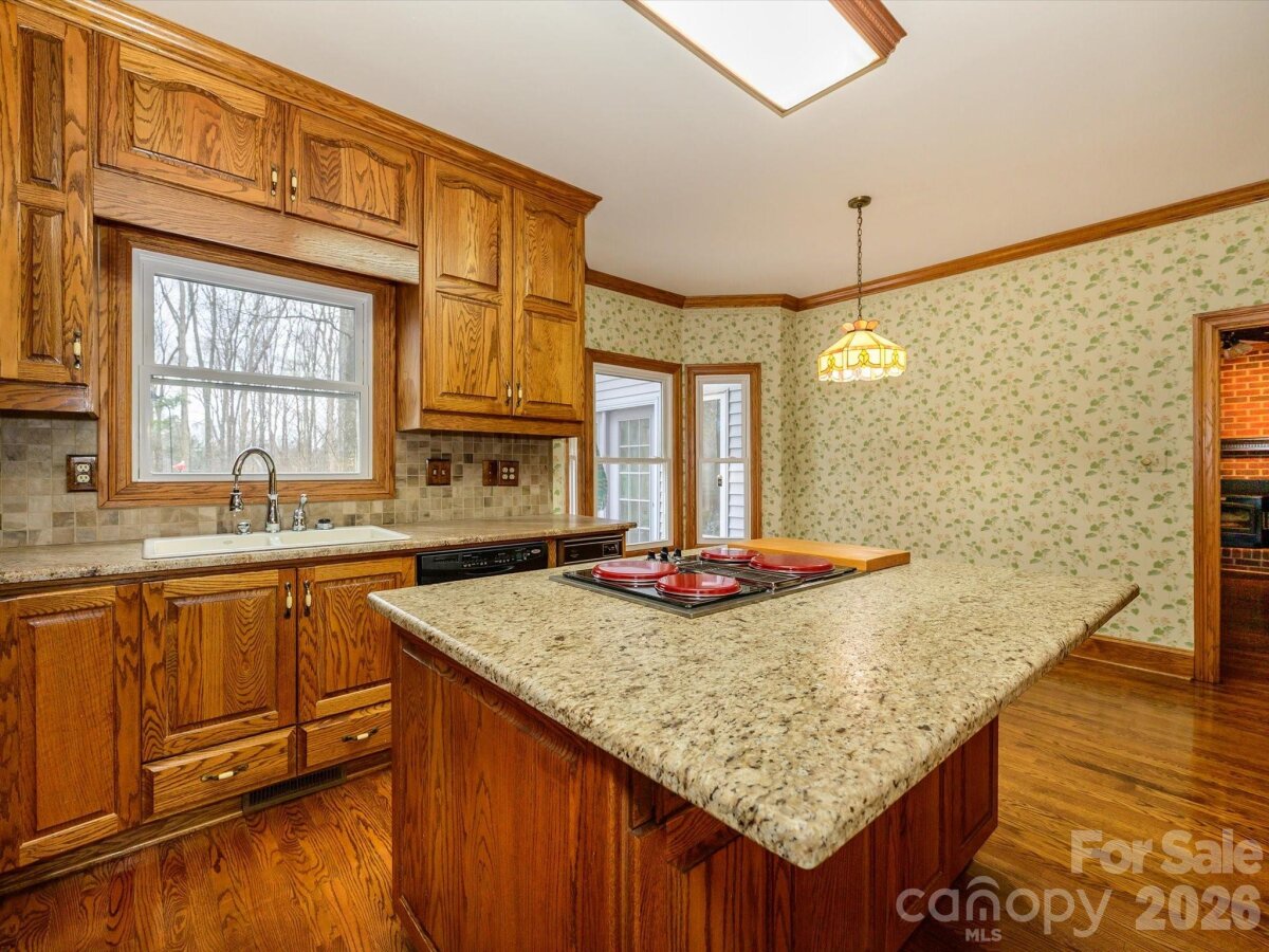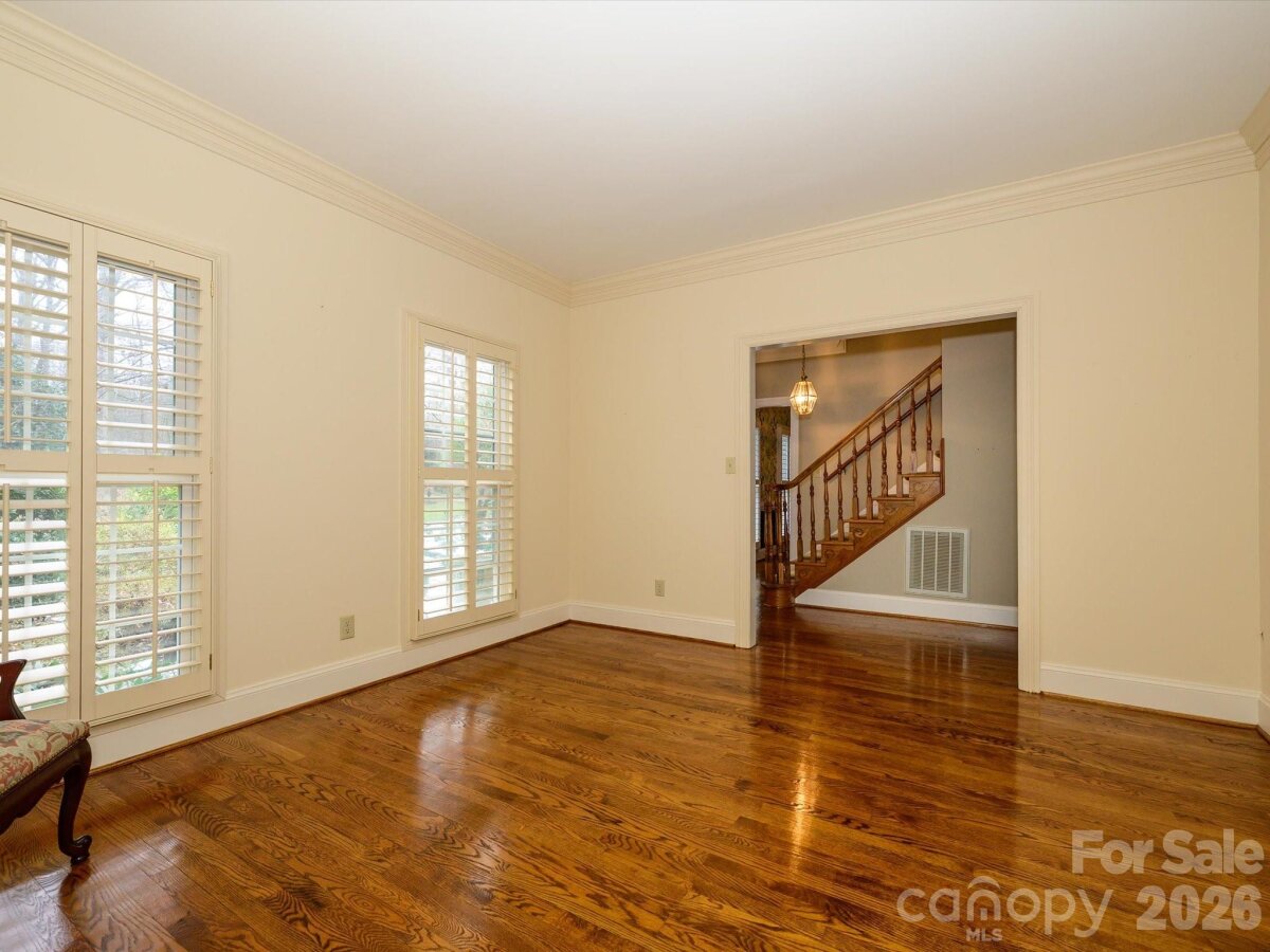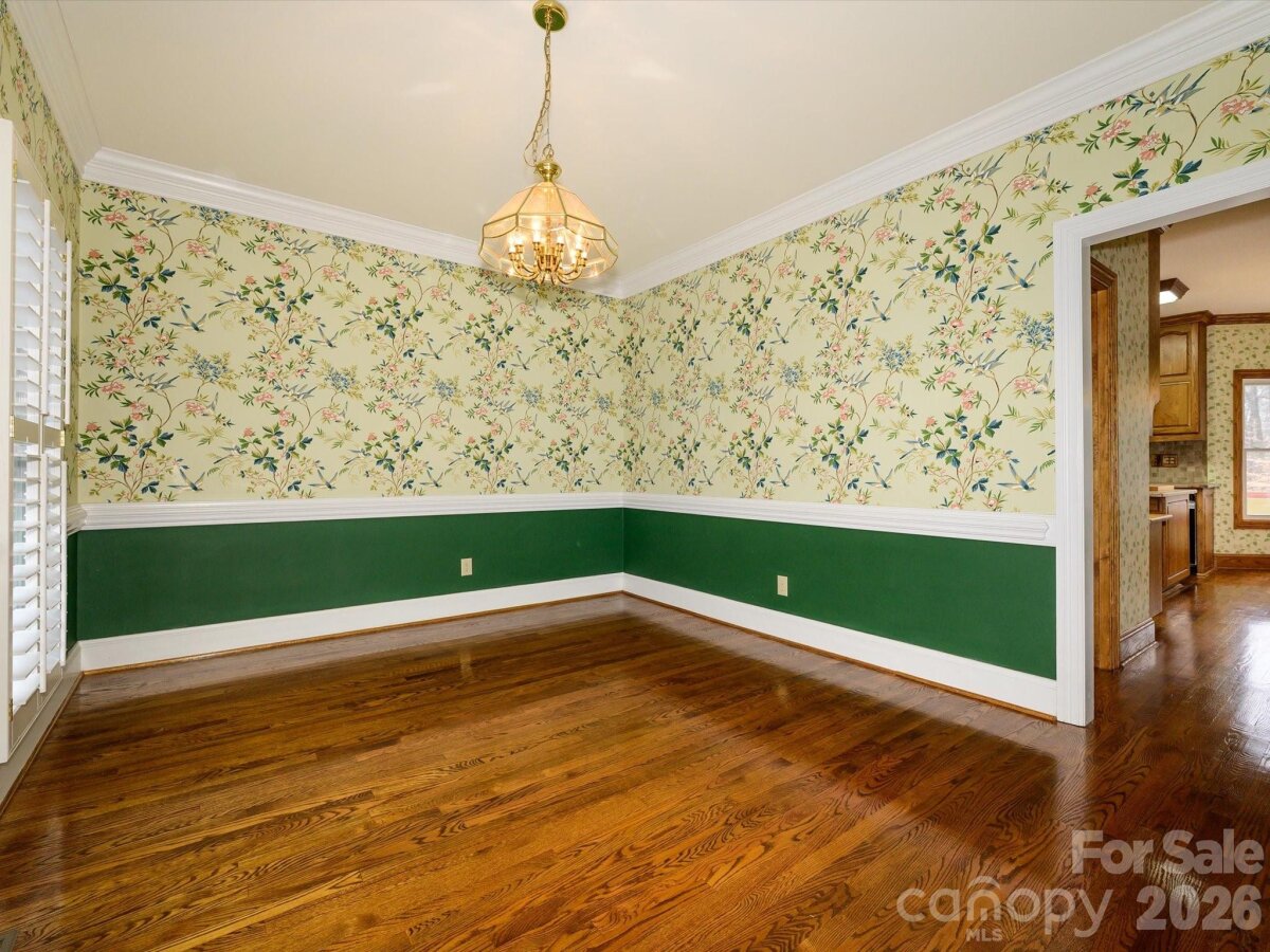 Rare opportunity in Providence Woods South! This classic brick home sits on an expansive 3.75-acre double wooded lot tucked away in a quiet cul-de-sac, offering privacy, space, and endless potential. Priced to sell, this property is a perfect canvas for renovation and customization to suit your own design style. The main level features hardwood floors throughout, formal living and dining rooms with elegant crown molding, and plantation shutters throughout the home. The large eat-in kitchen offers an island, bay window, stainless steel appliances, and two walk-in pantries. The family room includes custom built-ins and a wood-burning fireplace, with a sunroom just off the family room showcasing beautiful views of the wooded lot. Upstairs, you’ll find a spacious primary suite with a walk-in closet and an ensuite bath featuring a vaulted ceiling, oversized whirlpool tub, and separate shower. Three additional bedrooms and a large bonus room—complete with a separate staircase to the first floor—provide flexible living space for a variety of needs. Home is being sold AS IS. A rare chance to create something truly special in a sought-after neighborhood.