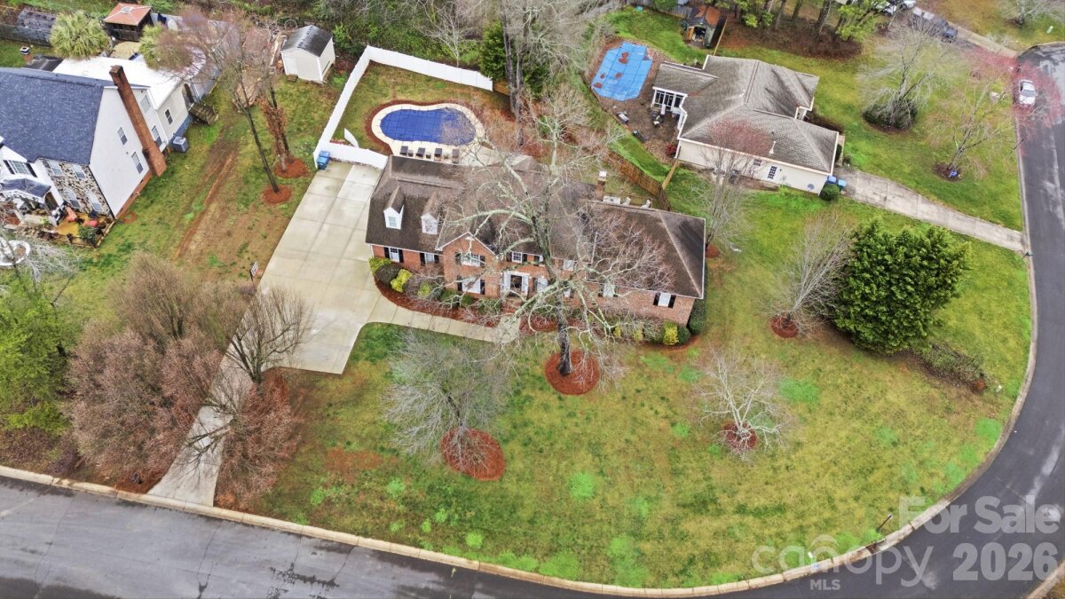 Schedule your showing, today – St. Claire in Mint Hill! Located on a quiet cul-de-sac with no HOA, this unique home offers incredible flexibility, including a fully functional separate living quarters on the main level with an additional private rear entrance. Perfect for multi-generational living or guest space, it includes a living room, full kitchen, remodeled bath, and spacious bedroom. The main home features bamboo flooring, an updated kitchen with granite countertops and stainless steel appliances, and an open living area with a stacked stone fireplace. Formal dining and a dedicated home office are also on the main level. Upstairs you’ll find the primary suite with tray ceiling and remodeled bath featuring a large spa-style shower, plus two additional bedrooms, full bath, and an oversized bonus room. Massive unfinished walk-in attic offers future expansion potential. Recently extended driveway and pool surround enhance the outdoor living space, complete with an in-ground pool ready for summer enjoyment.