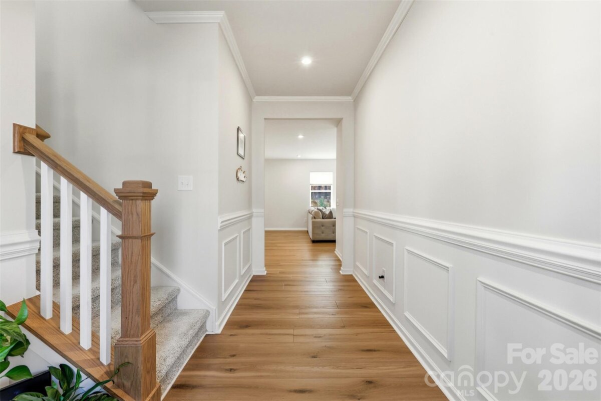 No need to wait for new construction, this like-new full brick home has added ceiling fans, pendant lights, appliances and gutter guards for you! Located in the heart of Mint Hill and still covered under the builder’s structural warranty! Thoughtfully upgraded and move-in ready, it offers the perfect blend of style, function, and peace of mind. The main level features a dedicated office and a show-stopping kitchen complete with a 36" gas cooktop, stainless steel appliances, sleek tile backsplash, quartz countertops, and a spacious walk-in pantry with added under-stair storage. Crown molding throughout adds a polished feel. Step outside to a private 12' x 8' powered screened porch overlooking the trees. Upstairs, a versatile loft provides additional living space alongside three generously sized bedrooms. The upgraded primary suite impresses with a tray ceiling and crown molding, while the spa-inspired bath features an all-tile shower with glass walls. The secondary bath includes an upgraded vanity and tub surround. Enjoy low-maintenance living with a tankless water heater and gutter guards already in place. All appliances, including washer and dryer, convey with the sale. The community offers a scenic pond and recreation area and the location is unbeatable, just minutes from Publix, Harris Teeter, and a variety of dining options. Schedule your showing today!