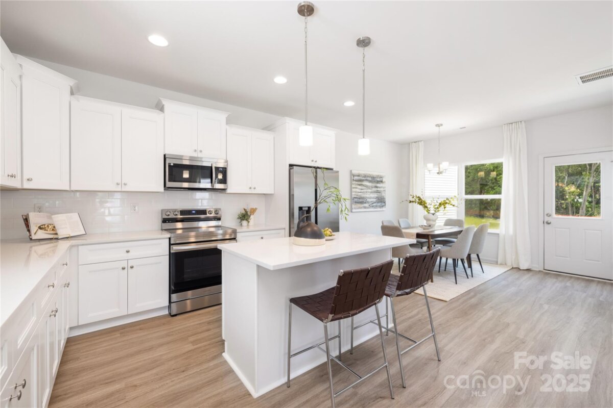 Experience contemporary living in this brand-new two-story residence, perfectly situated on a desirable corner lot on E Glendale Ave in the heart of Mount Holly. This home features a thoughtfully designed floor plan that begins with a bright, open-concept main level where the kitchen, dining, and living areas flow together seamlessly—perfect for daily life and hosting. The modern kitchen is a standout, equipped with sleek cabinetry, stainless steel appliances, and ample counter space for meal prep. Upstairs, you will find a spacious primary suite designed as a private retreat, featuring a generous walk-in closet and a dedicated en-suite bath, alongside two additional bedrooms that offer versatility for guests or a home office. Located in a growing pocket of Mount Holly surrounded by other new construction, this property is just moments from the recreational activities at Ransom Hunter Park and the local dining and farmers market in the charming downtown area. With the Catawba River nearby and quick access to major highways, you can enjoy a small-town atmosphere with an easy commute to Charlotte. Please note that photos reflect a similar floor plan and final finishes may vary.