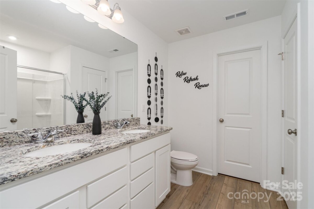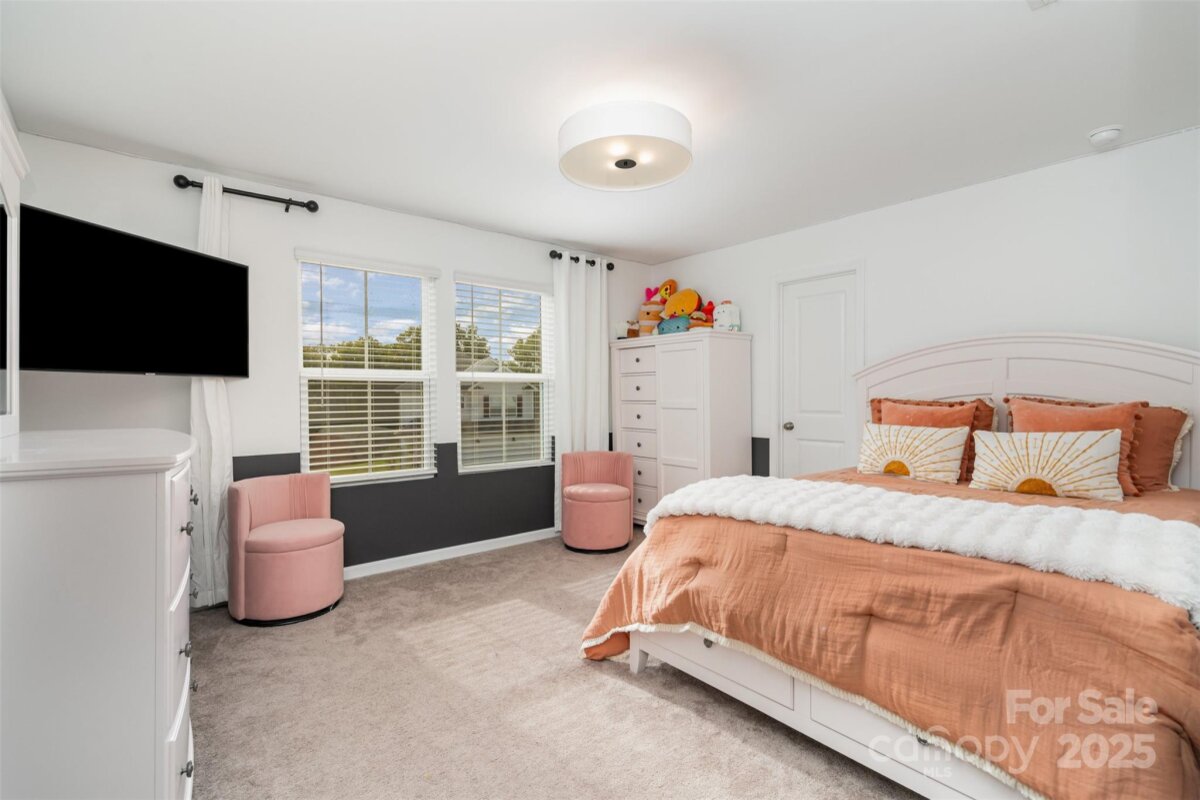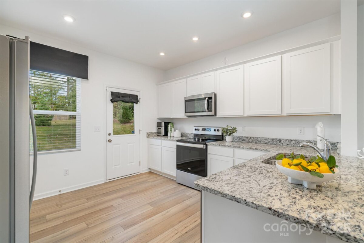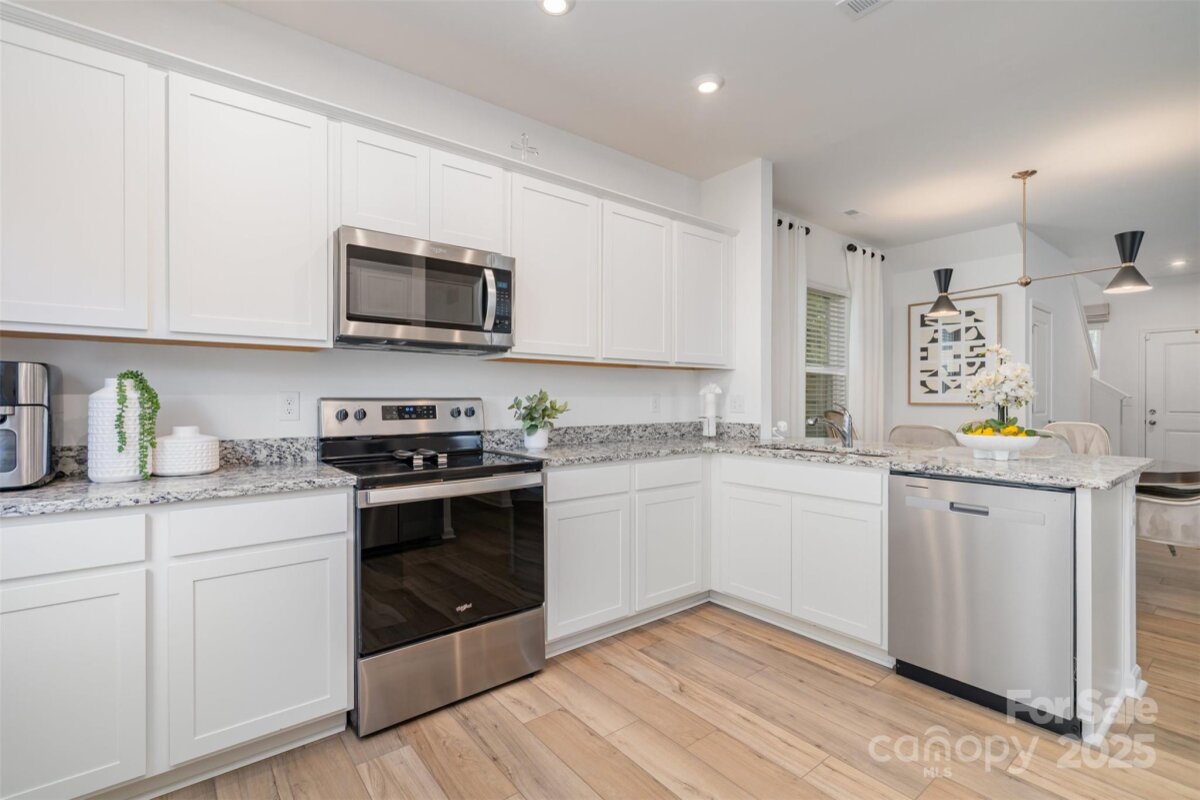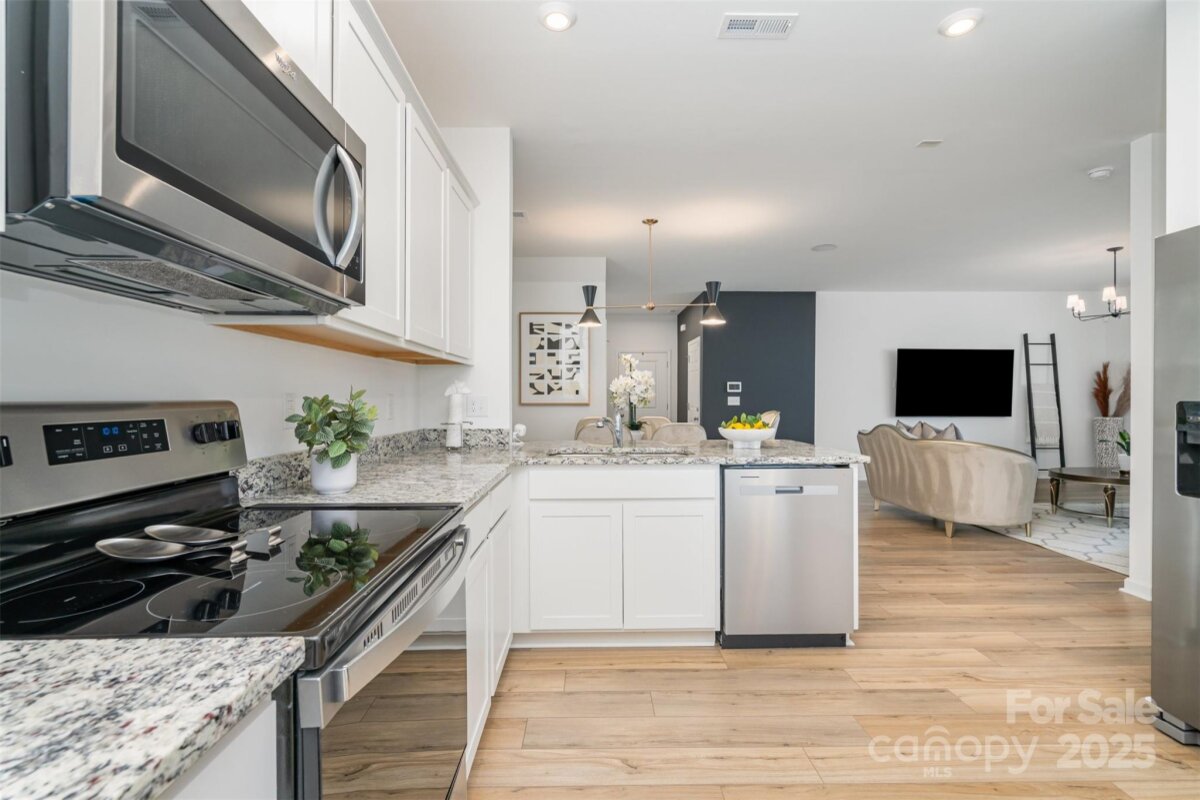 Nearly new former model home! This beautiful 4-bed, 3-bath home offers modern living just minutes from the Whitewater Center, Mountain Island Lake, Charlotte Douglas Airport, and a variety of shopping and dining options. The main level features an open floor plan with a guest bedroom with full bath, a dining area, and a bright kitchen with a spacious island, granite countertops, stainless steel appliances, and an extended bar-top. Upstairs, you’ll find a primary bedroom with a walk-in shower and custom walk-in closet setup, two secondary bedrooms with a shared bathroom, a convenient laundry room, and a large loft ideal for a media space, office, or playroom. Additional highlights include window blinds throughout and HOA-covered high-speed internet and TV service. Still covered under the builder’s structural warranty—this move-in-ready home is a must-see!