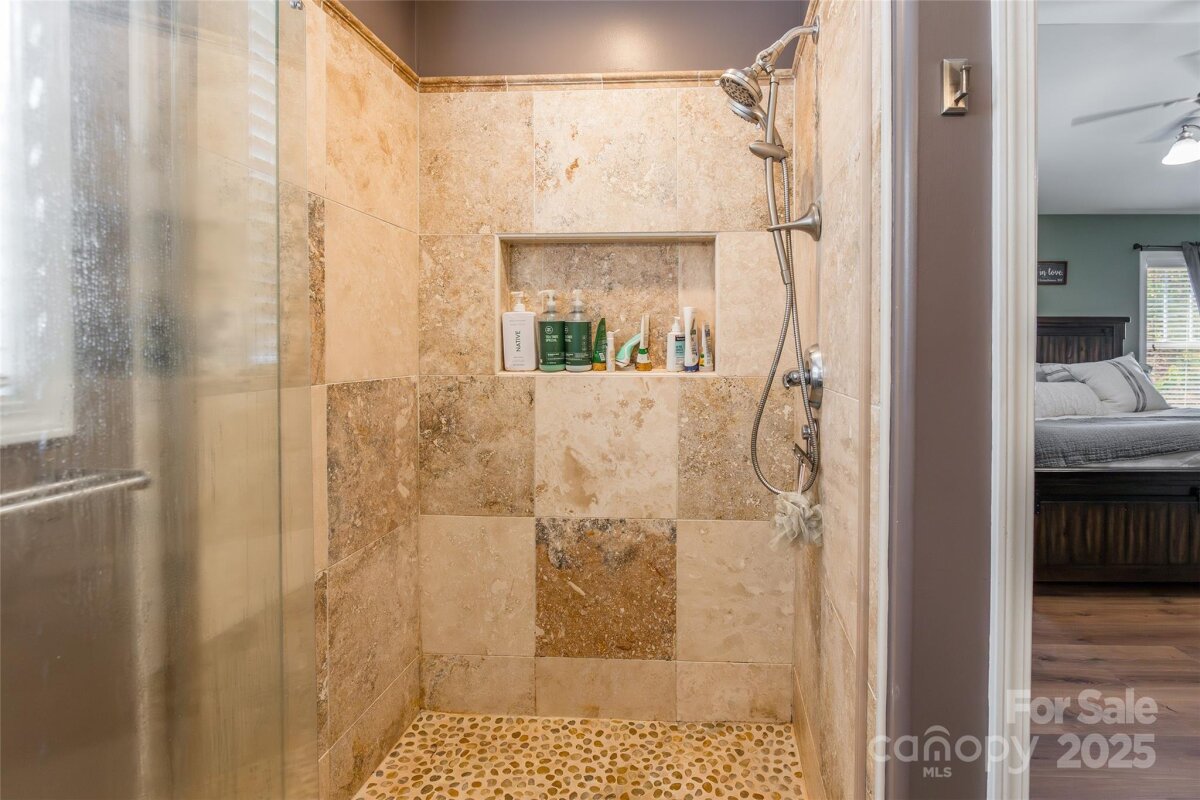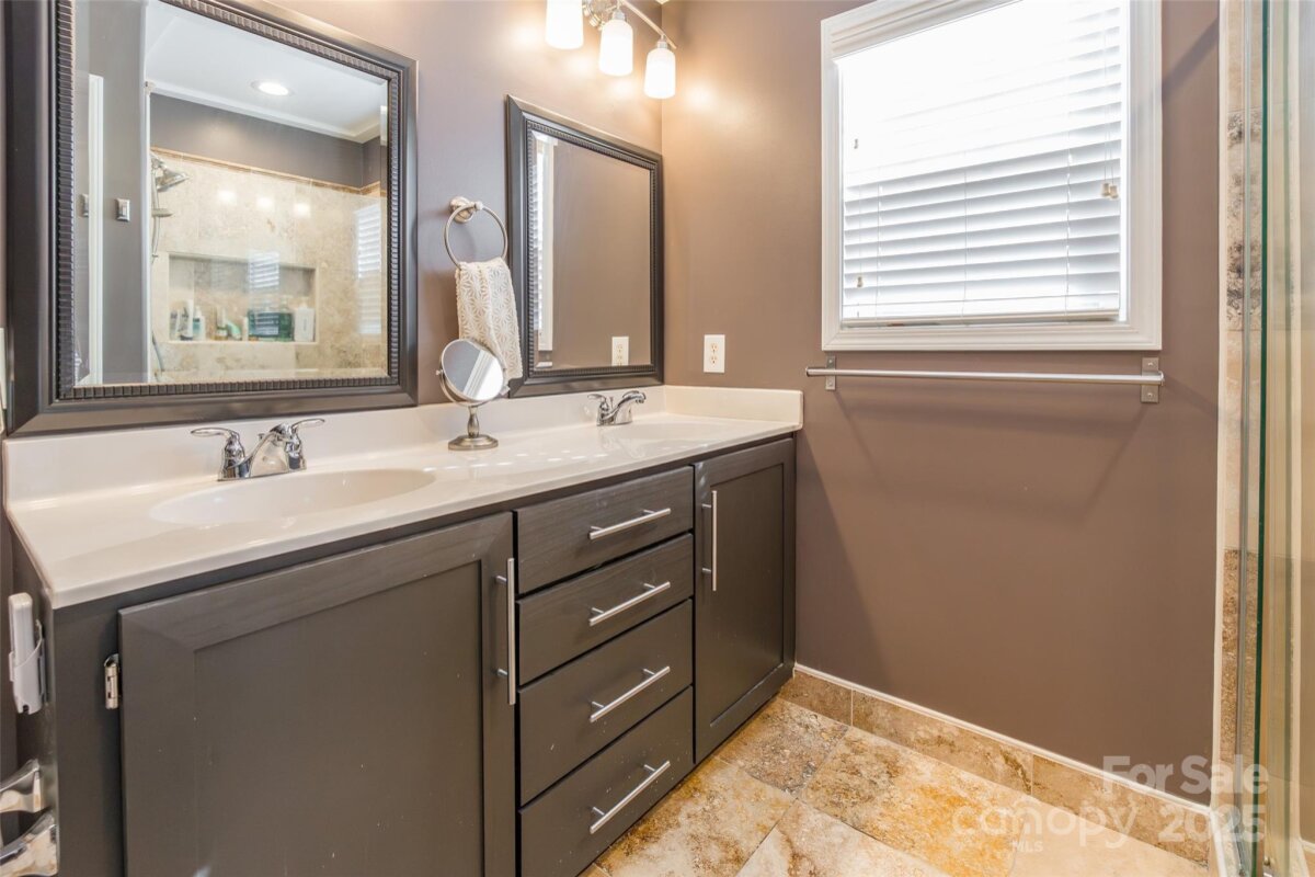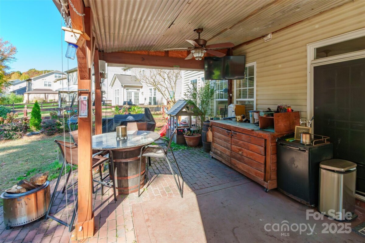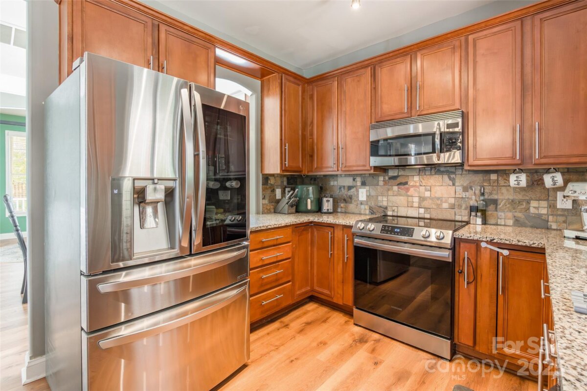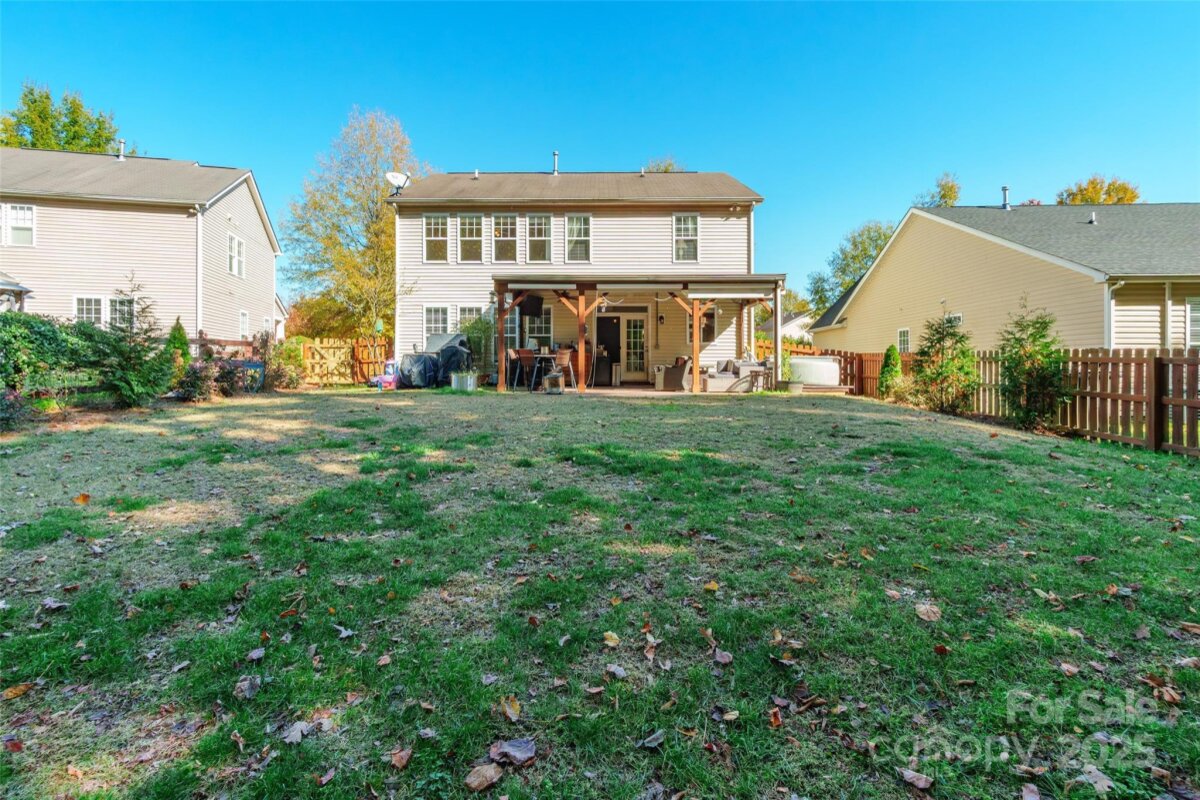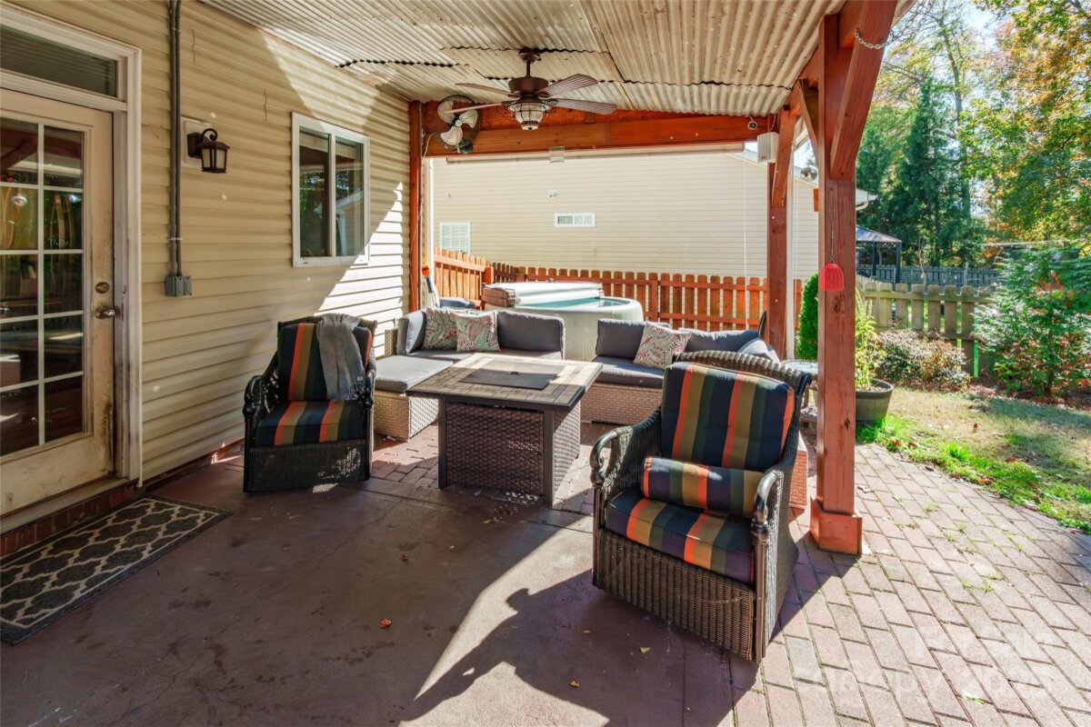 Welcome Home to Riverbend — Where Charm and Character Meet Everyday Comfort. This beautiful 4-bedroom, 2.5-bath home is truly one of a kind, offering warmth, thoughtful details, and character rarely found in today’s homes. From the moment you arrive, you are greeted by a welcoming covered rocking chair front porch. Step inside, you’ll feel the difference — every room has been designed with a touch of craftsmanship and care. This home will captivate you. A private home office with glass sliding barn doors and custom built-ins provides the perfect workspace or cozy retreat. The formal dining room features a charming mini bar area with cabinetry, a granite countertop, and an elegant arched window that opens into the kitchen, creating a seamless and inviting flow for entertaining. The chef’s kitchen impresses with tall birch cabinets, granite countertops, and a island with seating, all overlooking the spacious living room anchored by a gas fireplace — the perfect place to gather and unwind. Step outside to a covered, oversized back patio overlooking a fenced yard and picturesque wooded backdrop — a private oasis ideal for morning coffee or evening relaxation. Upstairs, the attention to detail continues. The primary suite is a serene retreat with a walk-in closet featuring built-ins and an ensuite bath boasting a slate-tiled shower with pebbled flooring and separate garden tub for a spa-like touch. Three additional large bedrooms and an upstairs laundry room with cabinets and a granite folding counter add both function and charm. This home simply feels different — warm, inviting, and full of personality. Set in the sought-after Riverbend neighborhood, it’s a place where every detail tells a story and every space feels like home.