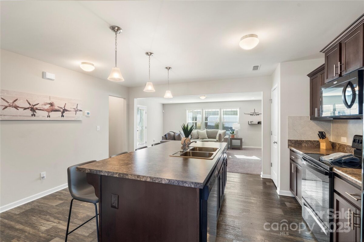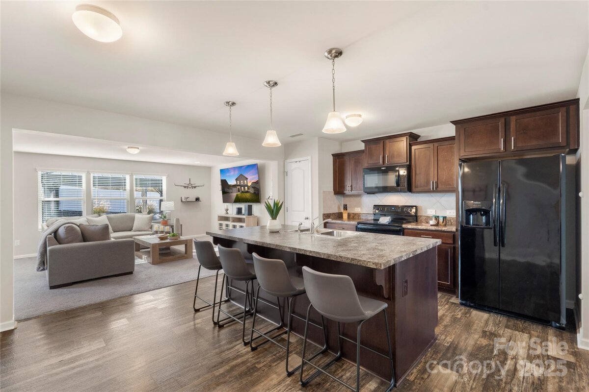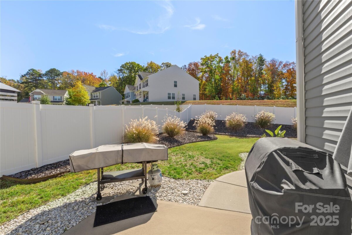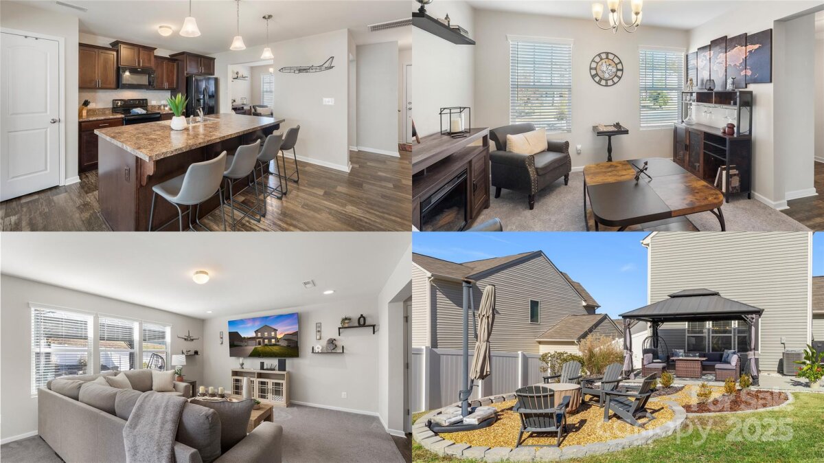 Welcome to this beautifully maintained traditional home offering 3 bedrooms and 2.5 bathrooms. The main level offers a fantastic open floor plan featuring vinyl flooring throughout and a bright, spacious living room filled with natural light from large windows! Flowing into the kitchen which boasts a large central kitchen island with breakfast bar/seating, pendant lighting, a custom backsplash, matching appliances and a dedicated pantry—perfect for both everyday cooking, a quick meal or entertaining. The separate dining room offers a dedicated area for formal settings, or a sit down meal with loved ones. On the upper level, the spacious primary suite includes a large walk-in closet and private bath. The secondary bedrooms are also generously sized and provides ample living, or flex space as needed. The backyard oasis features a fire pit and sitting area, covered gazebo, and a large extended patio—ideal for gatherings and relaxation. The fenced yard provides privacy and plenty of space for play or gardening. A perfect blend of comfort, functionality, and outdoor enjoyment in a desirable neighborhood. Great location close by to Mt Island lake, White Water Center and easy access to I85, I77 and CLT Airport! Tons of shopping, restaurants and entertainment nearby as well, do not miss your opportunity to own this wonderful home!