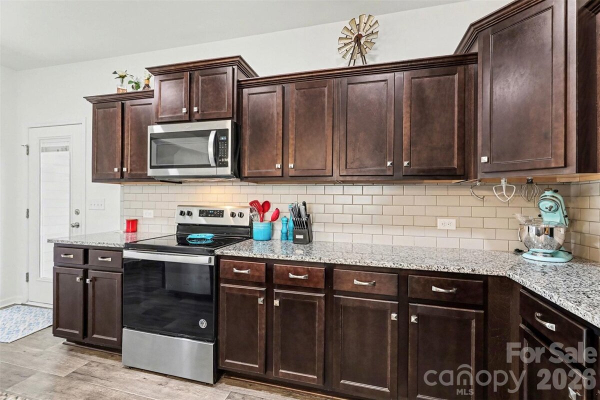 Welcome to this well-maintained 3-bedroom, 2.5-bath single-family home in the Upper Riverpointe community, built in 2020 and offering 2,118 square feet of thoughtfully designed living space. The main level features 9-foot ceilings and durable luxury vinyl plank flooring, creating an open and functional layout ideal for everyday living and entertaining. The kitchen includes granite countertops, subway tile backsplash, upgraded cabinetry, and stainless steel appliances. Upstairs, the spacious primary suite includes a tray ceiling and an upgraded ensuite bath with dual vanities, tile flooring, a garden tub, and upgraded countertops. Two additional bedrooms and a full bath complete the second level. Outdoor living is a standout feature with a screened-in rear porch overlooking a fully fenced backyard with a waterfall feature, providing a private and relaxing space to enjoy year-round. A rare highlight is the extended two-car garage, featuring a second bay addition and a 6-foot bump-out for approximately 490 square feet of garage space. The garage is insulated and includes epoxy flooring, heater, ceiling-mounted storage, workbench space, upgraded doors and hardware, and a 240-volt outlet suitable for EV charging or workshop use. Additional features include a covered front porch, upgraded stone front elevation, upgraded rear exterior door with built-in blinds, and ceiling fans including outdoor fans. Seller is including a one-year buyer home warranty, offering added peace of mind. Conveniently located with easy access to shopping, dining, and major commuter routes, this home offers modern construction, functional upgrades, and move-in-ready condition at an exceptional value.