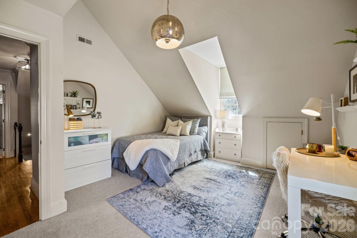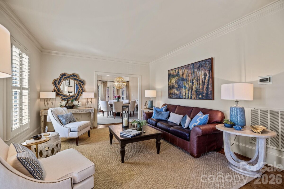Located on one of Myers Park’s most charming streets, this beautifully maintained home offers the perfect blend of classic character and modern livability. Designed for both everyday living and effortless entertaining, the home offers spacious living areas, four bedrooms, including a large primary suite, and three and a half baths. The thoughtful floor plan includes a large bonus room and a walk-up attic with permanent stairs, offering exceptional storage and future expansion potential. The outdoor living area is complete with a beautiful, covered porch with a fireplace, creating a perfect space for relaxing or gathering year-round. The property has a gated driveway, two-car garage, and a flat, fenced backyard, ideal for outdoor activities. A custom-built treehouse complete with electricity adds a special touch that makes this backyard truly unique. Enjoy one of Charlotte’s most sought-after neighborhoods, just minutes from the shops, restaurants, and amenities that make Myers Park such a great place to call home.