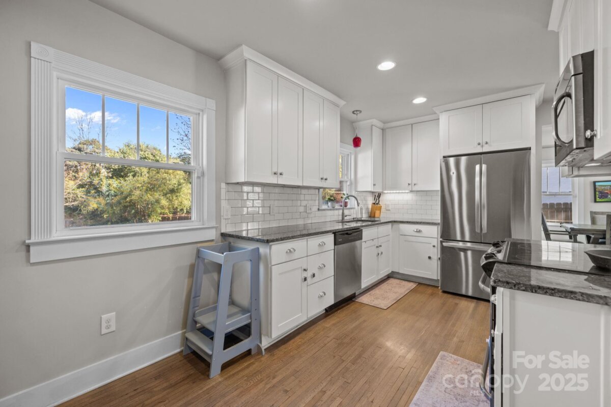 Charming Villa Heights Bungalow on a Large Lot! This adorable 1947 bungalow—fully renovated in 2015—offers the perfect blend of historic character and modern convenience. Featuring 3 bedrooms and 2 full baths, the home sits on a spacious lot with a fenced backyard and a detached 2-car garage. Step inside to an open, airy floorplan with abundant storage, original hardwood floors, and designer tile in both bathrooms. The updated kitchen and living spaces are ideal for both everyday living and entertaining. Located just blocks from restaurants, bars, shopping, the light rail, greenway, and Cordelia Park, this home delivers an exceptional urban lifestyle while preserving a quiet, neighborhood feel. Enjoy the best of Charlotte living—close to the city yet comfortably tucked away. • Fireplace sold as-is • Washer & Dryer will convey • Ring doorbell does not convey • ADT security system can convey