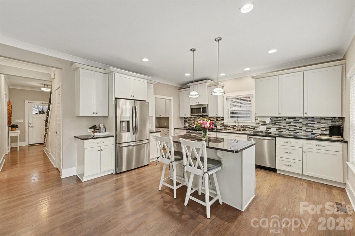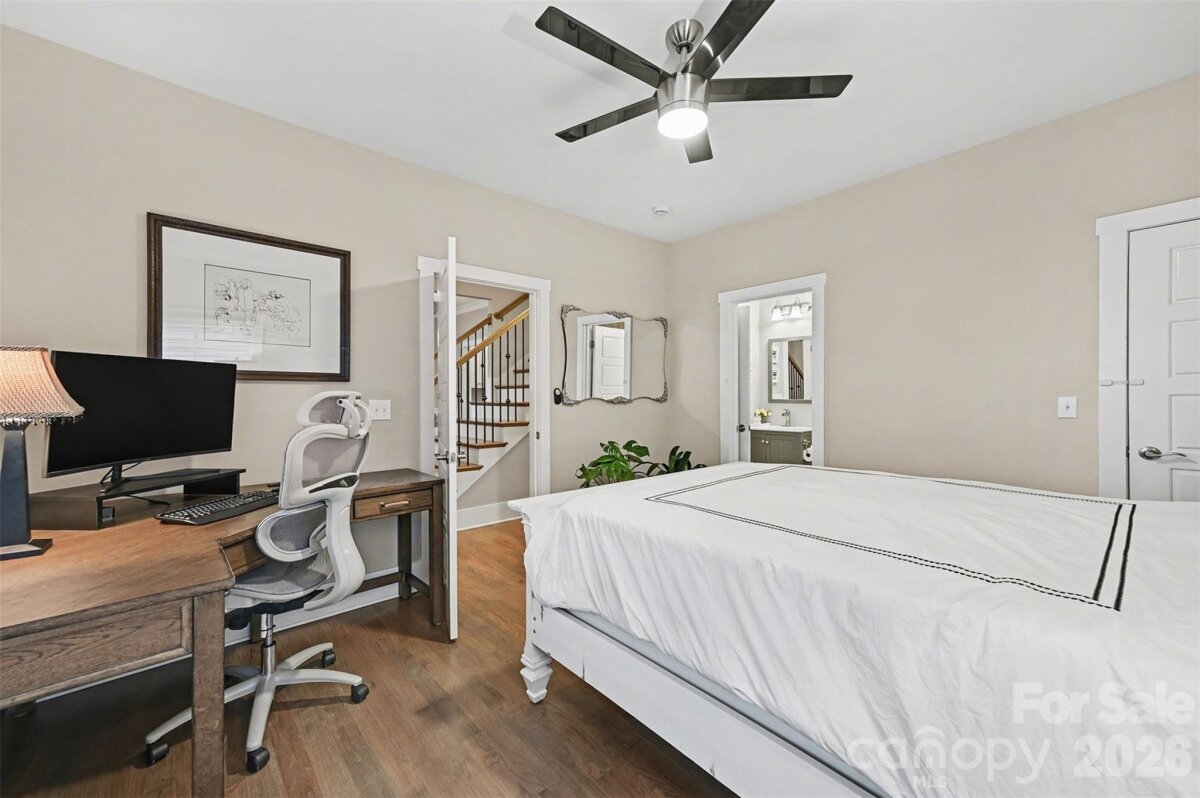 Pristine, "newer" construction (2015) Arts and Crafts two-story in the heart of Belmont. Ideally located between Uptown Charlotte and Plaza-Midwood just two short blocks from the Sugar Creek Greenway, a 7-minute walk to the light rail, and easily walkable to Optimist Hall, Urban District Market, breweries, restaurants, coffee shops, and parks. The home offers fantastic views of the Queen City skyline, best enjoyed from the Southern, covered front porch. Inside, the open-concept kitchen and living area is perfect for entertaining, complimented by a traditional dining room and butler's pantry. A main-level bedroom or flex-space with full bath adds convenience. Upstairs features an oversized primary suite, two additional bedrooms with full bath, and a spacious laundry room. Outdoor living includes an oversized deck and private, fenced backyard. Numerous owner upgrades (see full list in attachments) include an automatic driveway gate and a Tesla EV Charger inside the garage.
