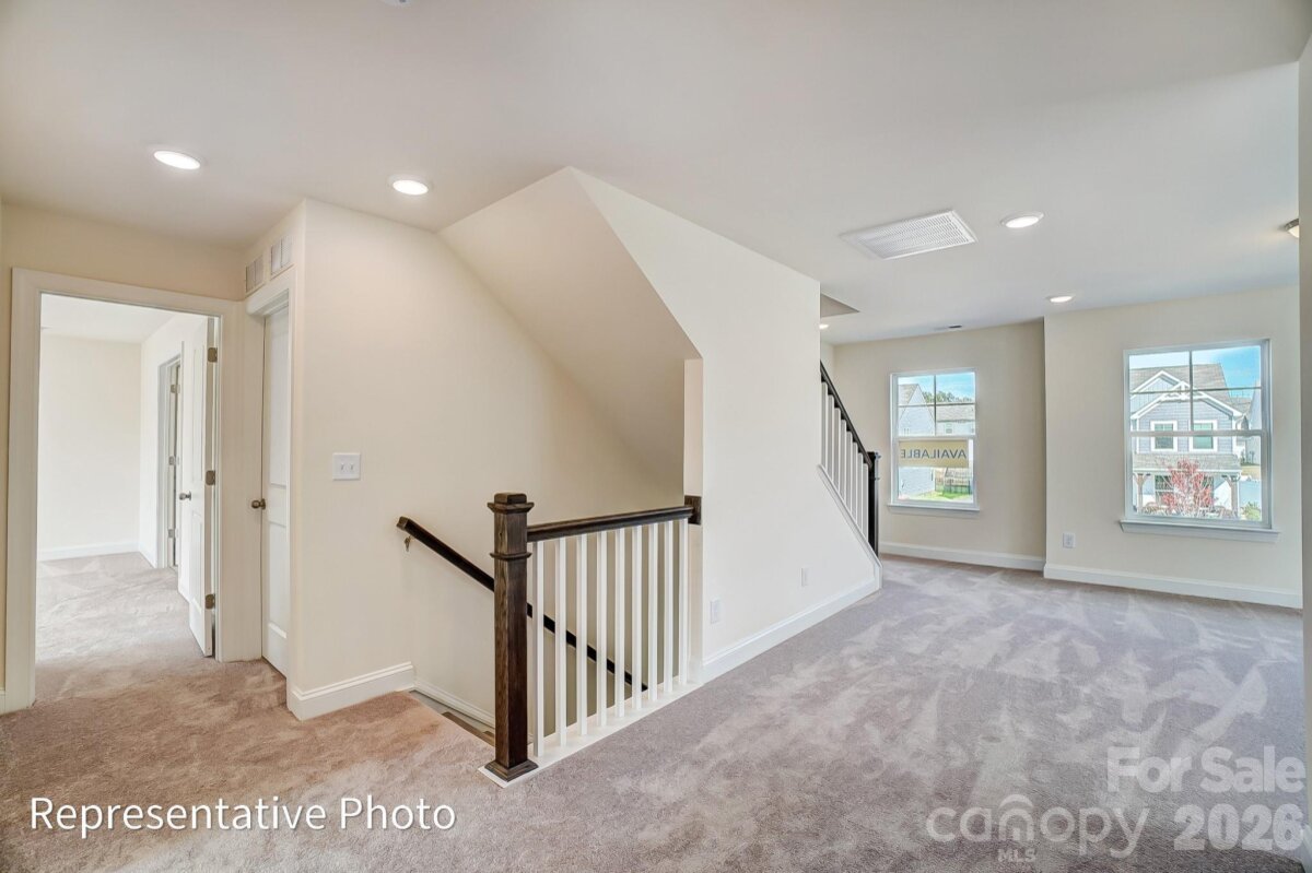 Welcome to new construction near the scenic Catawba River in Rock Hill! This 3-story Cypress plan offers 5 bedrooms, 4 full baths & more than 2,800 square feet of living space. The main level includes an office with French doors. a guest bedroom, guest bath with 4-ft shower with seat, the family room with a direct-vent, gas fireplace, breakfast area that walks out to the covered porch, and the designer kitchen. The kitchen features a large island, white cabinets, quartz countertops, tile backsplash, stainless range hood & stainless appliances, including a gas cooktop and wall oven. The upstairs primary bathroom features a tub with tile surround, a tiled shower with semi-frameless door, double-bowl vanity, and a linen closet. The upper level also has two secondary bedrooms, a full bath with a tub/shower combo, a loft, and convenient laundry room. Living space continues to the third floor with a spacious bedroom and full bath. Visit today and meet your dream home!