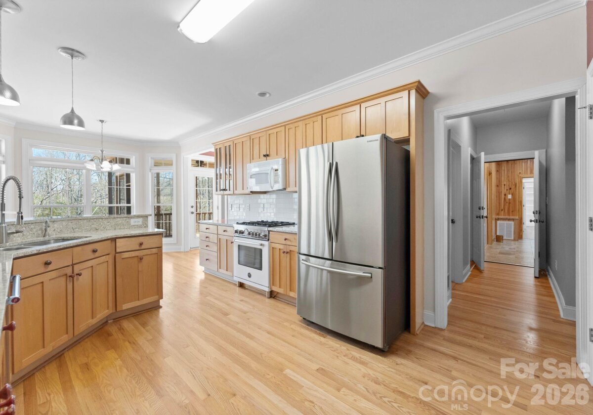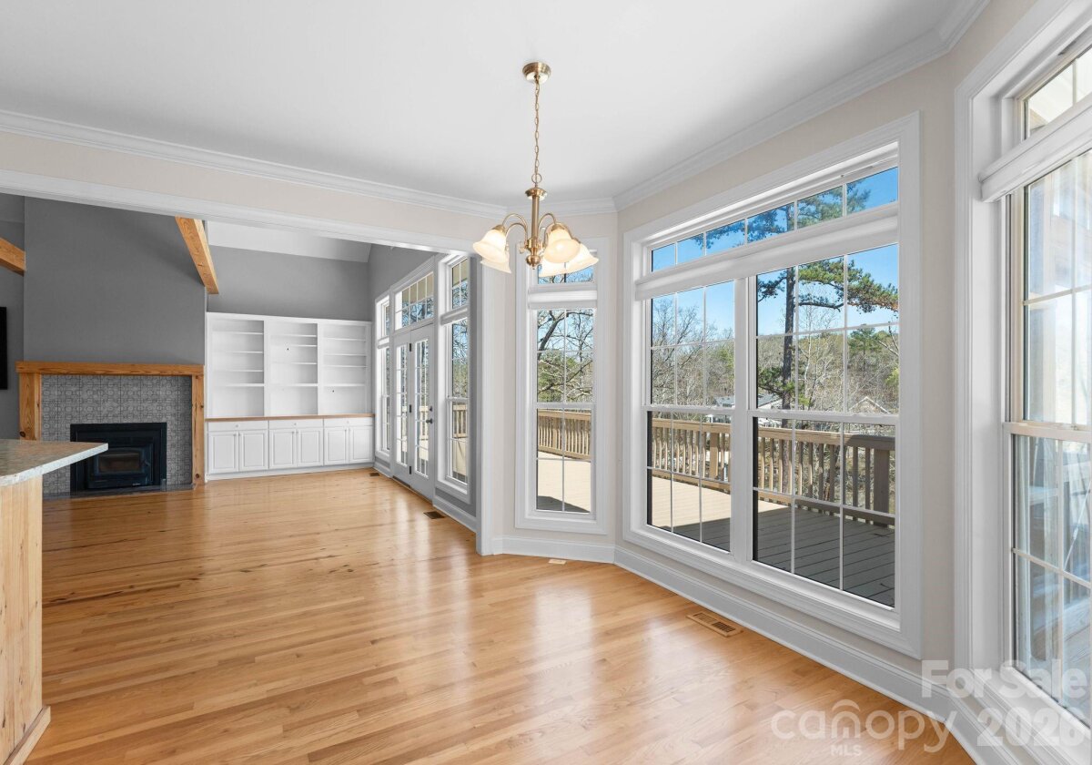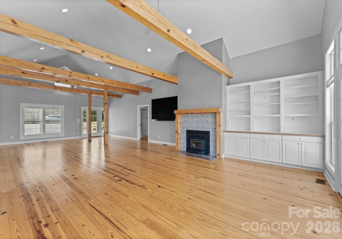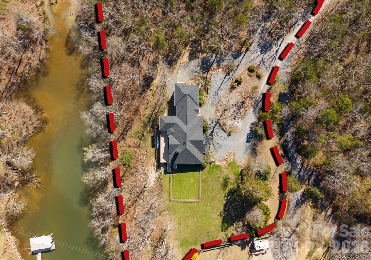 Indulge in the privacy and prestige of lakefront living on 4.4 acres with over 500 feet of shoreline along Lake Wylie. Tucked away in a serene, natural setting, this exceptional property offers a rare combination of expansive acreage, tranquil water views, and refined rustic elegance. Inside, the home is rich in character, featuring 5 bedrooms, 3 full bathrooms, heart pine floors and striking exposed pine beams that create a warm yet sophisticated ambiance. The seller's expanded in 2022 with the addition of two additional bedrooms, a versatile flex space, and a full bath—providing expanded accommodations ideal for guests, work-from-home living, or multi-generational needs. The primary suite is a private retreat, complete with tray ceilings and direct access to an expansive deck that spans the length of the home, seamlessly blending indoor and outdoor living. A screened porch offers a peaceful vantage point to enjoy quiet cove views and the surrounding wildlife. The walk-out lower level presents the perfect space for recreation or relaxation, while a trail leads to your private floating dock—an idyllic setting for lakeside enjoyment.