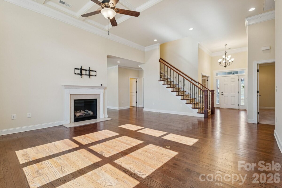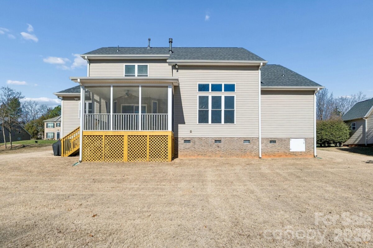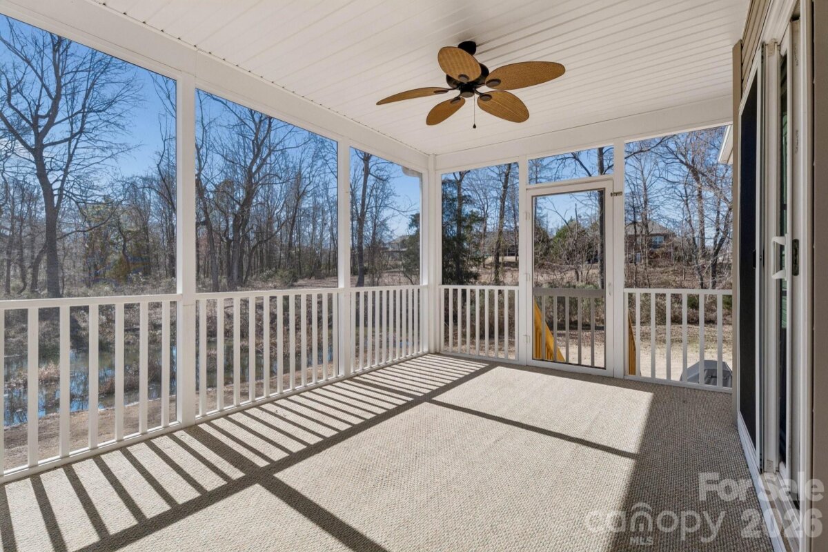 Lakeview semi-custom home by builder Andrew Alosi with lake access to a peaceful, motor-free lake ideal for kayaking and canoeing. Enjoy fish, ducks, turtles, and a private backyard next to HOA common area. Single-owner home with primary suite on main level, 3 bedrooms plus bonus room. Features include 3-inch oak flooring, coffered great room ceiling, wainscoting in office and dining room, granite countertops in kitchen and baths, stainless steel appliances, custom stone fireplace with fossil accents, and screened/covered porch with storage. Spacious primary suite with vaulted ceiling and large bath. New 40-year hail-resistant roof (June 2024). Oversized garage with epoxy floor and keypad entry. South-facing windows include UV film and double-tilt design. Crawlspace with dehumidifier and moisture barrier. Front porch with fan, storm doors with optional screens, extra outlets, and exterior rear spigot. Close Proximity to York Preparatory Academy only 1.4 miles away!