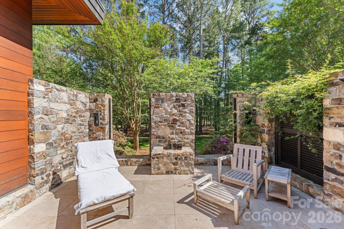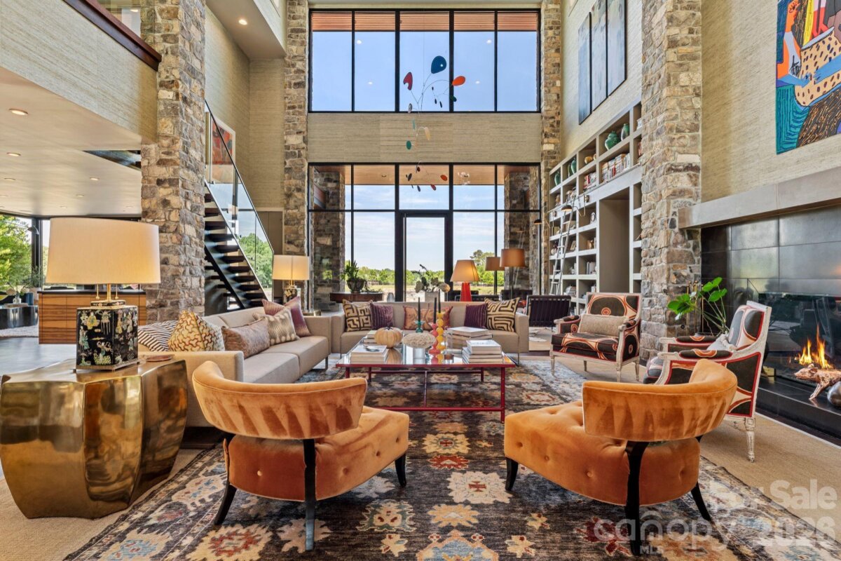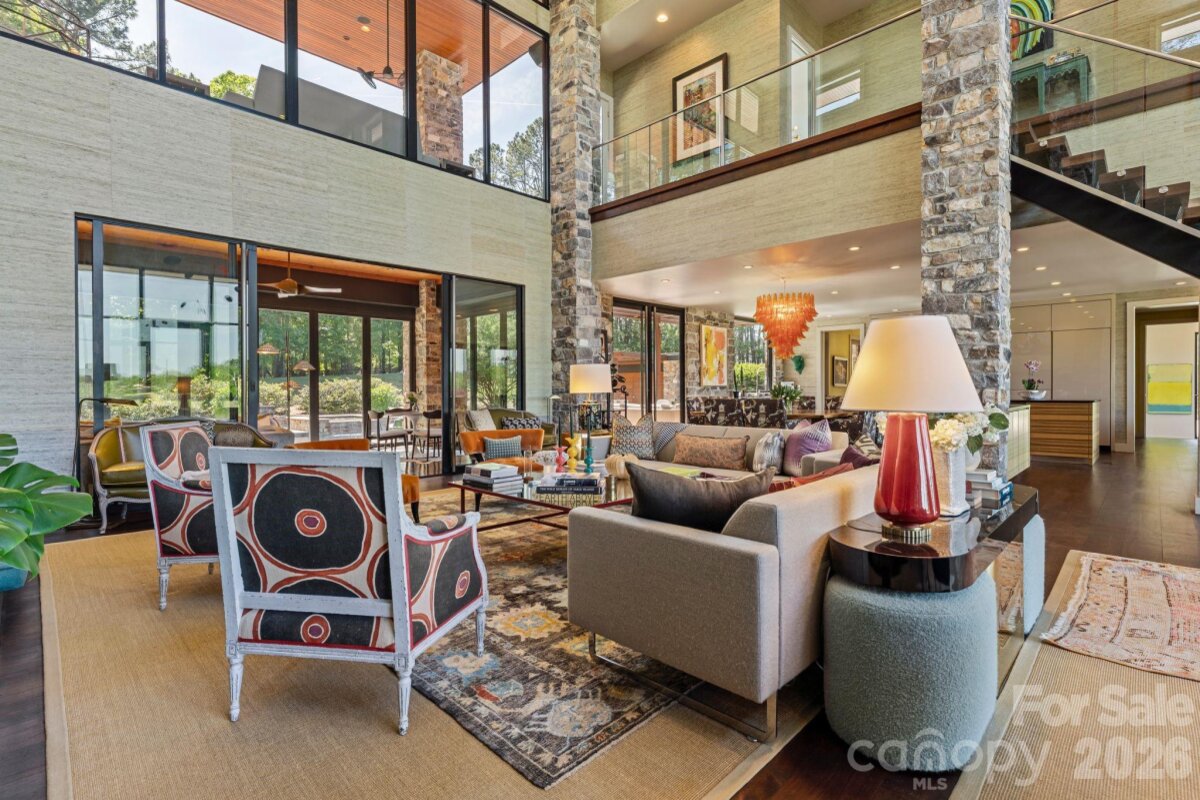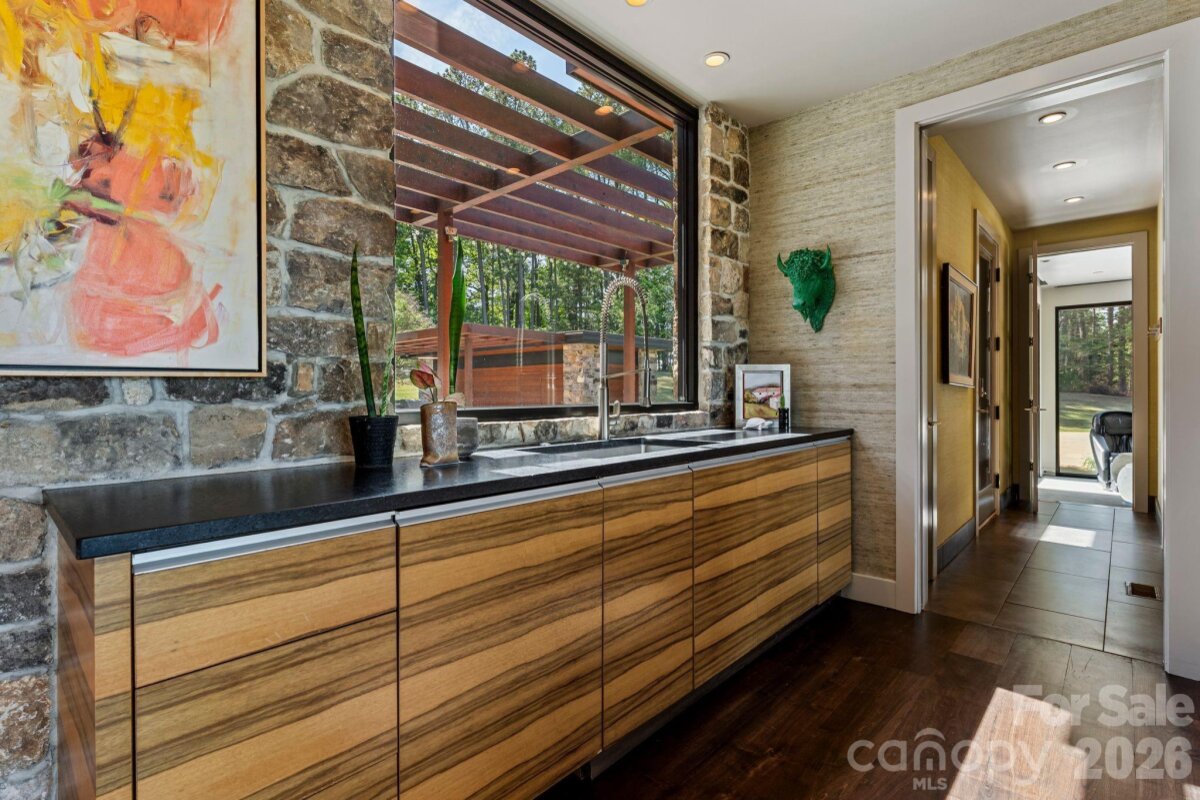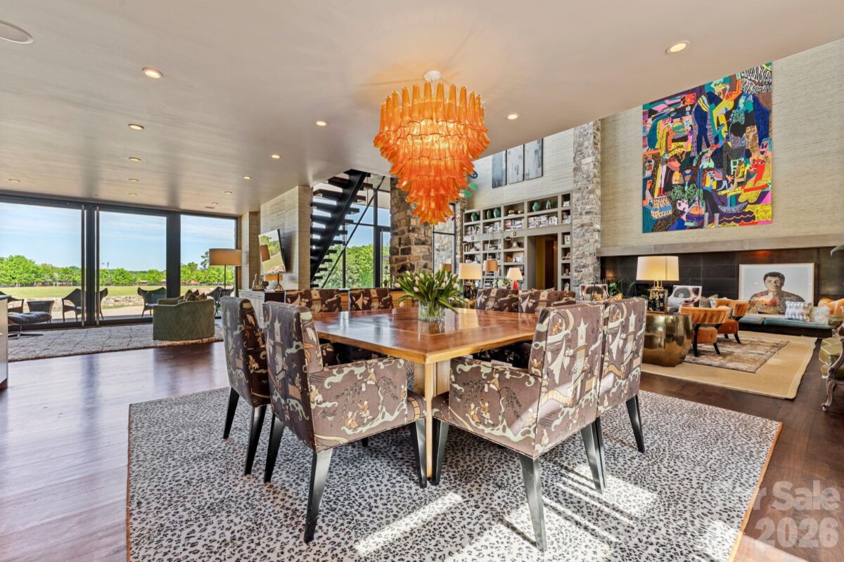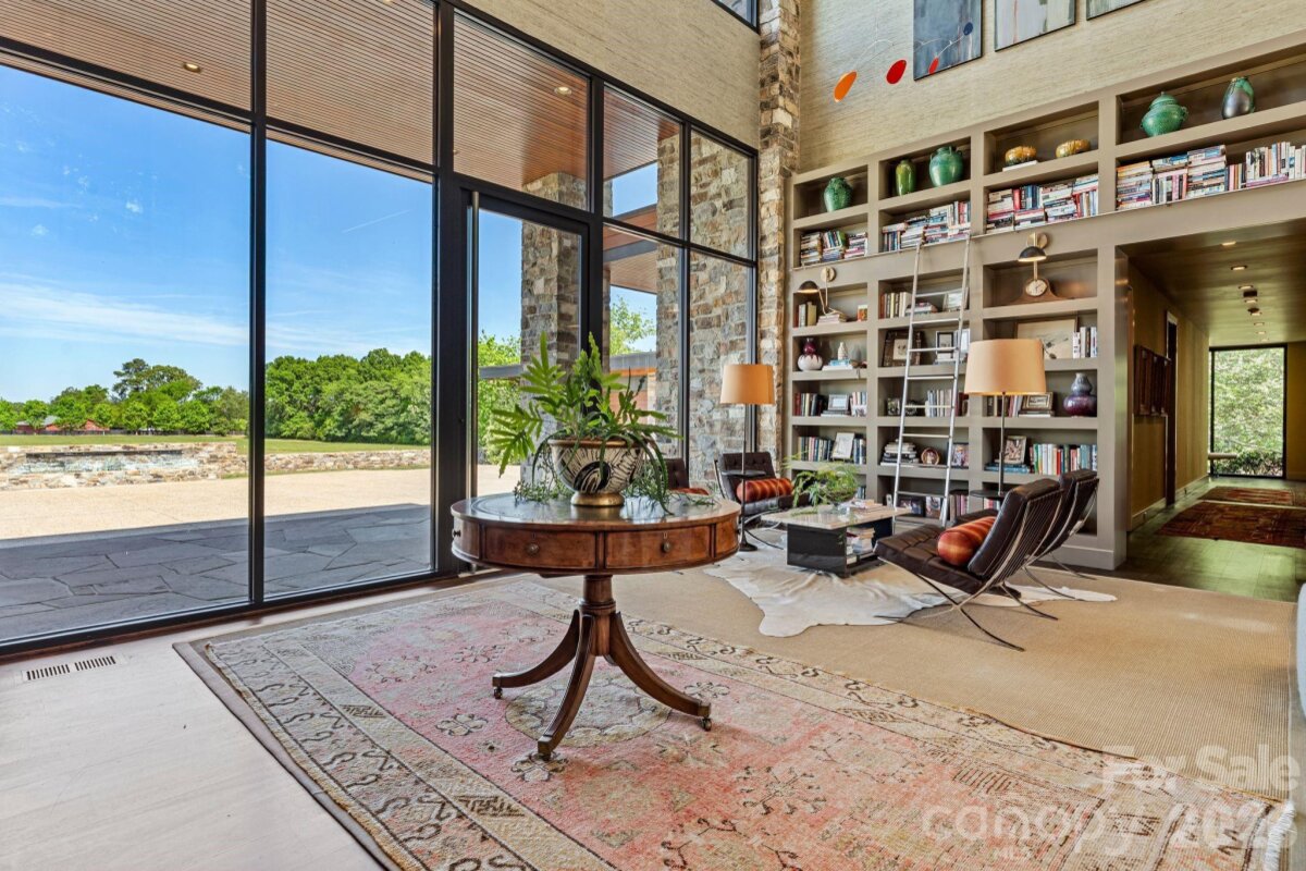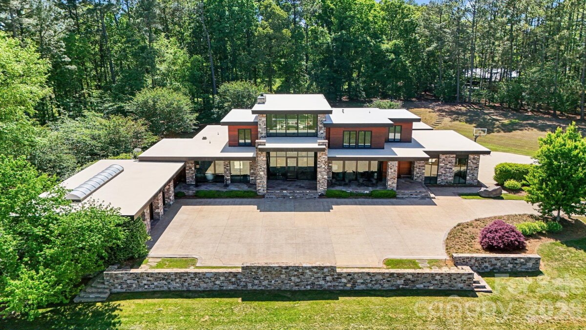 THE RANCH AT FAIRES RD: A Modern Equestrian Estate. Set quietly beyond the pace of Charlotte, this 75+ acre modern ranch estate offers a rare expression of architectural intention and landscape harmony. Conceived by Frank Smith after years of immersive study in contemporary design, and brought to life with interiors by Barrie Benson and craftsmanship by Kingswood Custom Homes, the home is both a personal retreat and a considered work of modern architecture. The approach is deliberate—a sweeping motorcourt, anchored by a sculptural fountain, sets a tone of understated grandeur. Inside, the residence unfolds through volumes of glass and stone, where light becomes a defining material. Floor-to-ceiling storefront windows and pivoting glass doors dissolve the boundary between interior and landscape, opening to a composition of water, sky, and rolling acreage. At the heart of the home, materials are both tactile and restrained—wide-plank black walnut floors, flamed leathered granite, and precision-crafted cabinetry that reveals itself at the touch. A curated Miele kitchen suite balances performance with quiet elegance, designed as much for gathering as for function. The primary suite is conceived as a private pavilion, complete with a steam shower and an intimate outdoor bathing terrace—an experience that invites stillness and connection to the surrounding landscape. Beyond the walls, the estate unfolds as an immersive environment. A heated pool with integrated current system allows for both leisure and training, while a private pond—stocked for bass and brim fishing—reflects the changing light of day. A driving range introduces a refined recreational element, complemented by expansive acreage suited for skeet shooting, four-wheeling, and dirt biking along established trails. Thoughtfully integrated into the landscape, the property offers a dynamic outdoor lifestyle—equally suited for quiet moments in nature and more active pursuits across the land. The equestrian component is equally considered, designed to resonate with discerning equestrians and those drawn to a refined rural lifestyle. A well-appointed barn serves as both a functional working stable and a natural extension of the estate, offering four stalls, a dedicated tack room, and lofted hay storage for efficient daily operation. A covered equipment shed provides seamless access to vehicle storage and groundskeeping implements, supporting the stewardship of the land. The surrounding acreage lends itself naturally to multiple fenced pastures and paddocks, allowing for thoughtful rotation, while rolling terrain and open sightlines create an ideal setting for private riding trails—suited for both leisurely rides and more focused training within the privacy of the estate. Enhancing the experience, the barn also incorporates a gym and a thoughtfully appointed kitchen and outdoor lounge space with fire pit, allowing for an effortless transition between training, care, and relaxation. Integrated technology—via a Savant whole-home system—operates discreetly in the background, orchestrating lighting, climate, and security with precision. A Generac generator, underground propane reserves, and whole-home water filtration reinforce a sense of self-sufficiency. An additional guest house, offered as-is, presents an opportunity for further personalization. Located within convenient reach of Charlotte, yet intentionally removed from its immediacy, this estate offers a compelling duality: accessibility and escape. It is a place defined not only by its design, but by the experience it creates—quiet, expansive, and enduring.