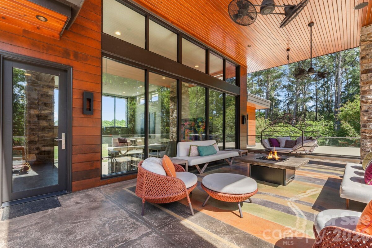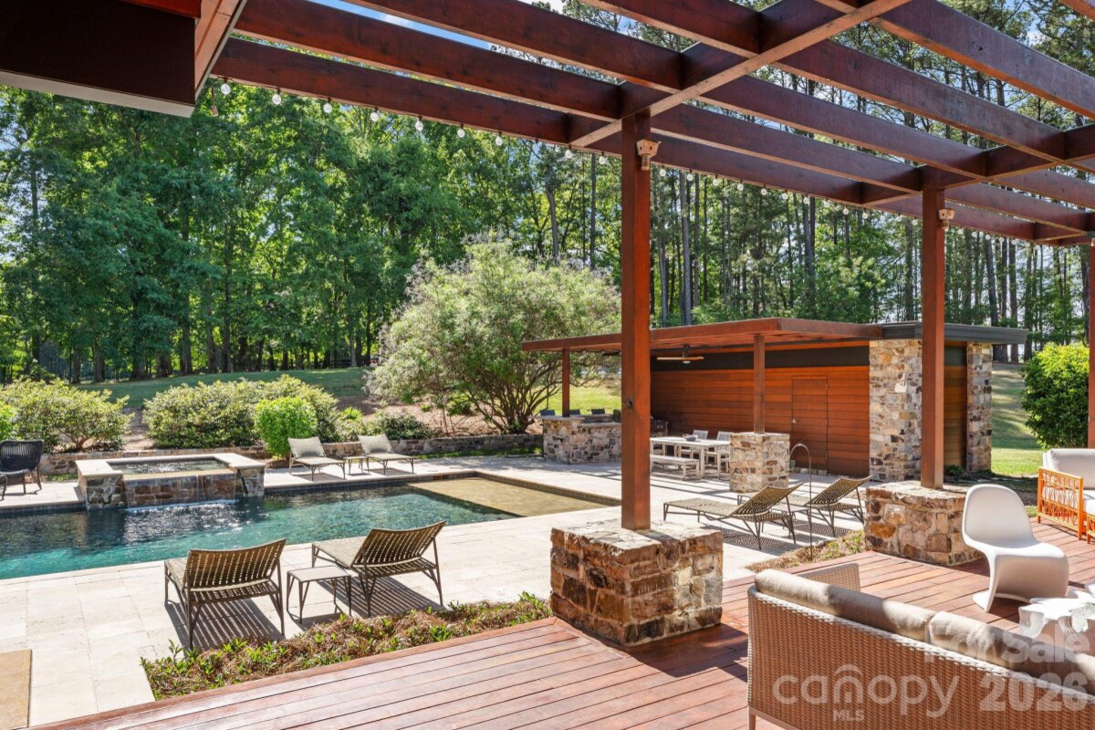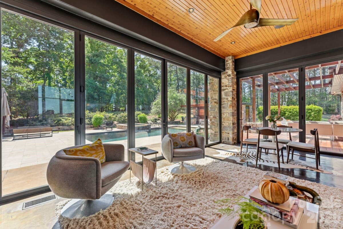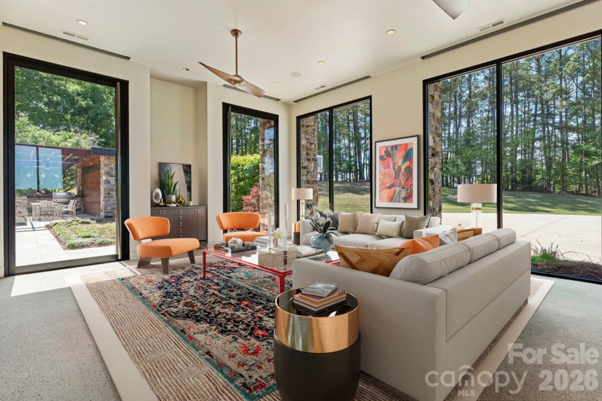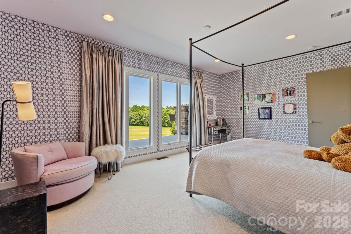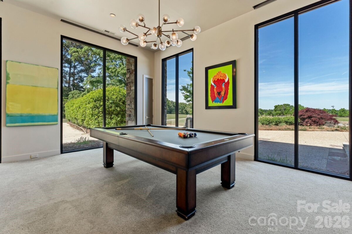 THE RANCH AT FAIRES RD: A Modern Equestrian Estate. Set quietly beyond the pace of Charlotte, this 75+ acre modern ranch estate offers a rare expression of architectural intention and landscape harmony. Conceived by Frank Smith after years of immersive study in contemporary design, and brought to life with interiors by Barrie Benson and craftsmanship by Kingswood Custom Homes, the home is both a personal retreat and a considered work of modern architecture. The approach is deliberate—a sweeping motorcourt, anchored by a sculptural fountain, sets a tone of understated grandeur. Inside, the residence unfolds through volumes of glass and stone, where light becomes a defining material. Floor-to-ceiling storefront windows and pivoting glass doors dissolve the boundary between interior and landscape, opening to a composition of water, sky, and rolling acreage. At the heart of the home, materials are both tactile and restrained—wide-plank black walnut floors, flamed leathered granite, and precision-crafted cabinetry that reveals itself at the touch. A curated Miele kitchen suite balances performance with quiet elegance, designed as much for gathering as for function. The primary suite is conceived as a private pavilion, complete with a steam shower and an intimate outdoor bathing terrace—an experience that invites stillness and connection to the surrounding landscape. Beyond the walls, the estate unfolds as an immersive environment. A heated pool with integrated current system allows for both leisure and training, while a private pond—stocked for bass and brim fishing—reflects the changing light of day. A driving range introduces a refined recreational element, complemented by expansive acreage suited for skeet shooting, four-wheeling, and dirt biking along established trails. Thoughtfully integrated into the landscape, the property offers a dynamic outdoor lifestyle—equally suited for quiet moments in nature and more active pursuits across the land. The equestrian component is equally considered, designed to resonate with discerning equestrians and those drawn to a refined rural lifestyle. A well-appointed barn serves as both a functional working stable and a natural extension of the estate, offering four stalls, a dedicated tack room, and lofted hay storage for efficient daily operation. A covered equipment shed provides seamless access to vehicle storage and groundskeeping implements, supporting the stewardship of the land. The surrounding acreage lends itself naturally to multiple fenced pastures and paddocks, allowing for thoughtful rotation, while rolling terrain and open sightlines create an ideal setting for private riding trails—suited for both leisurely rides and more focused training within the privacy of the estate. Enhancing the experience, the barn also incorporates a gym and a thoughtfully appointed kitchen and outdoor lounge space with fire pit, allowing for an effortless transition between training, care, and relaxation. Integrated technology—via a Savant whole-home system—operates discreetly in the background, orchestrating lighting, climate, and security with precision. A Generac generator, underground propane reserves, and whole-home water filtration reinforce a sense of self-sufficiency. An additional guest house, offered as-is, presents an opportunity for further personalization. Located within convenient reach of Charlotte, yet intentionally removed from its immediacy, this estate offers a compelling duality: accessibility and escape. It is a place defined not only by its design, but by the experience it creates—quiet, expansive, and enduring.