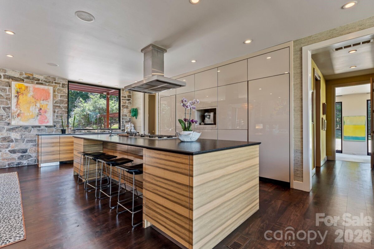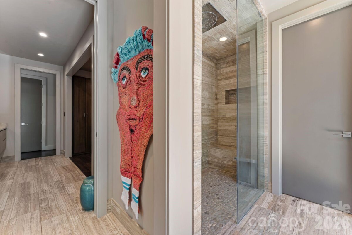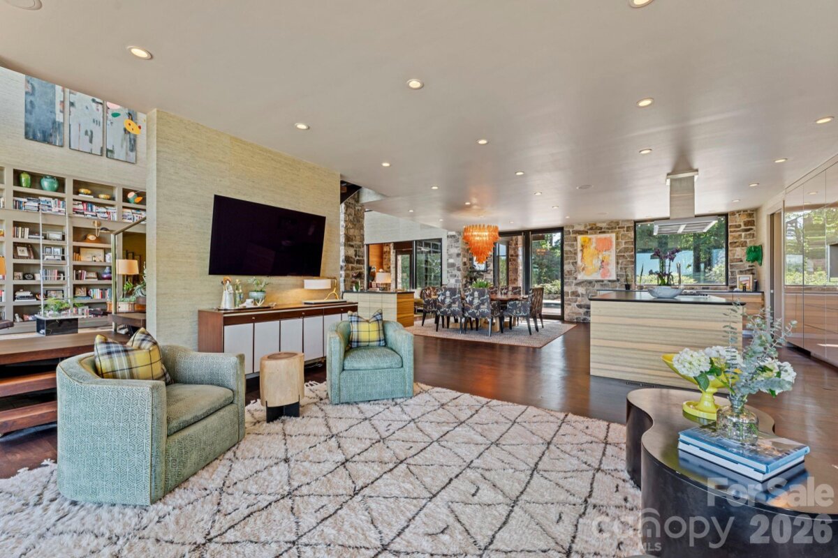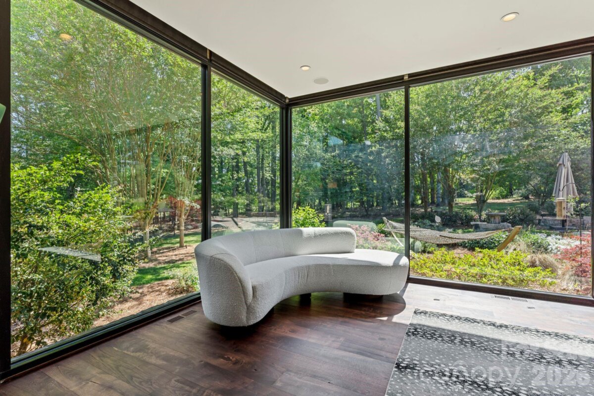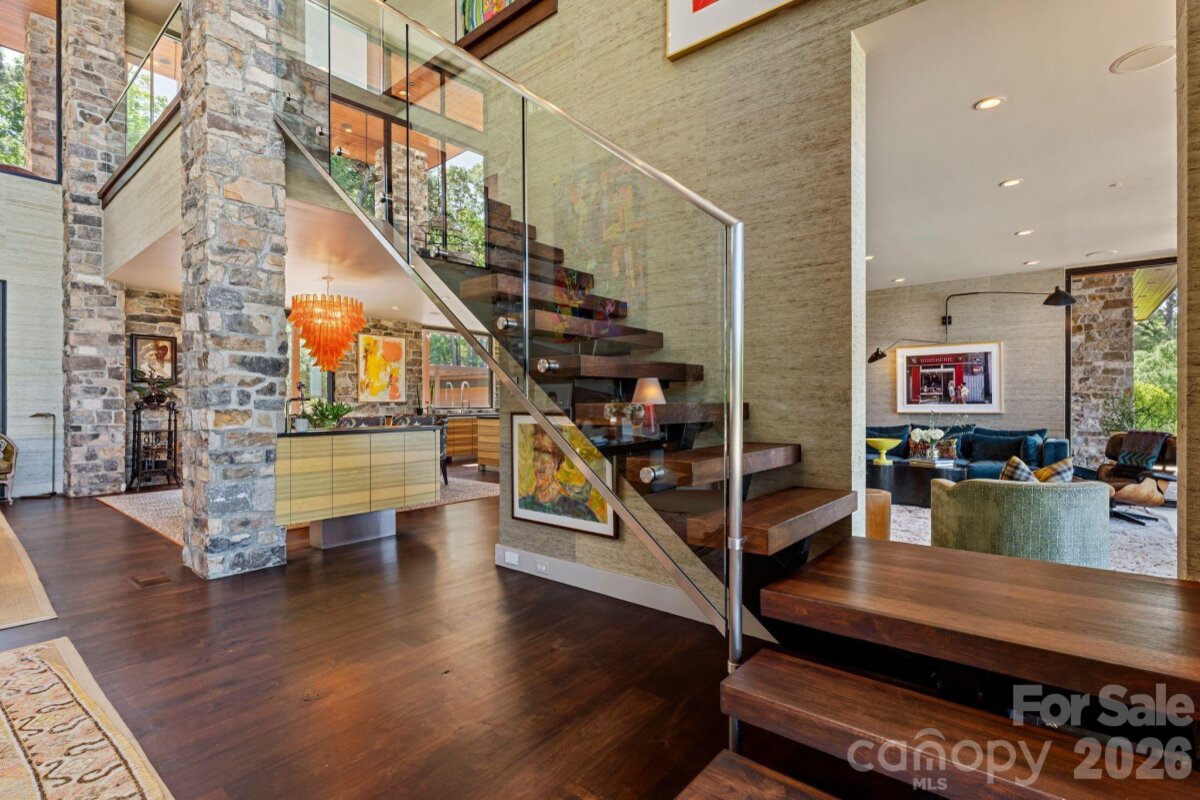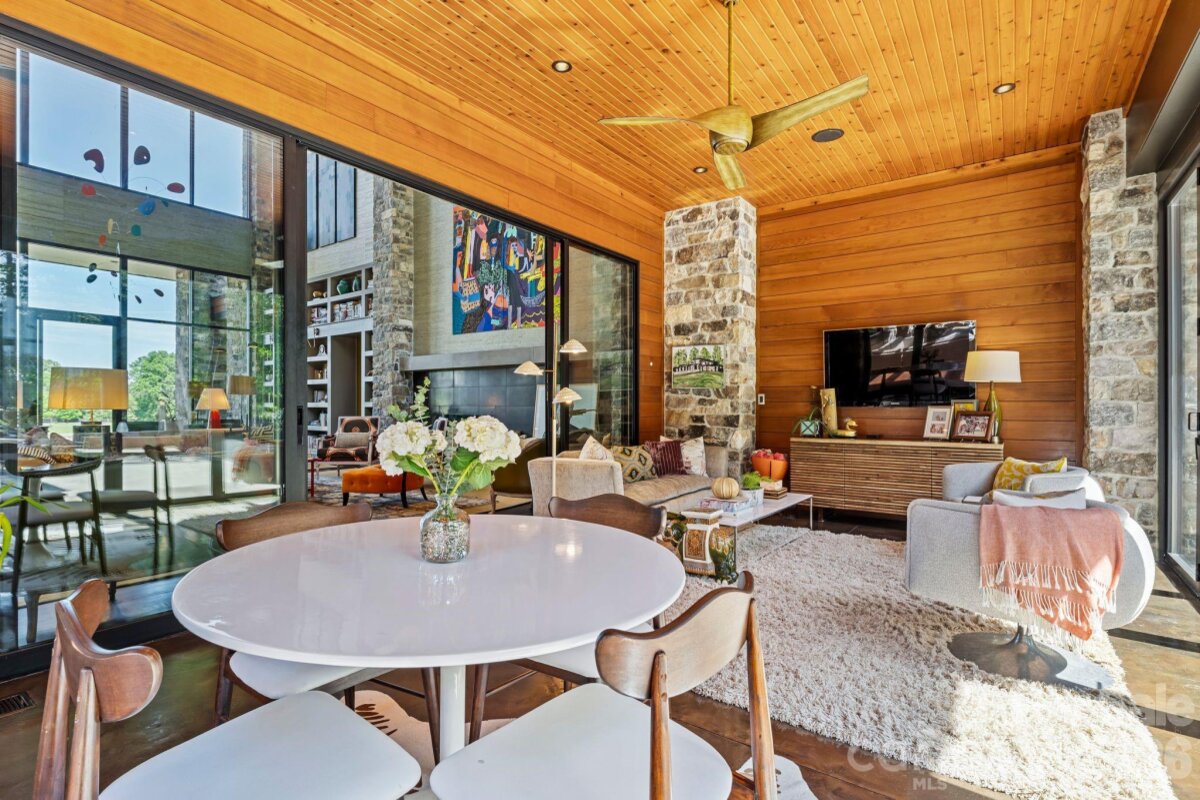 THE RANCH AT FAIRES RD: A Modern Equestrian Estate. Set quietly beyond the pace of Charlotte, this 75+ acre modern ranch estate offers a rare expression of architectural intention and landscape harmony. Conceived by Frank Smith after years of immersive study in contemporary design, and brought to life with interiors by Barrie Benson and craftsmanship by Kingswood Custom Homes, the home is both a personal retreat and a considered work of modern architecture. The approach is deliberate—a sweeping motorcourt, anchored by a sculptural fountain, sets a tone of understated grandeur. Inside, the residence unfolds through volumes of glass and stone, where light becomes a defining material. Floor-to-ceiling storefront windows and pivoting glass doors dissolve the boundary between interior and landscape, opening to a composition of water, sky, and rolling acreage. At the heart of the home, materials are both tactile and restrained—wide-plank black walnut floors, flamed leathered granite, and precision-crafted cabinetry that reveals itself at the touch. A curated Miele kitchen suite balances performance with quiet elegance, designed as much for gathering as for function. The primary suite is conceived as a private pavilion, complete with a steam shower and an intimate outdoor bathing terrace—an experience that invites stillness and connection to the surrounding landscape. Beyond the walls, the estate unfolds as an immersive environment. A heated pool with integrated current system allows for both leisure and training, while a private pond—stocked for bass and brim fishing—reflects the changing light of day. A driving range introduces a refined recreational element, complemented by expansive acreage suited for skeet shooting, four-wheeling, and dirt biking along established trails. Thoughtfully integrated into the landscape, the property offers a dynamic outdoor lifestyle—equally suited for quiet moments in nature and more active pursuits across the land. The equestrian component is equally considered, designed to resonate with discerning equestrians and those drawn to a refined rural lifestyle. A well-appointed barn serves as both a functional working stable and a natural extension of the estate, offering four stalls, a dedicated tack room, and lofted hay storage for efficient daily operation. A covered equipment shed provides seamless access to vehicle storage and groundskeeping implements, supporting the stewardship of the land. The surrounding acreage lends itself naturally to multiple fenced pastures and paddocks, allowing for thoughtful rotation, while rolling terrain and open sightlines create an ideal setting for private riding trails—suited for both leisurely rides and more focused training within the privacy of the estate. Enhancing the experience, the barn also incorporates a gym and a thoughtfully appointed kitchen and outdoor lounge space with fire pit, allowing for an effortless transition between training, care, and relaxation. Integrated technology—via a Savant whole-home system—operates discreetly in the background, orchestrating lighting, climate, and security with precision. A Generac generator, underground propane reserves, and whole-home water filtration reinforce a sense of self-sufficiency. An additional guest house, offered as-is, presents an opportunity for further personalization. Located within convenient reach of Charlotte, yet intentionally removed from its immediacy, this estate offers a compelling duality: accessibility and escape. It is a place defined not only by its design, but by the experience it creates—quiet, expansive, and enduring.