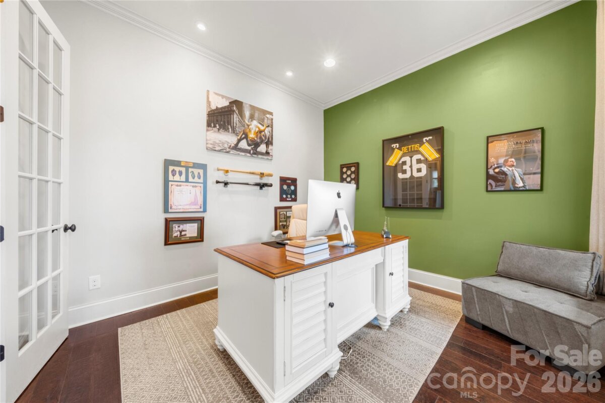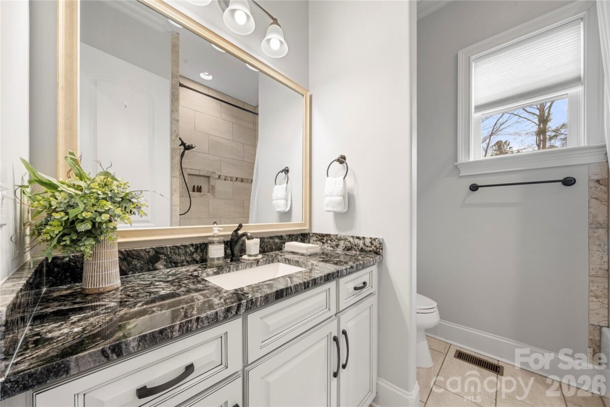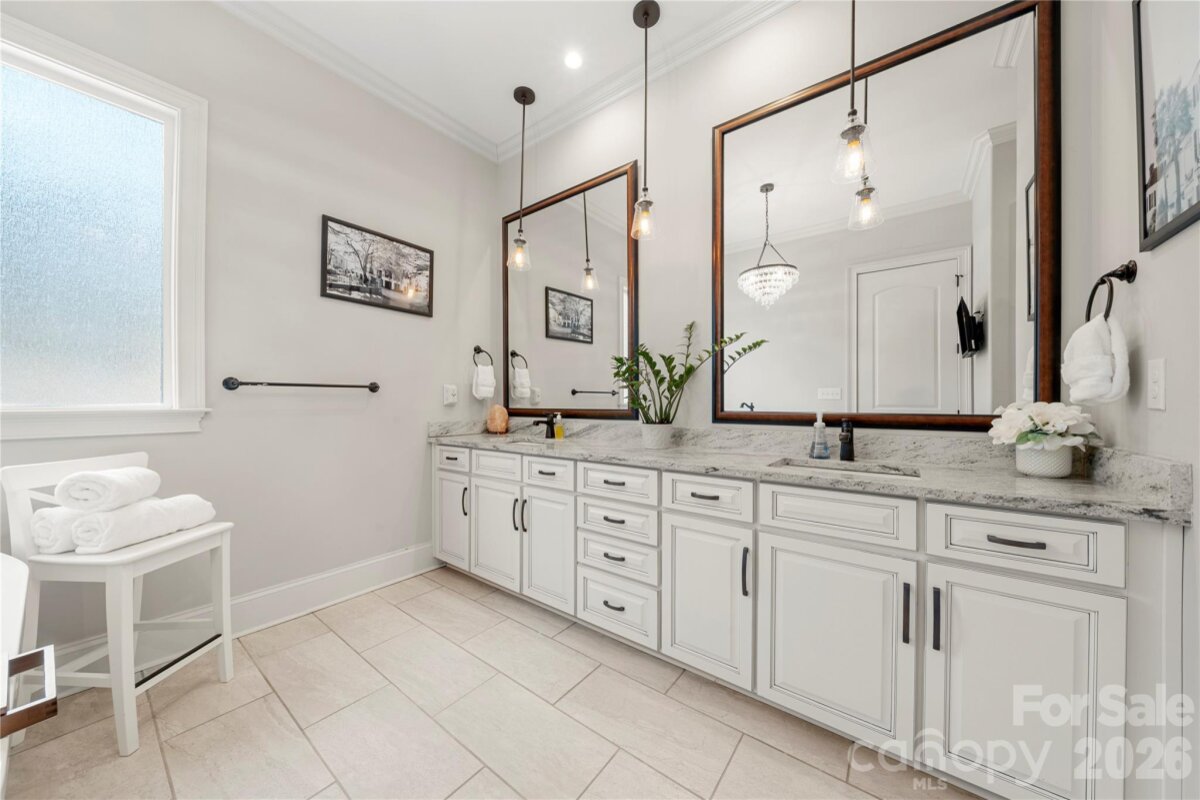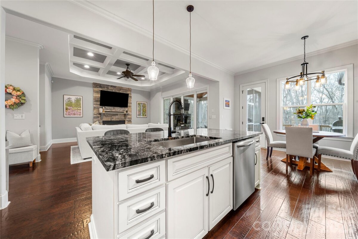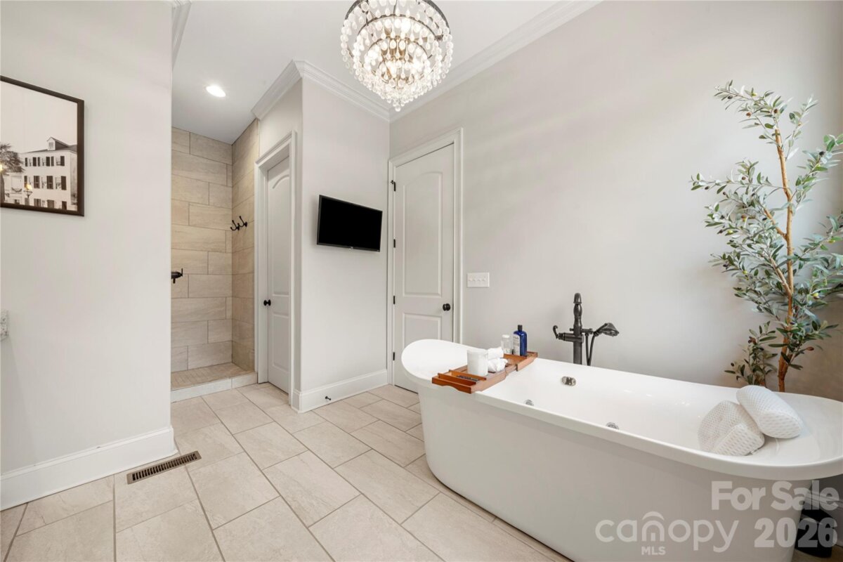 Beautifully crafted country-style home with manicured landscaping and a deep rocking-chair front porch that welcomes you in. This custom-built residence is filled with thoughtful details, including coffered ceilings in the great room and a stunning stone fireplace that anchors the space. The gourmet kitchen features glass-front custom cabinetry with interior lighting, a granite-topped island, classic subway-tile backsplash, and a gas cooktop perfect for everyday cooking or entertaining. The main-level primary suite offers a true spa-like retreat with a frameless walk-in shower cave and multiple shower heads. Also on the main floor is an office and two additional bedrooms connected by a Jack-and-Jill bath, providing flexibility for family or guests. Upstairs, you’ll find a bonus room and an additional bedroom ideal for guests, hobbies, or a media space. Step outside to an entertainer’s paradise with incredible outdoor living areas, including a two-tier deck and a screened porch with all-season doors that open directly to the great room, creating seamless indoor-outdoor flow for gatherings and backyard barbecues. This exceptional home blends custom design, comfort, and timeless charm in a setting made for relaxing and entertaining.