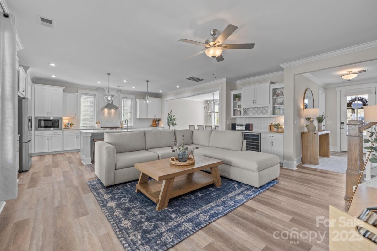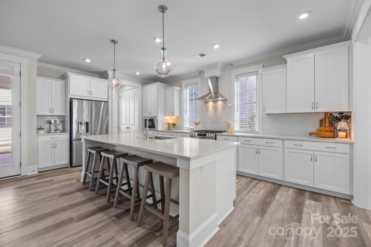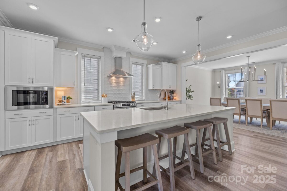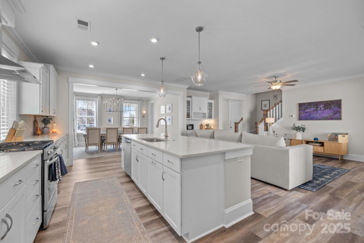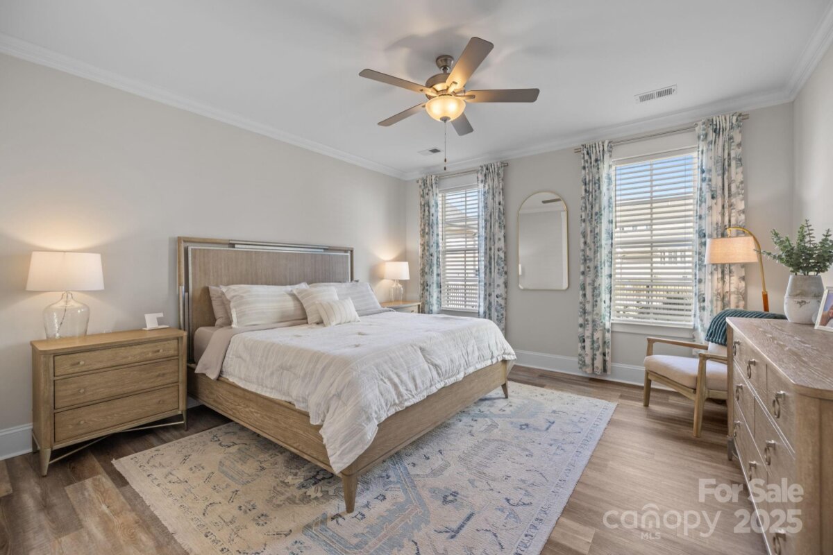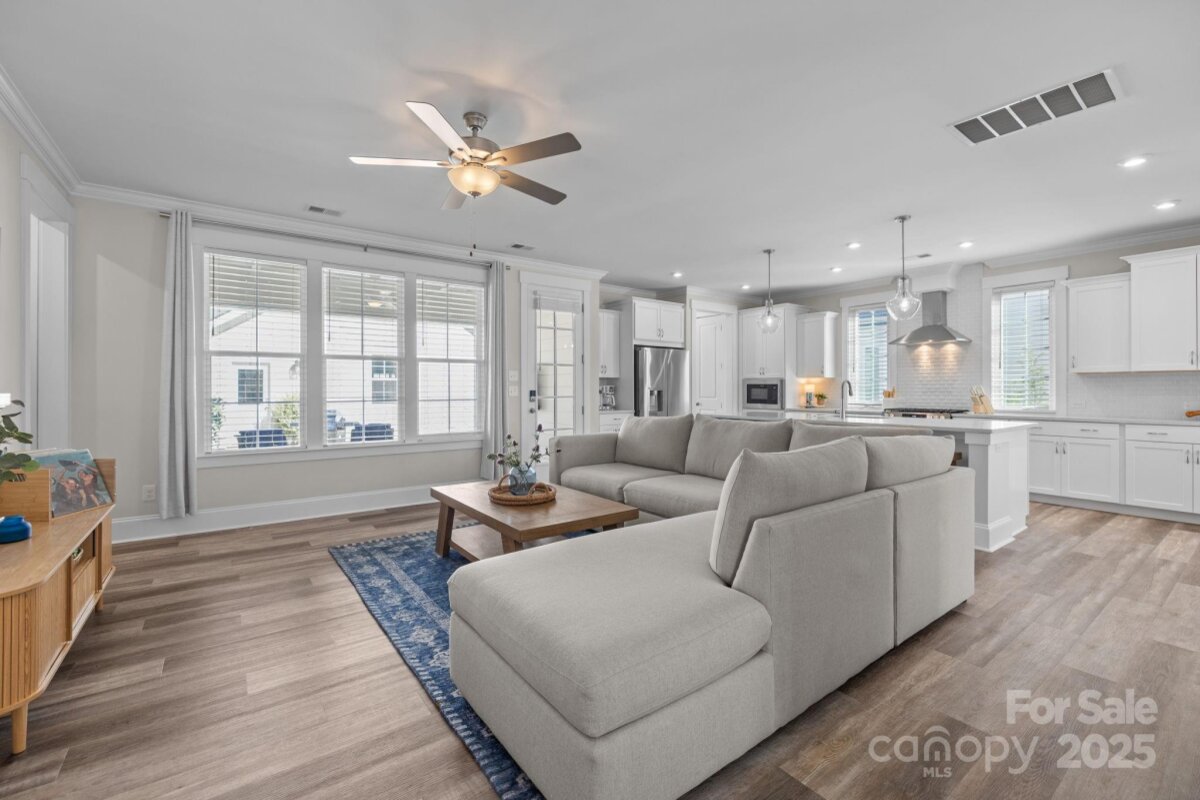 Picture perfect home in the desirable Riverwalk neighborhood. 4 BR/ 3.5BA with office/flex space and loft area. Open floor plan and neutral colors throughout make this home ready for you. Two bedrooms are ideal primary suites, one downstairs and one upstairs- great for guests or multi- generational living. Since everyone gathers in the kitchen this open chef's plan with extra large island is perfect . Elegant dining room for those special occasions Enjoy every Carolina season on the three covered porches, perfect for relaxing or entertaining. Mature landscaping and fencing provides privacy and curb appeal. Experience the active lifestyle of Riverwalk with sidewalks, walking/ bike trails, river launch , swimming pool , clubhouse ,greenspaces, shops, restaurants and community fire pits. Convenient to Charlotte commute, major roads, dining and shopping.