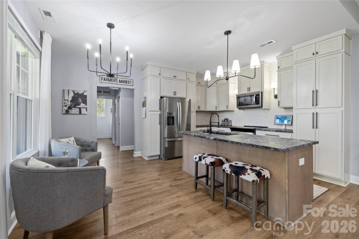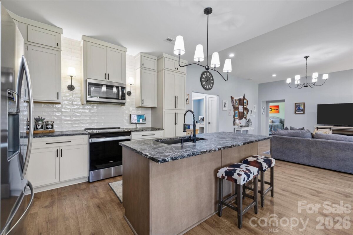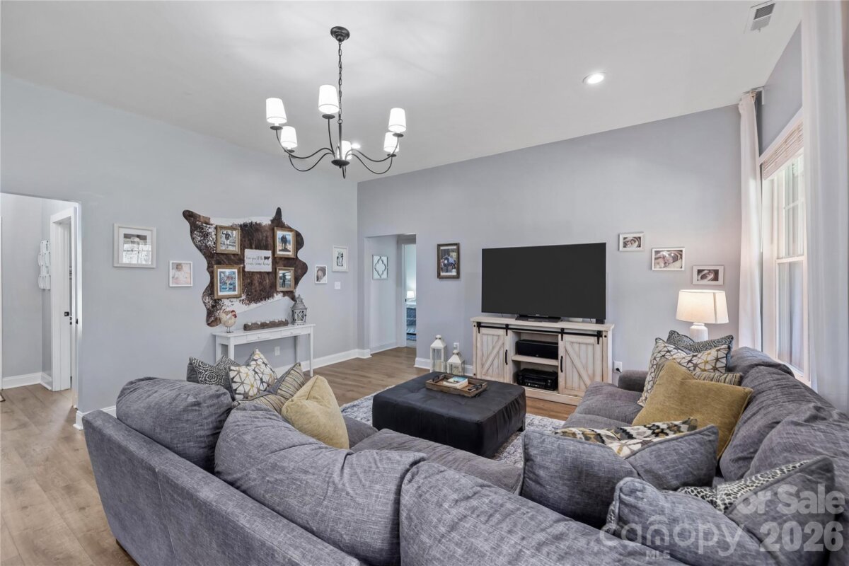 Experience refined, single-level living in this exceptional custom-built estate set on 1.25 acres of private, usable land. Thoughtfully designed with both everyday comfort and elevated style in mind, this one-of-a-kind residence offers a rare combination of quality craftsmanship, functional layout, and timeless finishes. The bright open-concept design is enhanced by soaring 10-foot ceilings in the main living area and 9-foot ceilings throughout, creating a light-filled, airy atmosphere. High-end waterproof LVP flooring flows seamlessly through the main living spaces and select bedrooms, delivering both durability and sophistication. At the heart of the home, the chef’s kitchen showcases custom floor-to-ceiling cabinetry, striking leathered granite countertops, island with farm house sink and thoughtfully designed built-in pantry surrounding the refrigerator - offering both beauty and exceptional storage. The flexible floor plan includes 4 spacious bedrooms, two and a half baths, and a versatile flex space with tray ceiling ideal as a formal dining room, private office, or playroom. Custom closet systems throughout add a level of organization rarely found at this price point. The primary suite serves as a true retreat, featuring a tray ceiling, private access to the expansive rear deck, and a spa-inspired bath complete with a freestanding soaking tub and oversized walk-in shower. Step outside to a deck spanning nearly the full length of the home - perfect for entertaining or enjoying quiet evenings overlooking the large, flat, fenced backyard. The outdoor space offers exceptional versatility, featuring a dedicated chicken coop and animal corral—ideal for hobby farming or those seeking a more self-sufficient lifestyle—along with ample room for a future pool or expanded outdoor living. Additional highlights include an existing playset that will convey with the home, while the trampoline does not convey. Ideally located just minutes from downtown Rock Hill, this property offers the benefit of low county taxes while maintaining convenient access to dining, shopping, and everyday amenities. Priced Right for Quick Sale. Do Not Wait On This One – Bring Your Offer Today!
